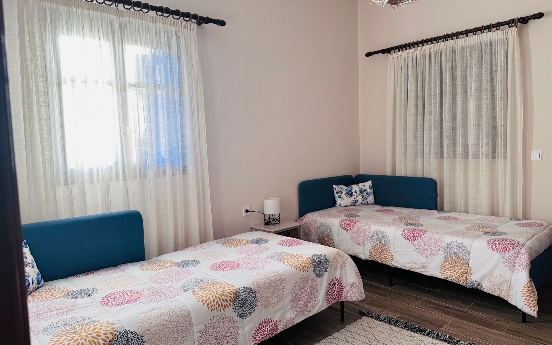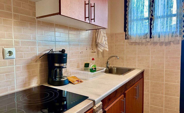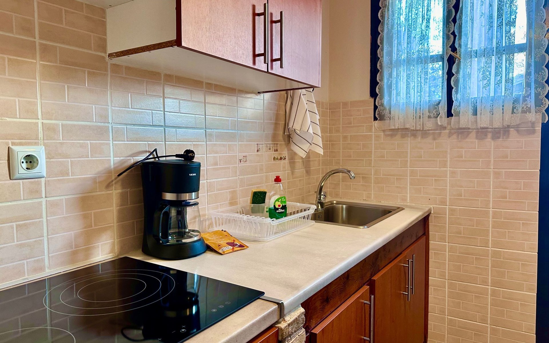 Im Inneren finden Sie einen sorgfältig gestalteten 40 m² großen Raum, der bequem Platz für bis zu 4 Erwachsene oder 2 Erwachsene und 2 Kinder bietet. Das Apartment mit zwei Schlafzimmern hat Meerblick und verfügt über ein großes Doppelbett und zwei Einzelbetten in einem separaten Schlafzimmer mit Doppelbett und einem Wohnzimmer, das auch als zweites Schlafzimmer dient. Die einfache Küche ist komplett ausgestattet und bietet Platz für bis zu fünf Personen, ergänzt durch ein Badezimmer mit Dusche. Der Charme des Hauses wird durch die Bequemlichkeit und den Komfort ergänzt, so dass sich Ihr Aufenthalt so gemütlich wie möglich anfühlt.