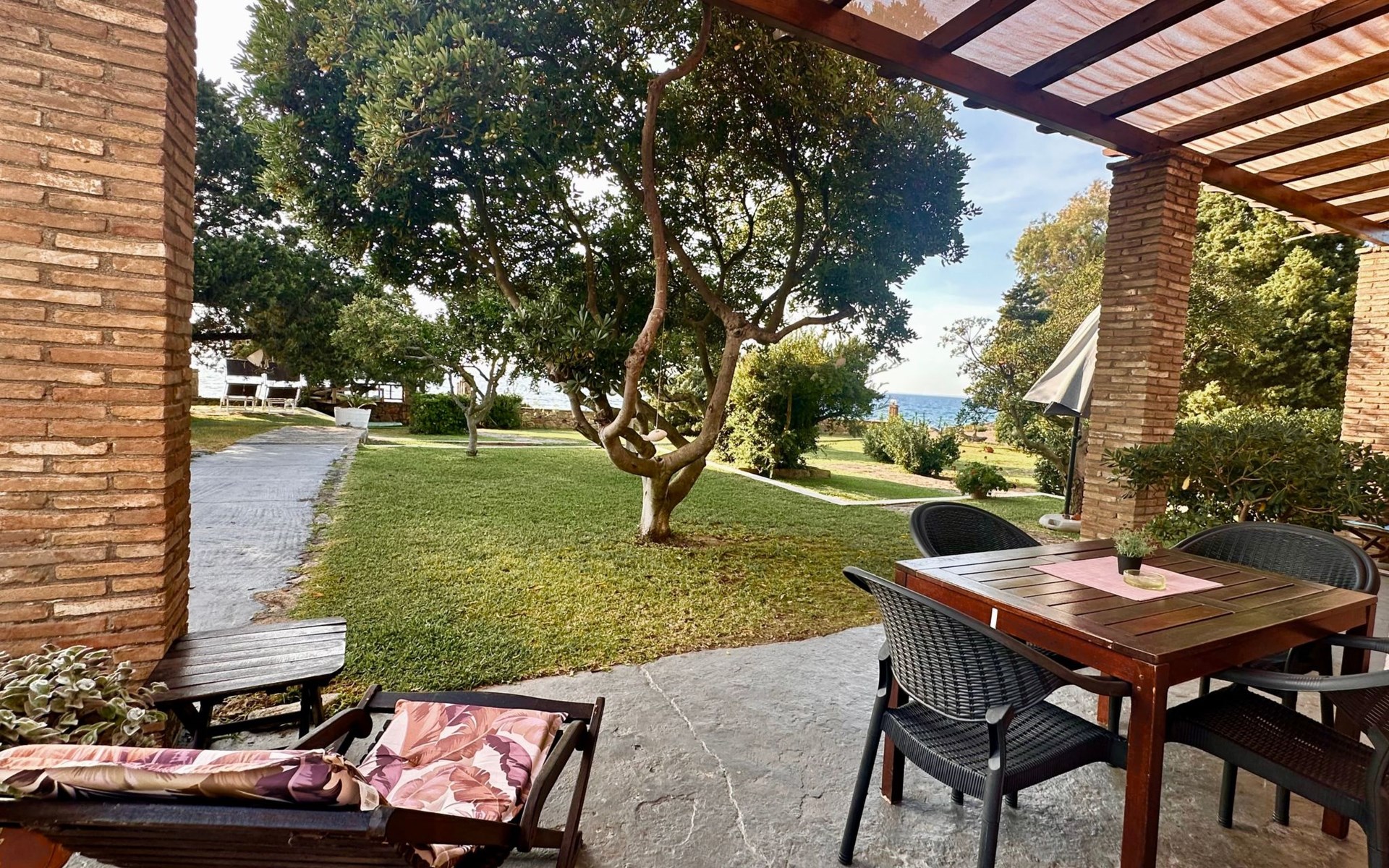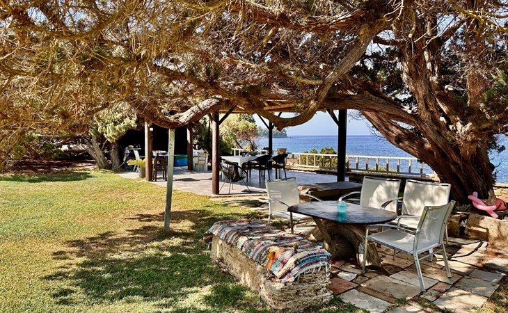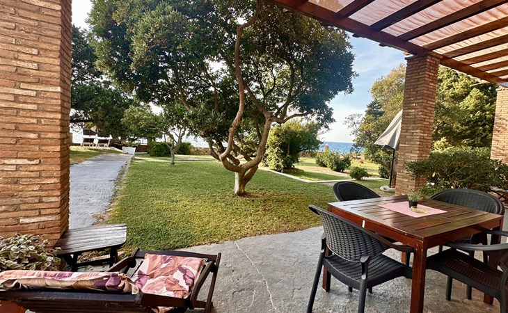 Im Freien bietet die Veranda mit ihren Pergolen einen atemberaubenden Blick auf das Ionische Meer und lädt die Gäste ein, sich zu entspannen und sich an der Schönheit der Umgebung zu erfreuen. Der gepflegte Garten ist ein friedlicher Rückzugsort zum Lesen, Meditieren oder einfach nur, um die Ruhe der Natur zu genießen. Mit direktem Zugang zum Meer über einen privaten Ausgang und den glatten Felsen, die zum Sonnenbaden einladen, ist jeder Moment im Freien eine Bereicherung für Ihr Urlaubserlebnis.