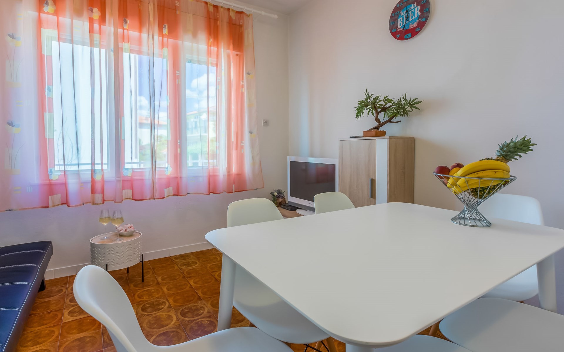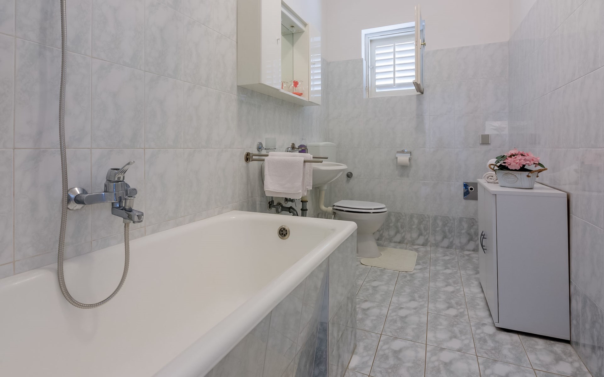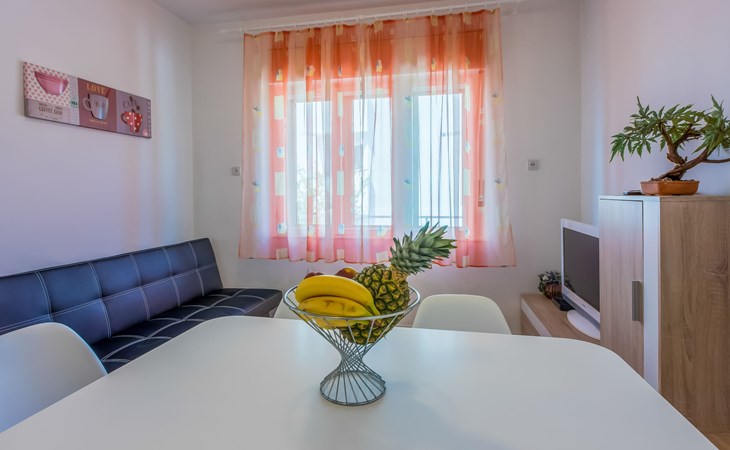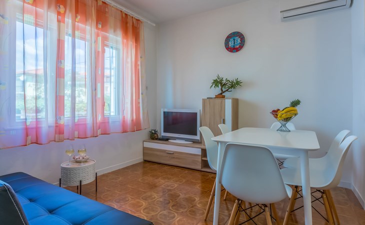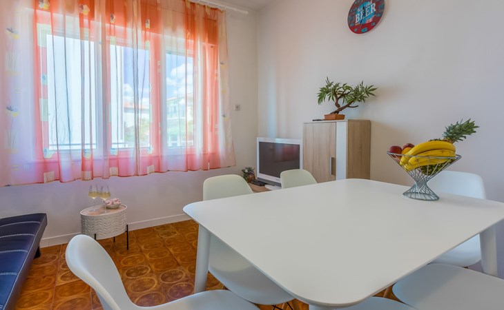 Zweifamilienhaus "Tea". 1 km vom Zentrum von Novi Vinodolski, sonnige Lage, 500 m vom Meer, 500 m vom Strand. Zur Mitbenutzung: Grundstück 500 m2 (eingezäunt). Grill. Im Hause: Internetzugang. Parkplatz beim Haus auf dem Grundstück. Einkaufsgeschäft 1 km, Supermarkt 1 km, Restaurant 1 km, Bushaltestelle 1.4 km, Felsstrand 500 m, Strandbad 1.8 km.