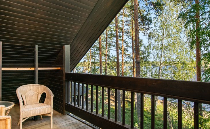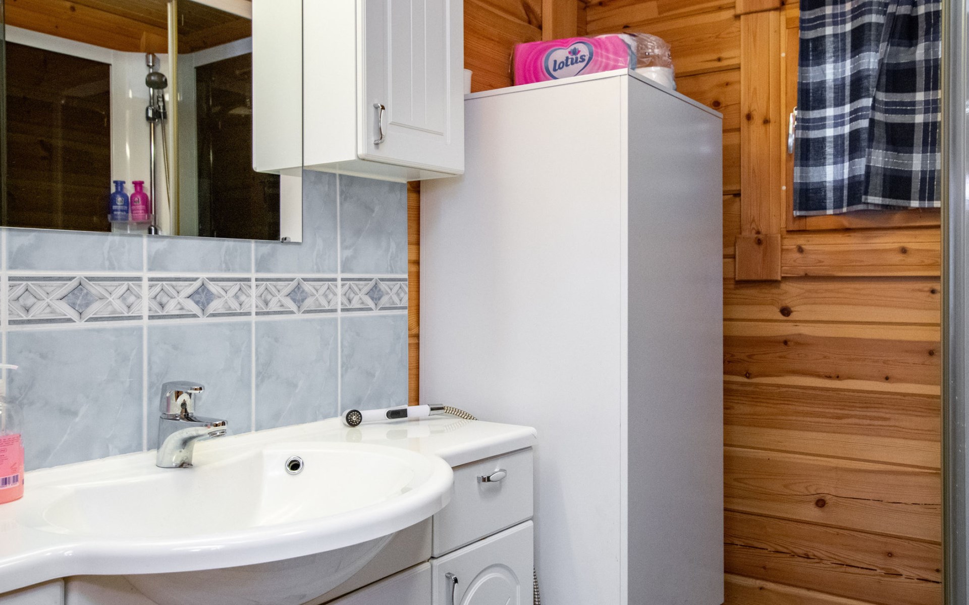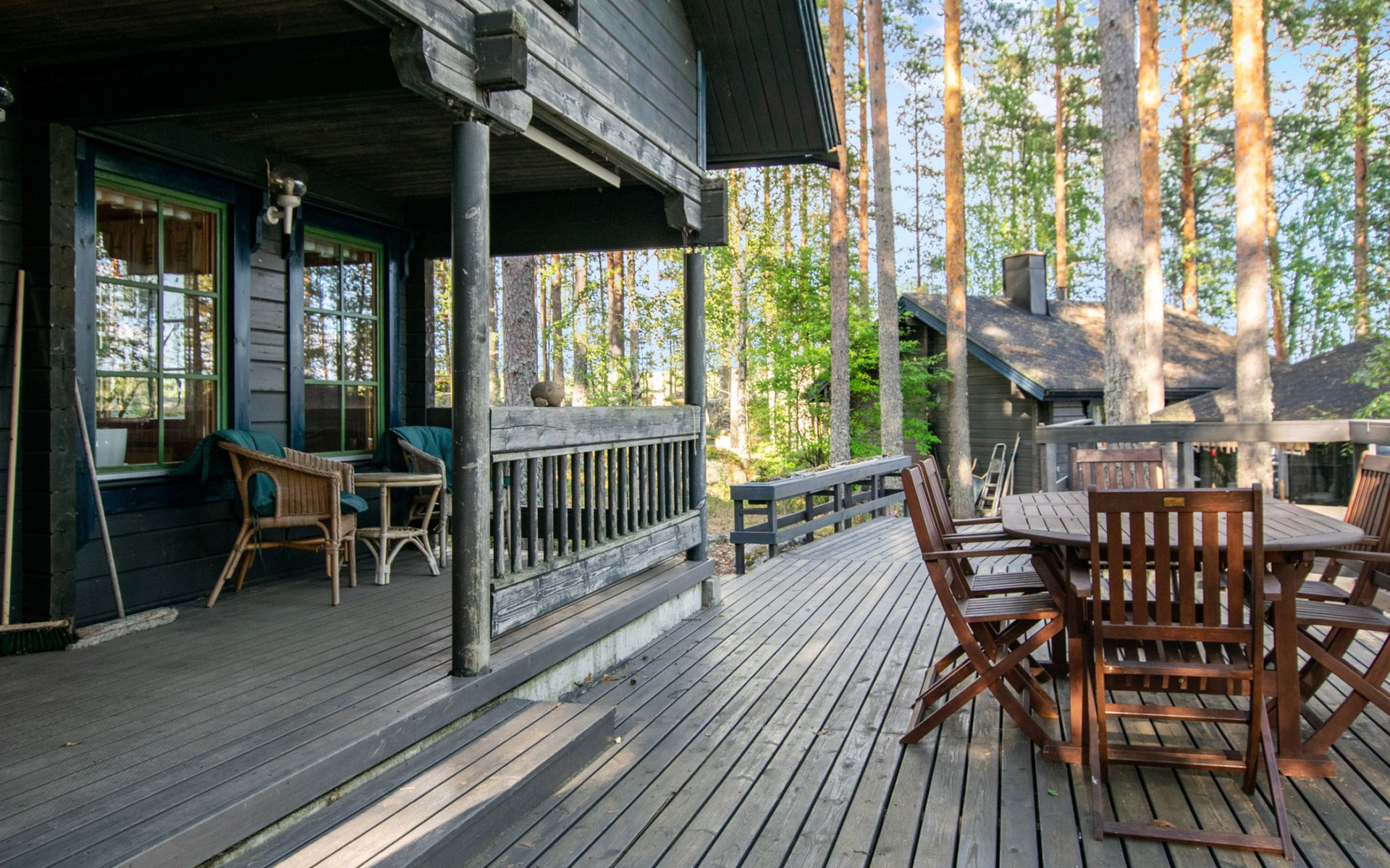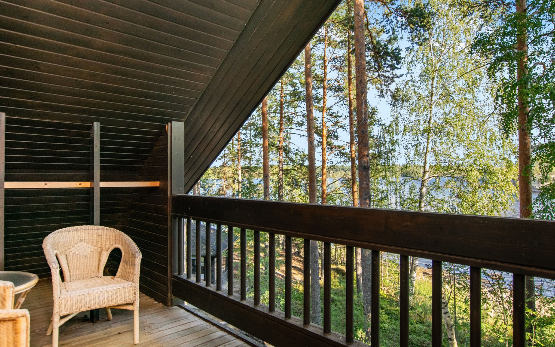 Log cottage 2001, living room, kitchen, double bed in the bedroom, two beds in the second bedroom, shower and toilet in the bathroom, covered porch. Upstairs hall, balcony, double bed in the bedroom, baby gate downstairs and upstairs.