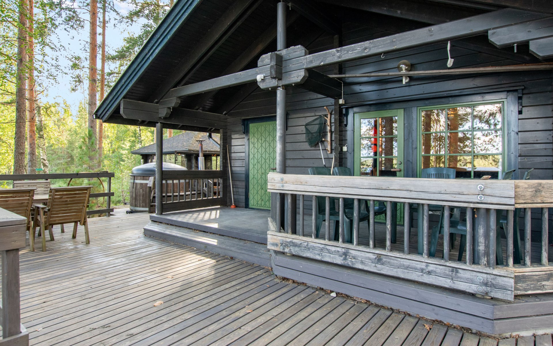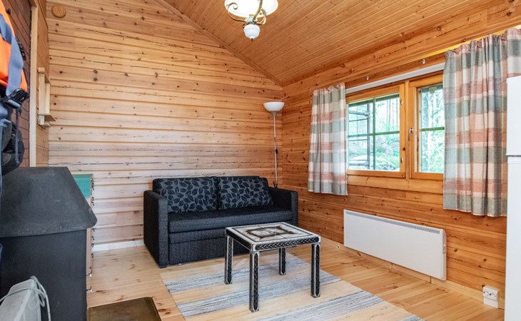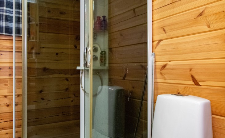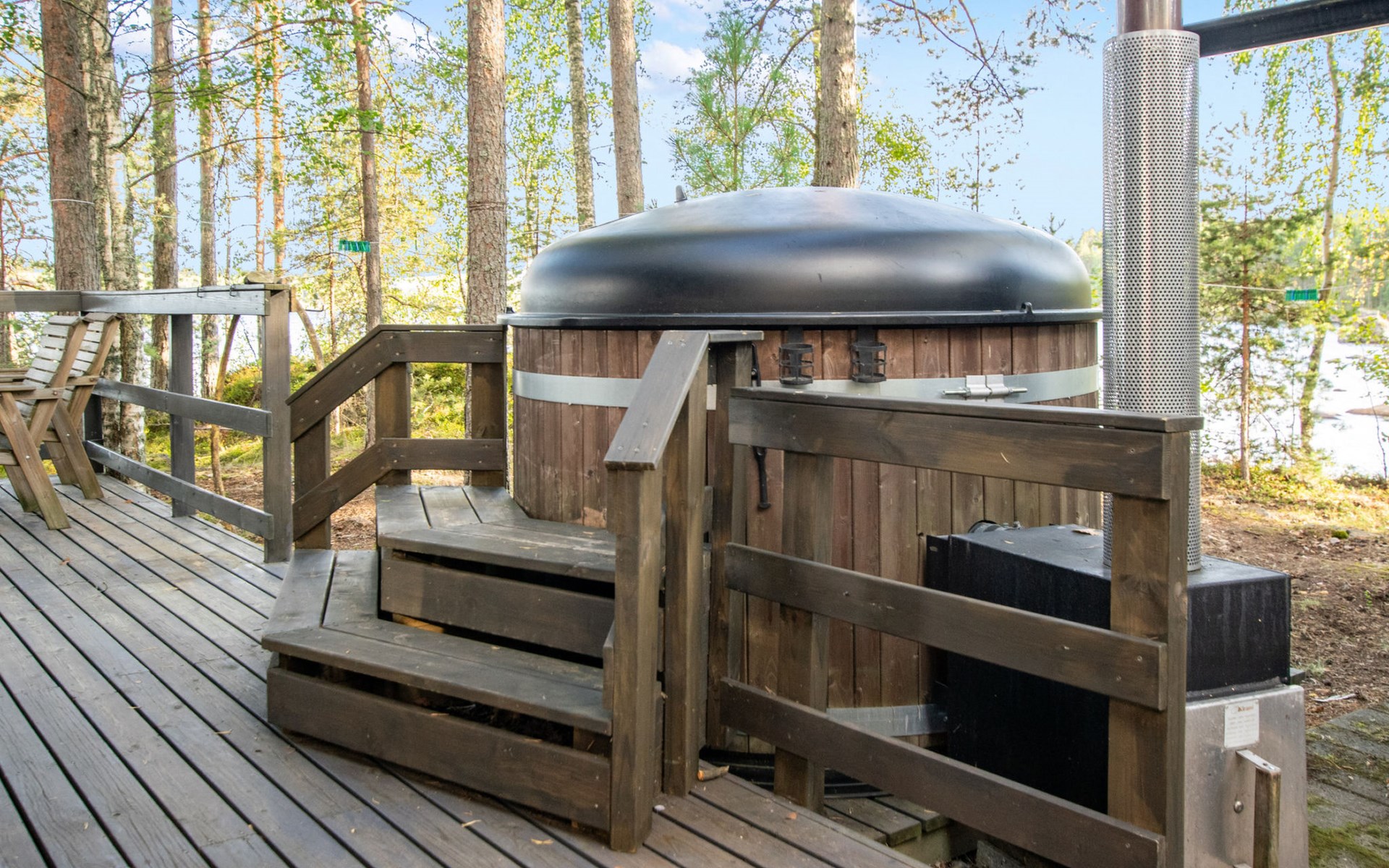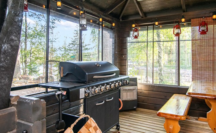 In the lakeside sauna (available all year round) in the fireplace lounge sofa bed for two, refrigerator. Shower in the bathroom, wood stove in the sauna, covered porch. Glazed barbecue shed with gas grill.