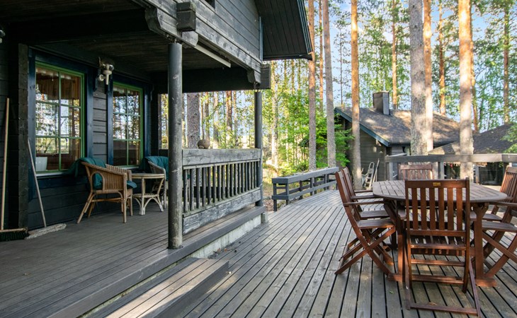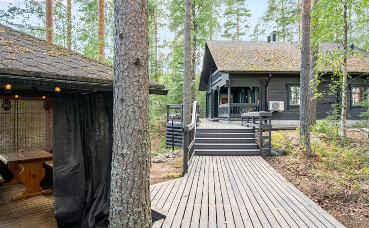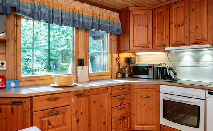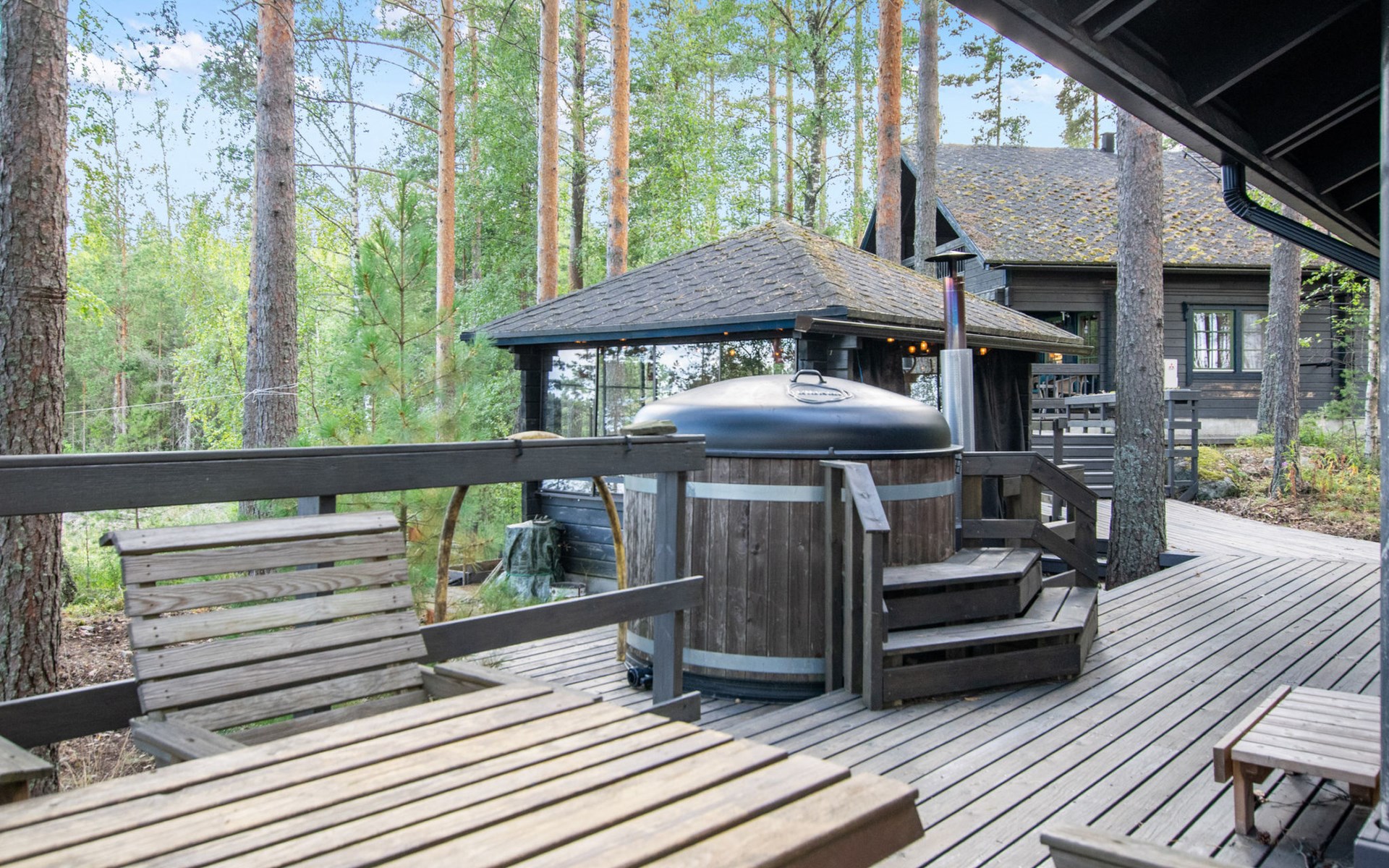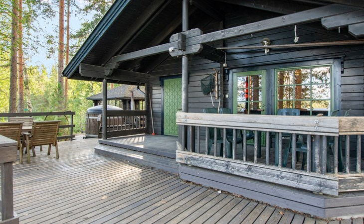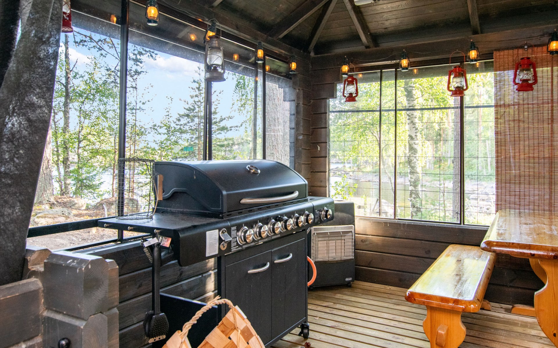 In the lakeside sauna (available all year round) in the fireplace lounge sofa bed for two, refrigerator. Shower in the bathroom, wood stove in the sauna, covered porch. Glazed barbecue shed with gas grill.