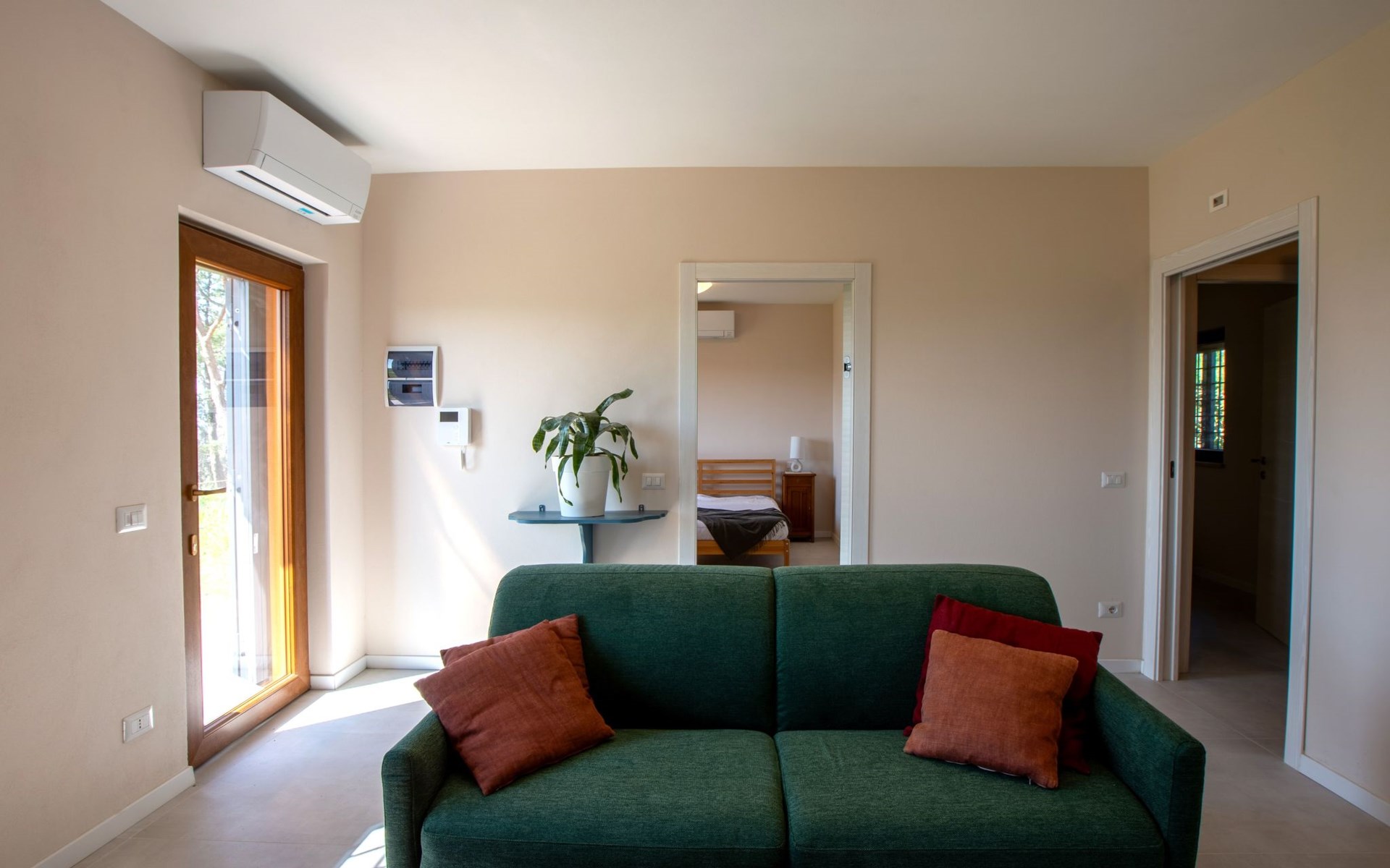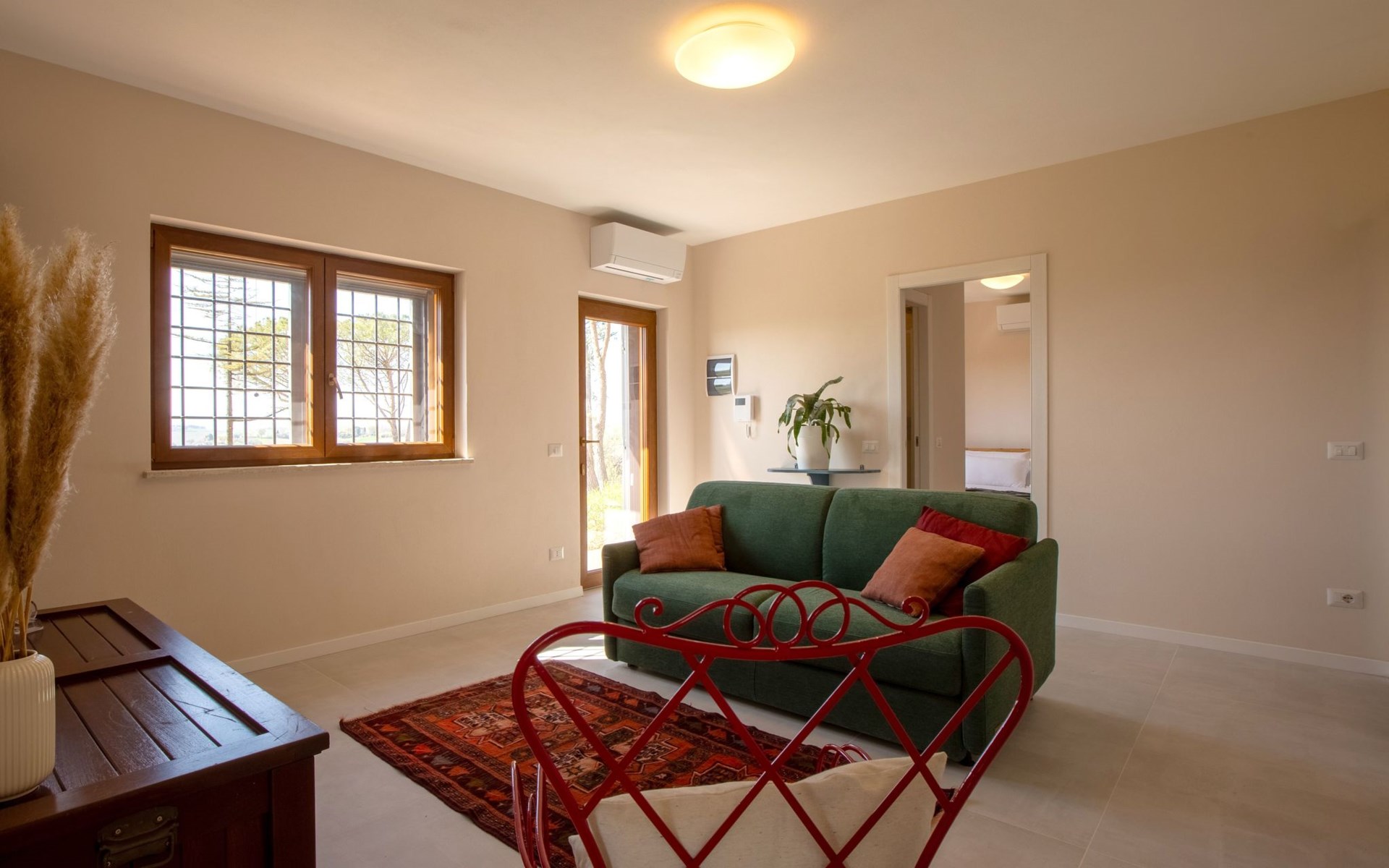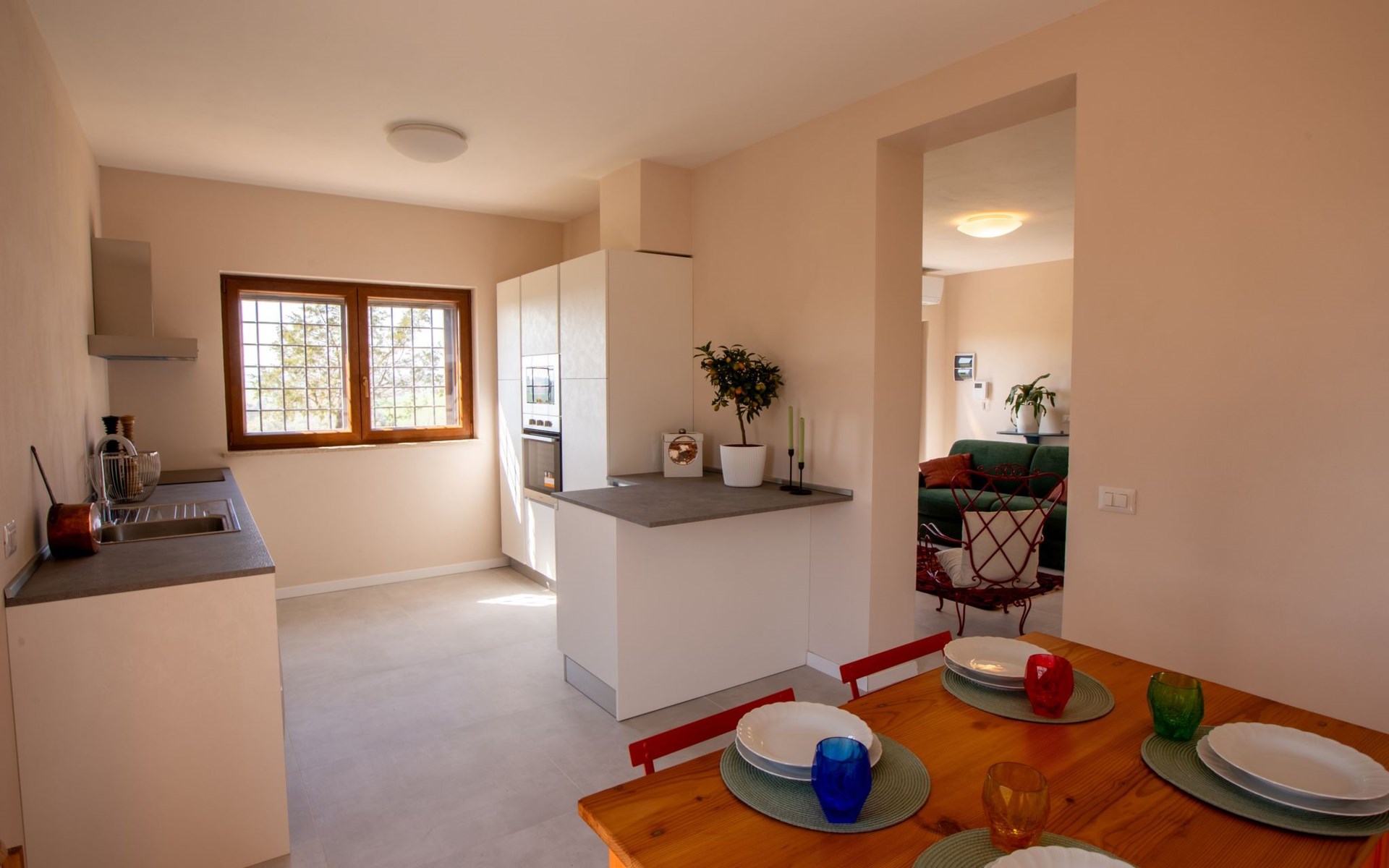 Im Inneren ist die Wohnung eine wahre Oase des Komforts: Sie verfügt über 2 Schlafzimmer und 2 Bäder, die allen Gästen viel Platz und Privatsphäre bieten. Die Klimaanlage in jedem Zimmer sorgt für Abkühlung und macht die Wohnung zu einem idealen Zufluchtsort auch in den heißen Sommermonaten. Die Küche ist mit einem Induktionsherd, einem Geschirrspüler, einer Kaffeemaschine und einem Wasserkocher voll ausgestattet und bietet alles, was Sie für die Zubereitung köstlicher Mahlzeiten benötigen. Für zusätzlichen Komfort steht Ihnen auch eine Waschmaschine zur Verfügung.