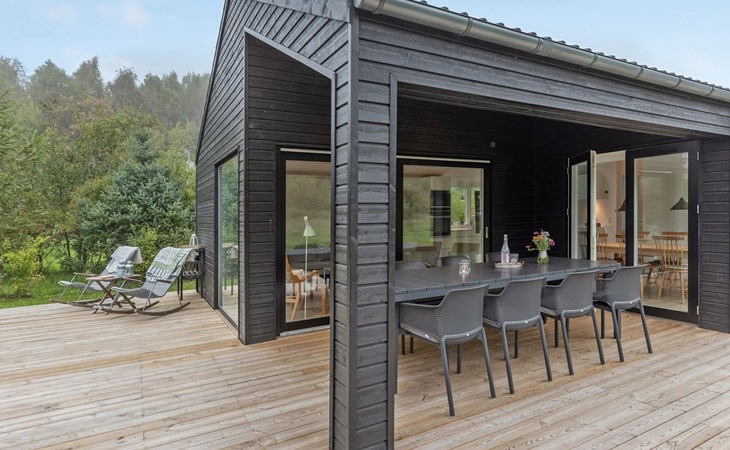 Einfamilienhaus, Baujahr 2021. 350 m vom Meer. Zur Alleinbenutzung: naturbelassenes Grundstück 1'207 m2. Aussendusche, Terrasse (70 m2), Grill. Im Hause: Sauna, Waschmaschine, Wäschetrockner. Parkplatz beim Haus. E-Ladestation. Lebensmittelgeschäft 3 km. Golfplatz 5 km. Der Besitzer akzeptiert keine Jugendgruppen.