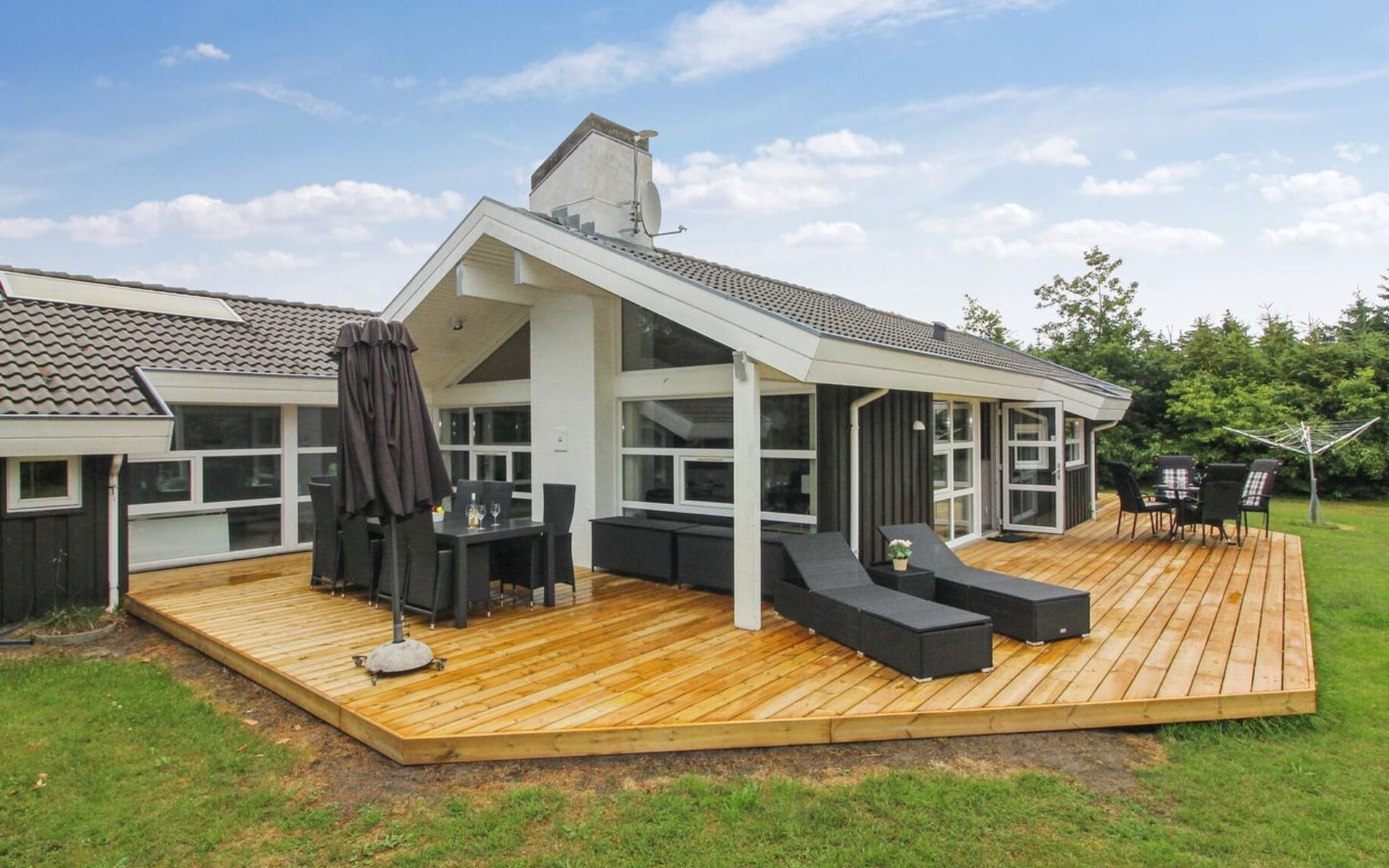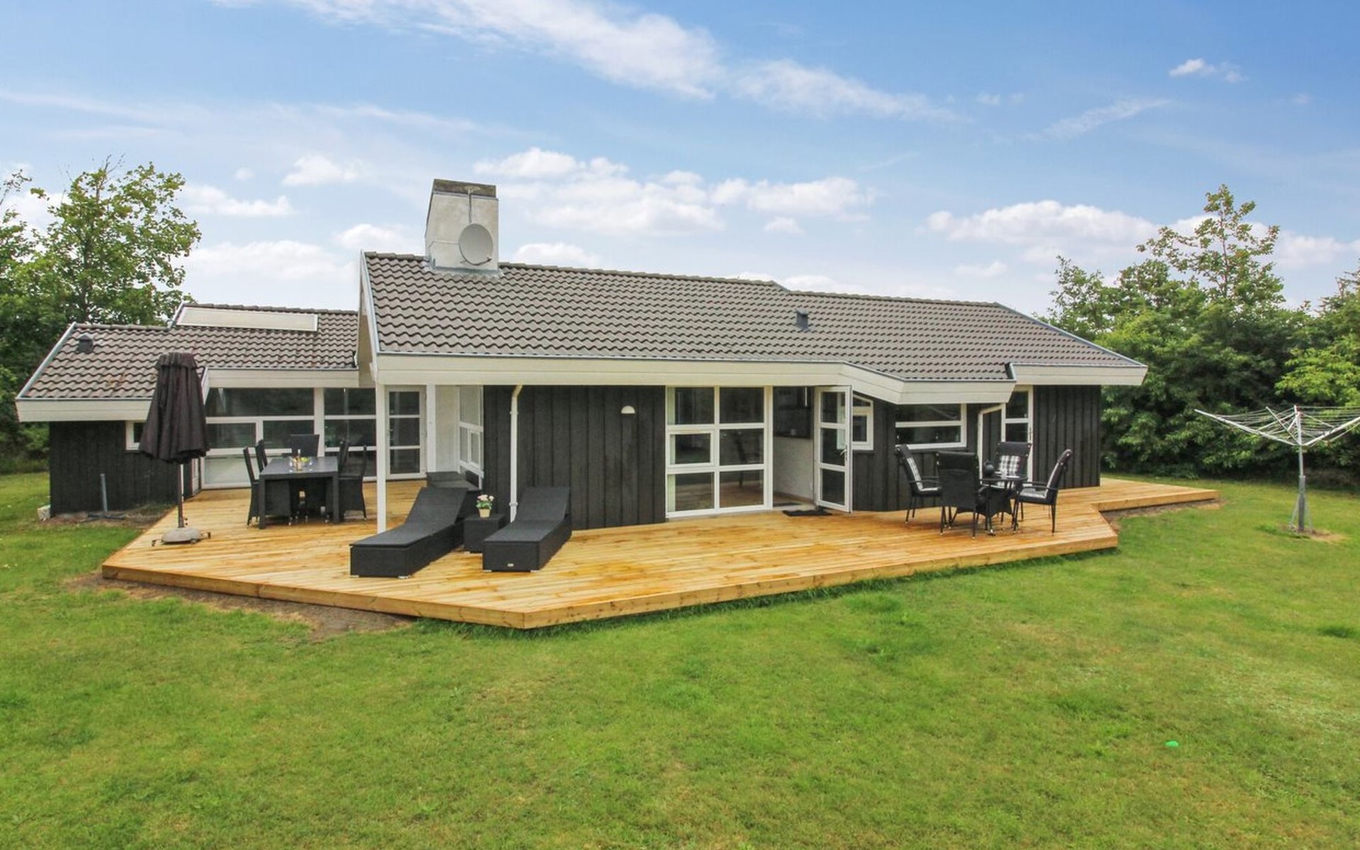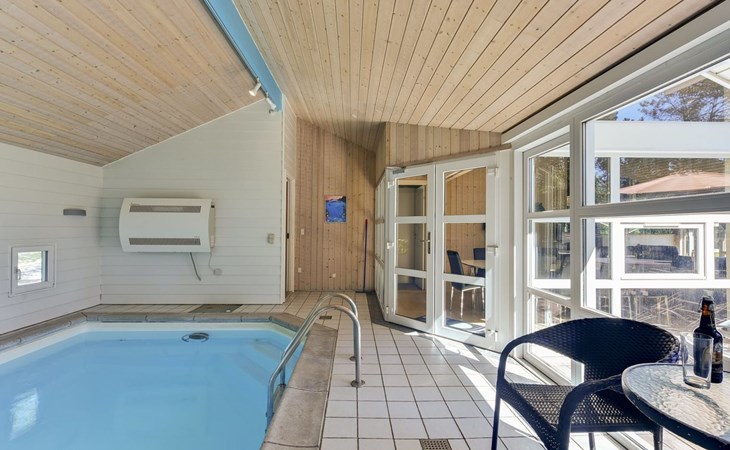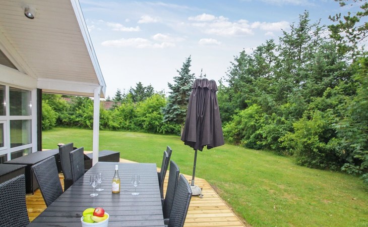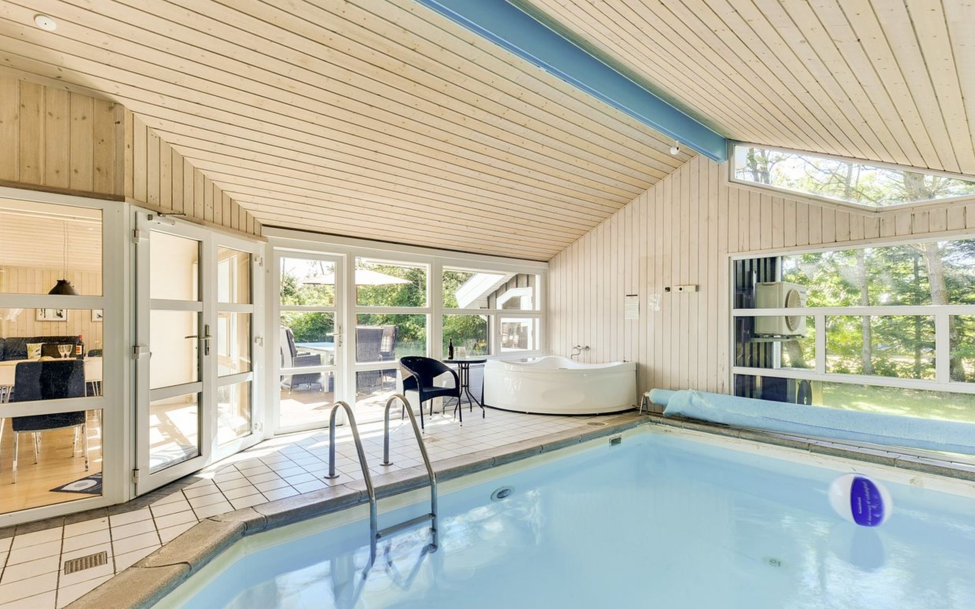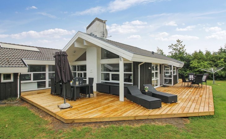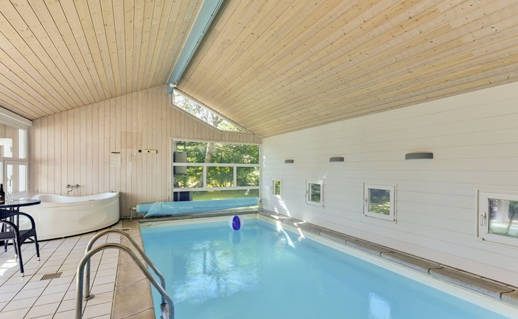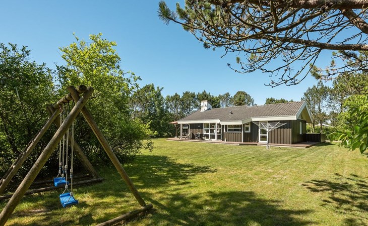 Einfamilienhaus, Baujahr 1989. 2.7 km vom Meer. Zur Alleinbenutzung: naturbelassenes Grundstück 1'260 m2, Hallenbad (3 x 6 m, 18 m2, 120 - 120 cm tief). Terrasse (140 m2), Kinderspielplatz (Schaukel). Im Hause: Sauna, Waschmaschine, Wäschetrockner. Parkplatz beim Haus. Lebensmittelgeschäft 3 km. Der Besitzer akzeptiert keine Jugendgruppen.