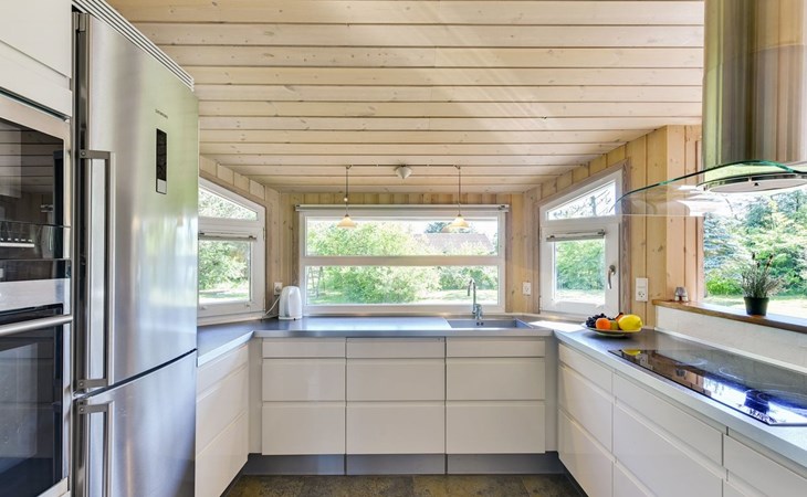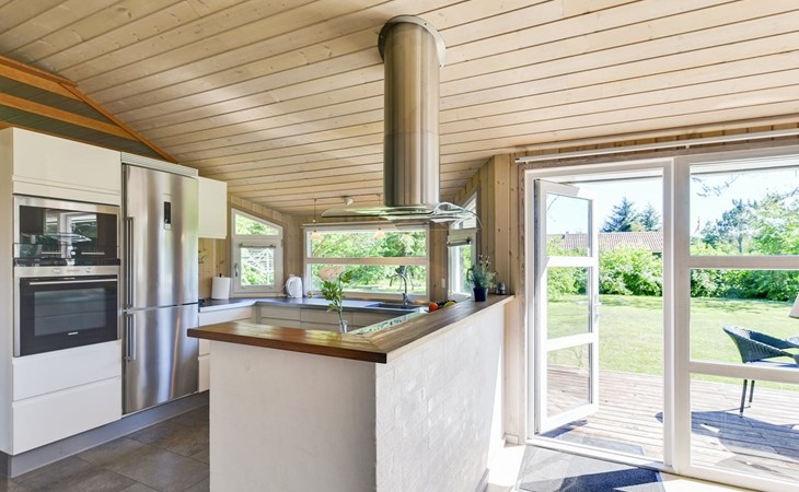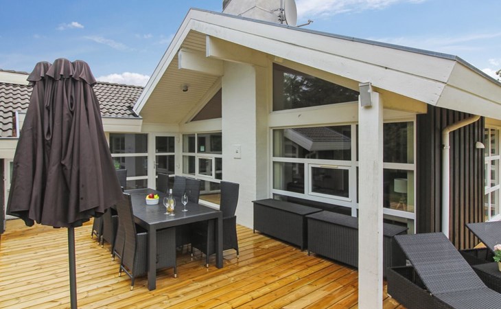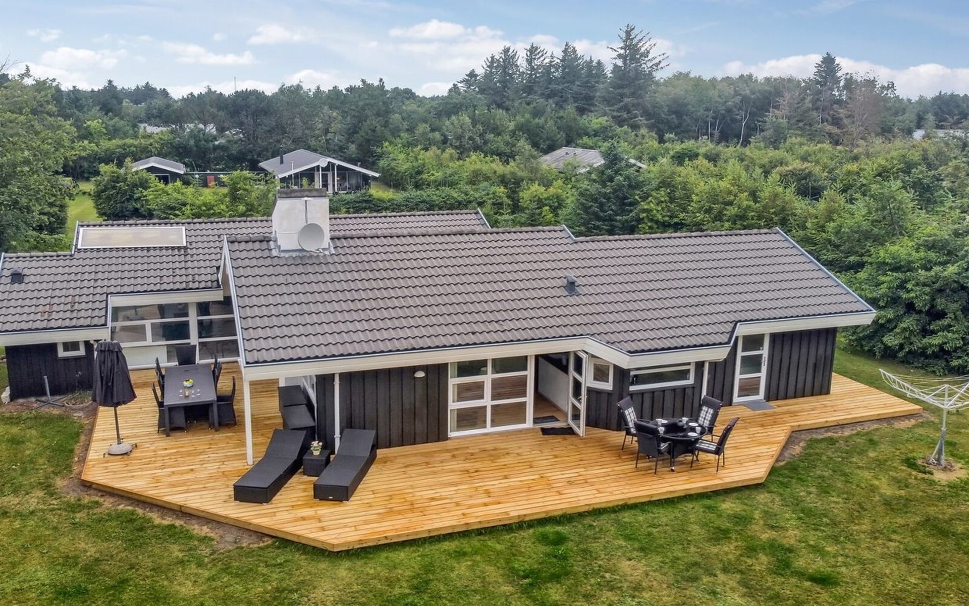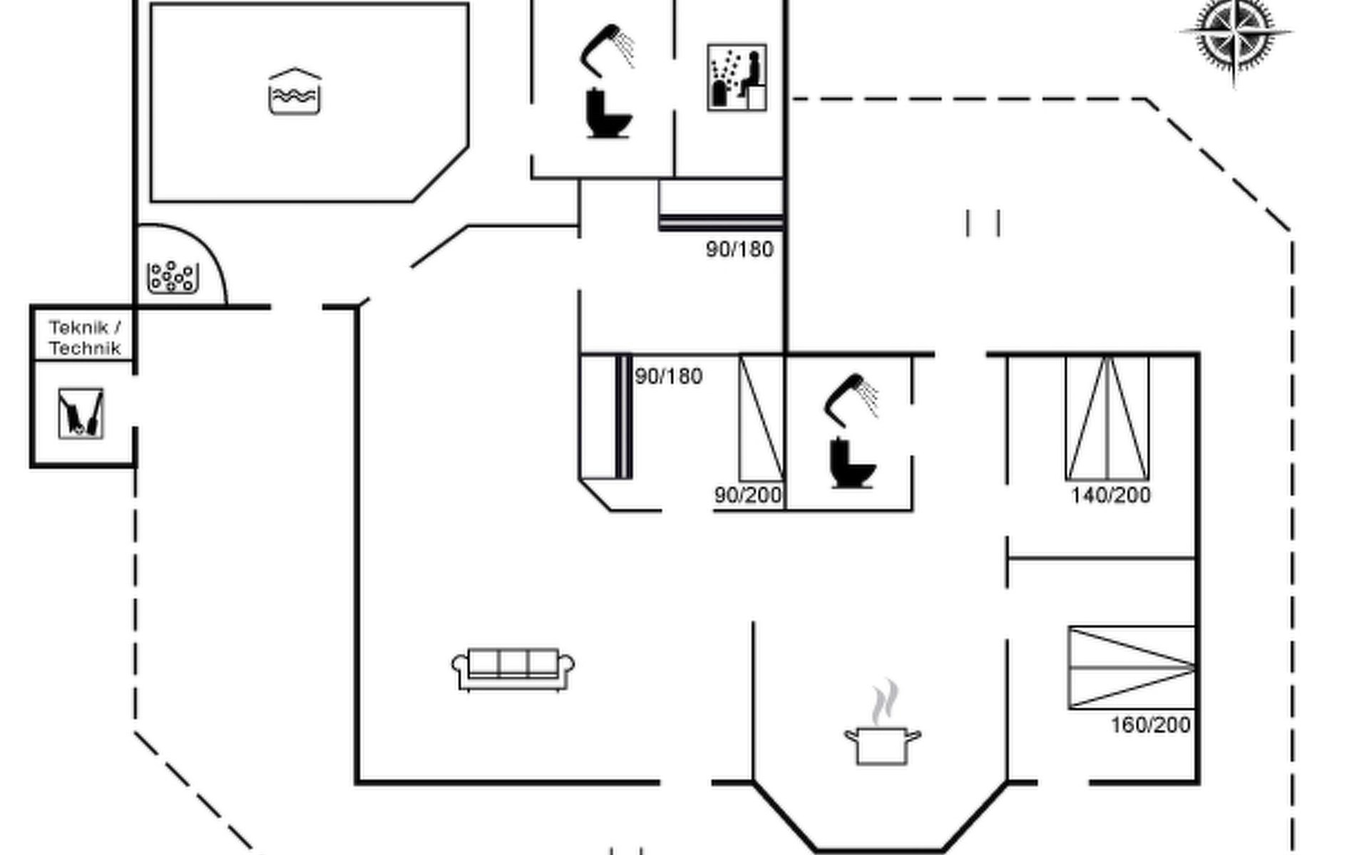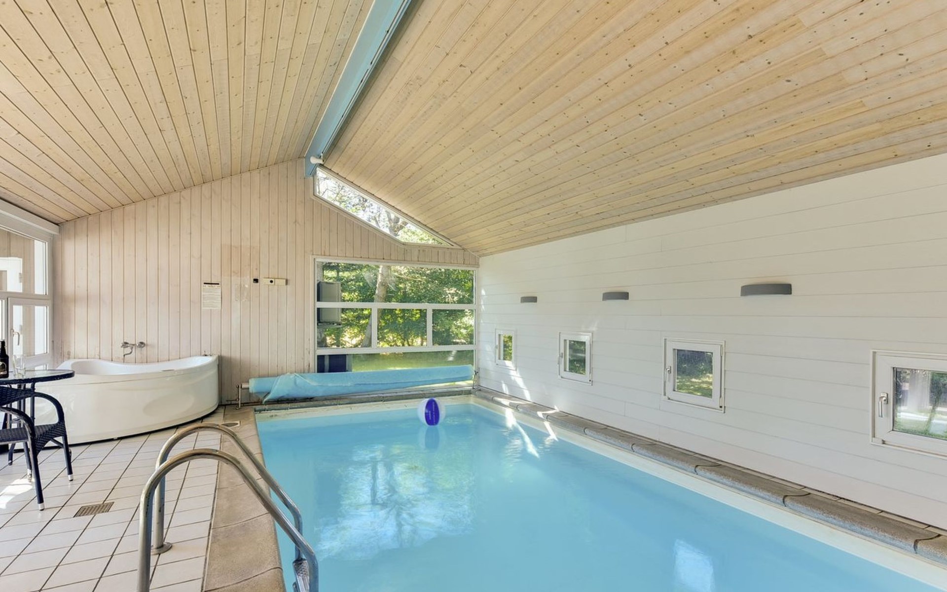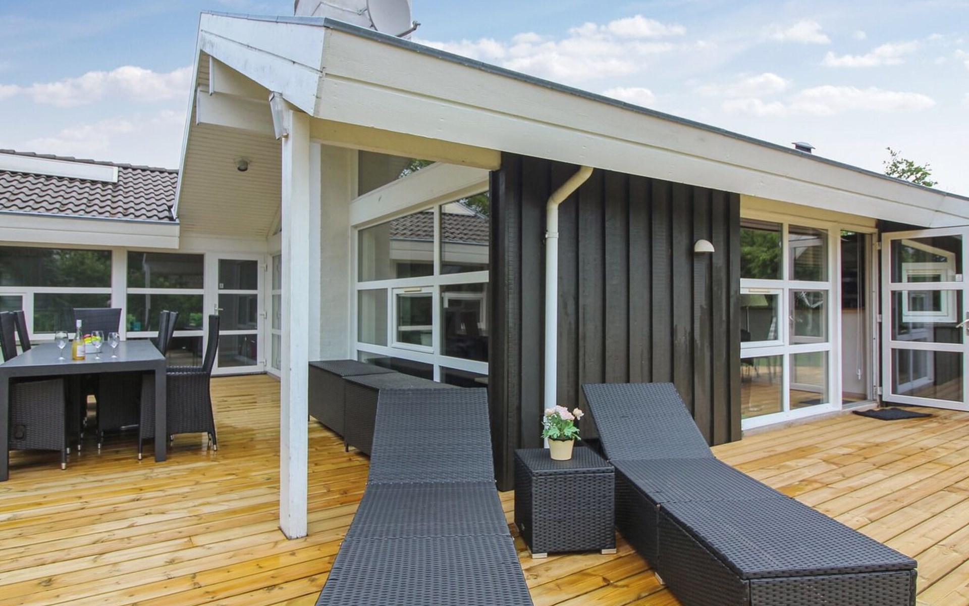 Einfamilienhaus, Baujahr 1989. 2.7 km vom Meer. Zur Alleinbenutzung: naturbelassenes Grundstück 1'260 m2, Hallenbad (3 x 6 m, 18 m2, 120 - 120 cm tief). Terrasse (140 m2), Kinderspielplatz (Schaukel). Im Hause: Sauna, Waschmaschine, Wäschetrockner. Parkplatz beim Haus. Lebensmittelgeschäft 3 km. Der Besitzer akzeptiert keine Jugendgruppen.