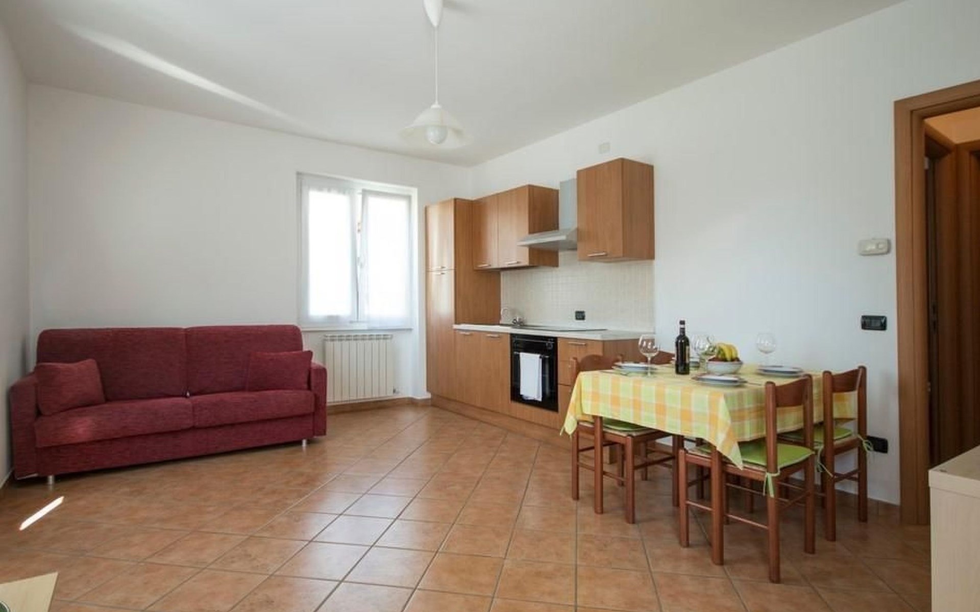 Die Einrichtung der Zweizimmerwohnung ist ein Inbegriff von Komfort und Eleganz. Das gemütliche Wohnzimmer ist mit einem Doppelschlafsofa und einem Satellitenfernseher ausgestattet, perfekt für Abende voller Unterhaltung. Die Küche lässt keine Wünsche offen und ist komplett ausgestattet mit Backofen, Induktionskochfeld, Kühlschrank mit Gefrierfach und allem Geschirr, das man für die Zubereitung köstlicher Mahlzeiten benötigt. Das Schlafzimmer mit Doppelbett garantiert einen ruhigen und erholsamen Schlaf, flankiert von einem Badezimmer, das mit den unverzichtbaren Annehmlichkeiten wie Dusche, WC und Bidet ausgestattet ist.