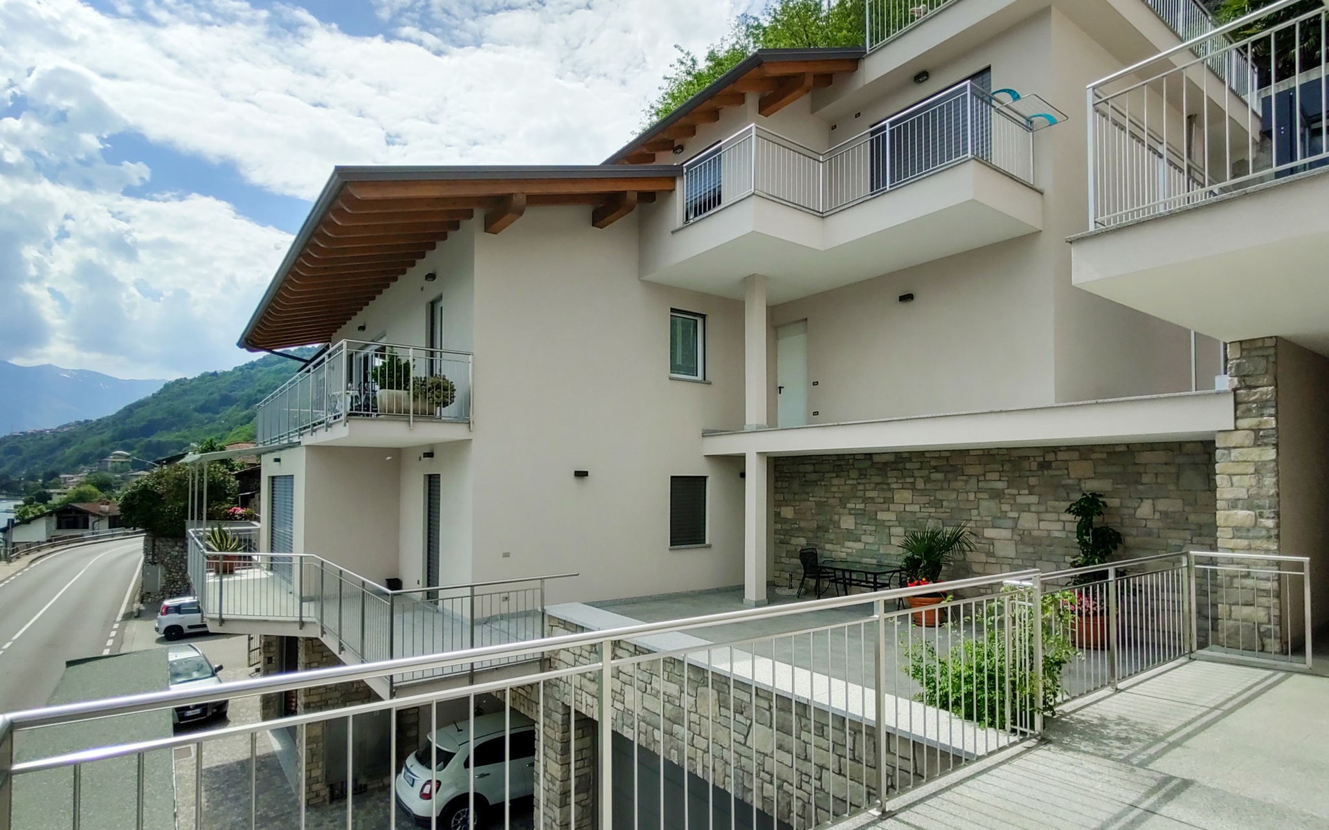 Modernes Mehrfamilienhaus "Fiore", auf 3 Stockwerken. 2 Häuser in der Residenz. 5 Wohnungen in der Residenz. Im Ortsteil Cinque Case, 1 km vom Zentrum von Gera Lario, am Ortsrand, 50 km vom Zentrum von Lugano, 58 km vom Zentrum von Como, am Hang, 40 m vom See, an einer Hauptstrasse. Im Hause: Einstellraum für Fahrräder. Wohnungsreinigung möglich (extra). Gemeinschaftsgarage (extra). E-Ladestation. Einkaufsgeschäft 1 km, Supermarkt 2.9 km, Bushaltestelle 400 m, Bahnstation "Colico" 5 km, Kieselstrand 40 m, Grasstrand "Acquaforte" 220 m. Jacht-Hafen 1 km, Golfplatz (18 Loch) 26 km. Bitte beachten: Fahrzeug empfohlen. Hauptstrasse 5 m vom Haus.