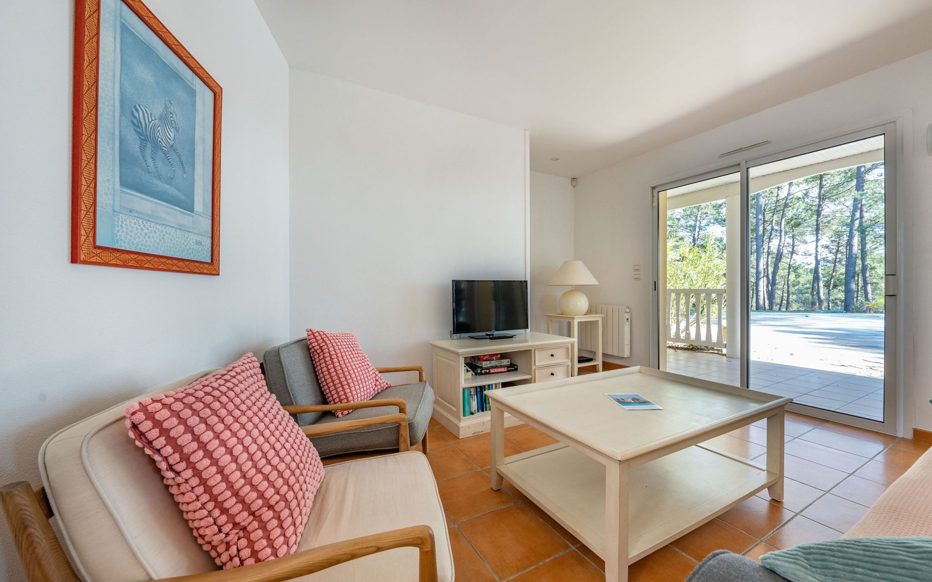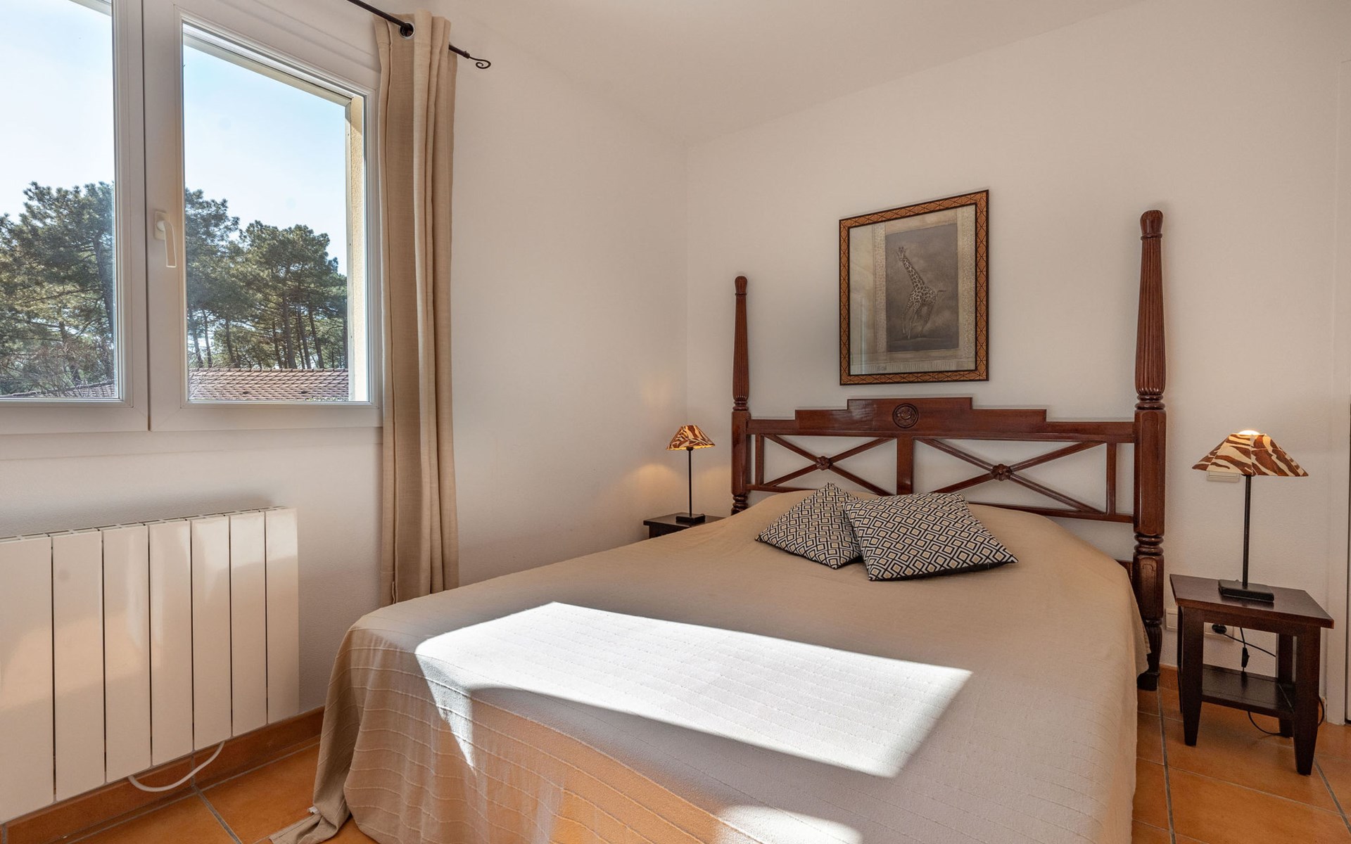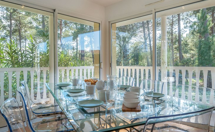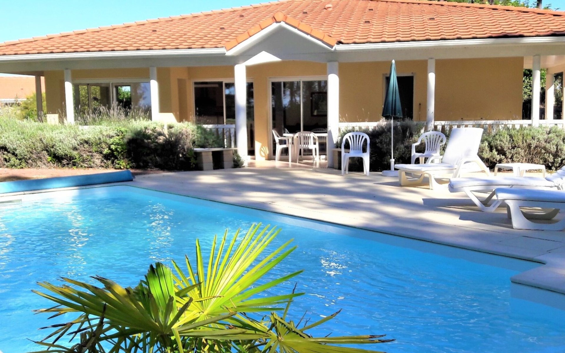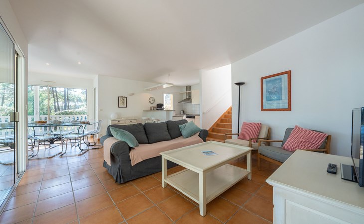 Einfamilienhaus "Eden Parc". Ausserhalb des Ortes, 2.5 km vom Zentrum, 3 km vom See. Zur Alleinbenutzung: Garten 300 m2 (eingezäunt), Schwimmbad (8 x 4 m, saisonale Verfügbarkeit: 01.Jun. - 30.Sep.) mit Alarmanlage. Parkplatz auf dem Grundstück. Einkaufsgeschäft 2.5 km, Lebensmittelgeschäft 2.5 km, Supermarkt 4 km, Restaurant 250 m, Bushaltestelle "Le Huga" 3.2 km, Sandstrand 2.5 km. Golfplatz (18 Loch) 500 m, Tennis, Tennishalle 750 m, Reitstall 15 km. Nahe gelegene Sehenswürdigkeiten: Parcours Aventure 1 km, Dune du Pilat 60 km, Bordeaux 60 km, Saint-Emilion 60 km. Bekannte Seen in der Umgebung sind gut erreichbar: Lac du Moutchic 3 km, Maubuisson 15 km.