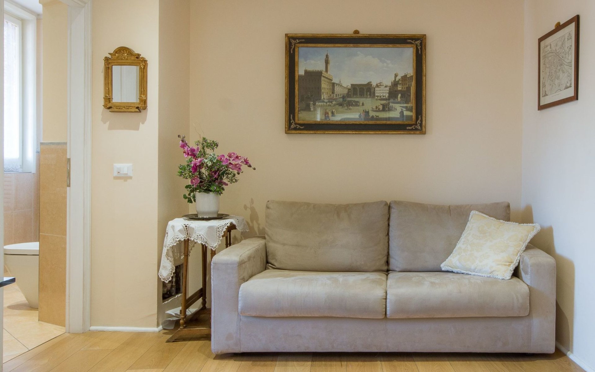 Dank der zentralen Lage sind alle wichtigen Monumente und Museen von Florenz zu Fuß erreichbar: die Uffizien, der Ponte Vecchio, die Piazza della Signoria und die Accademia-Galerie.