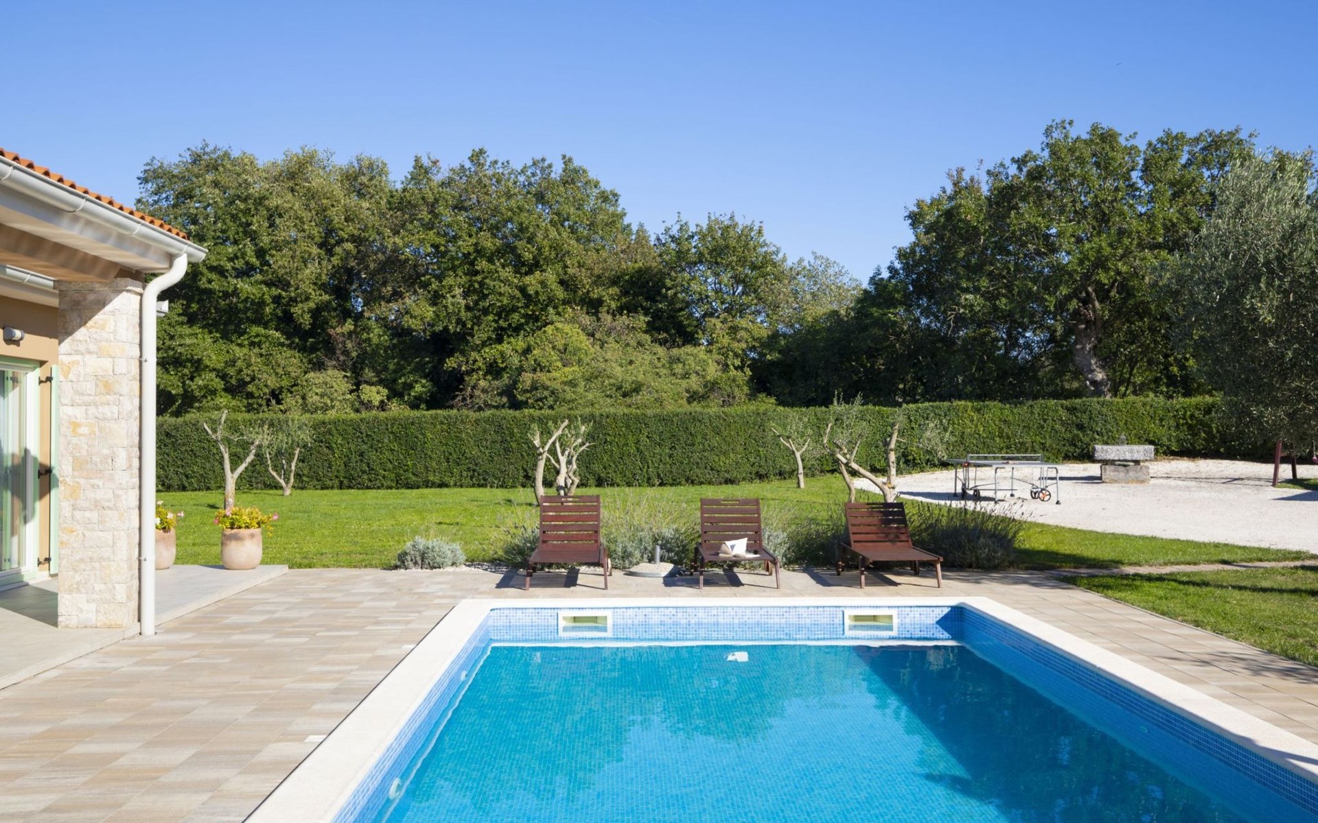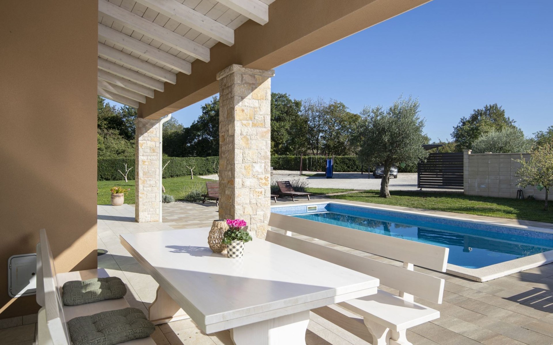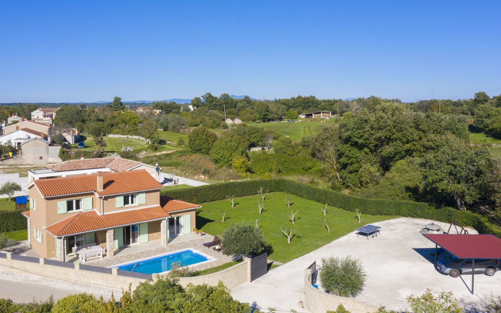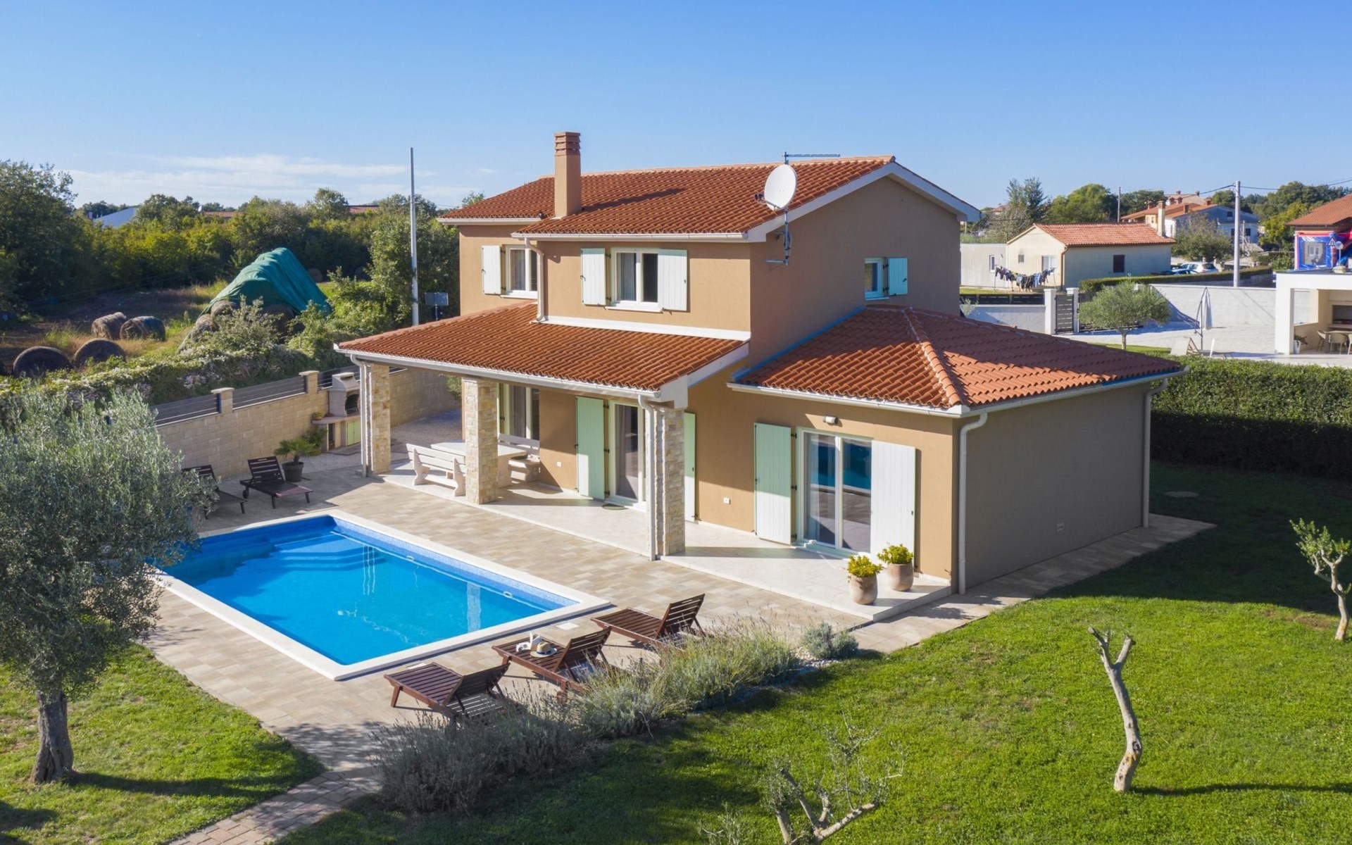 Die 3-Schlafzimmer-Villa Matea befindet sich auf einem großzügigen Privatgrundstück von 1.700 m2. 6 Gäste können bequem ihren Aufenthalt in der Villa genießen, mit einem zusätzlichen Schlafplatz im Wohnzimmer (Schlafsofa).