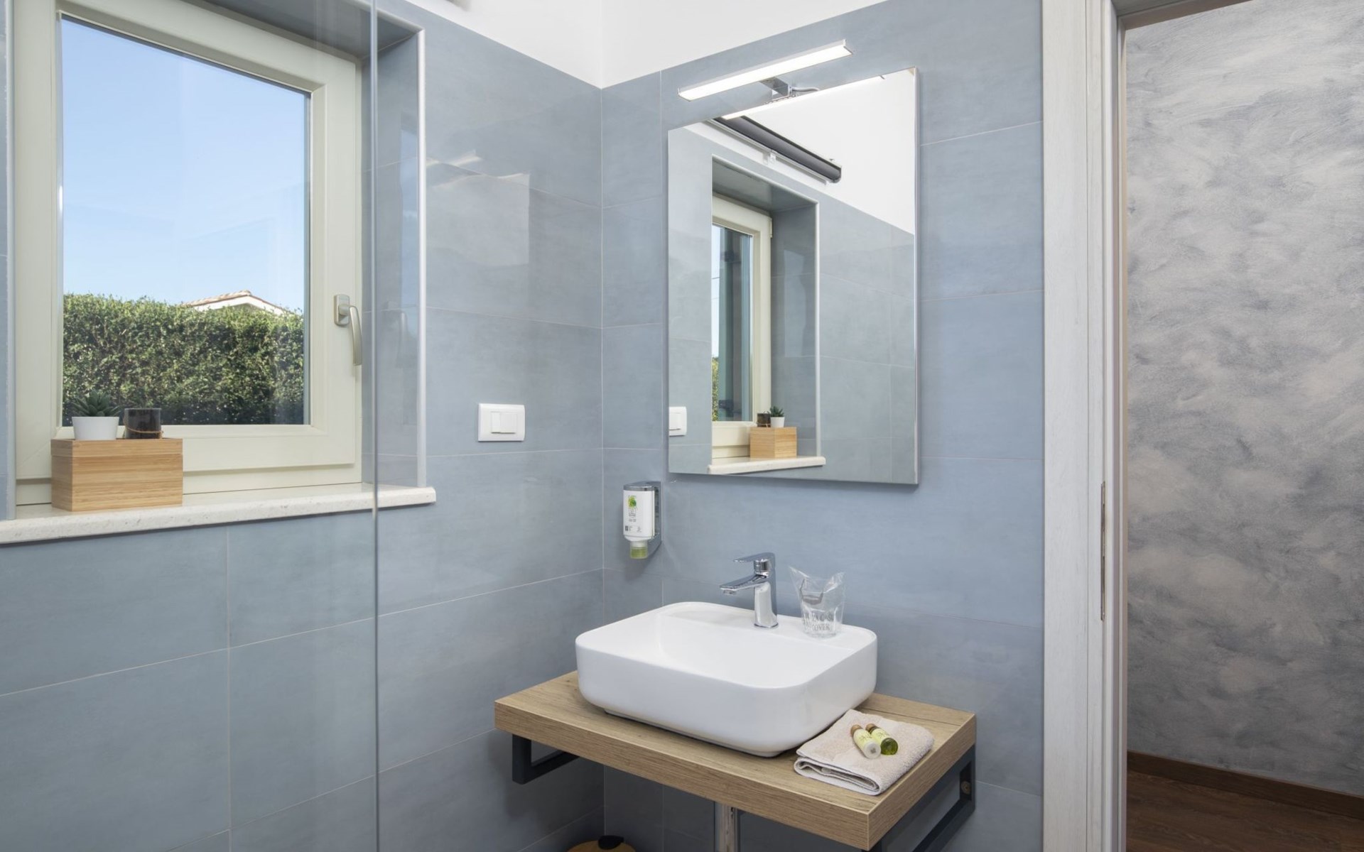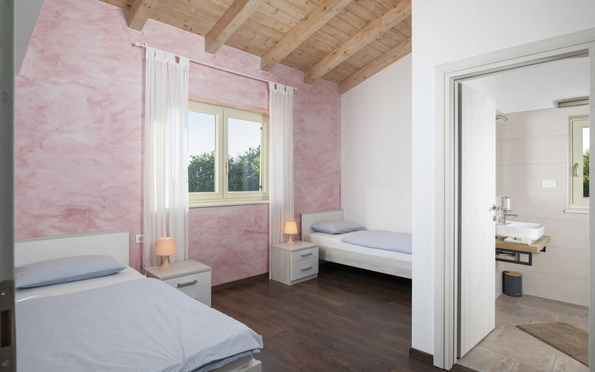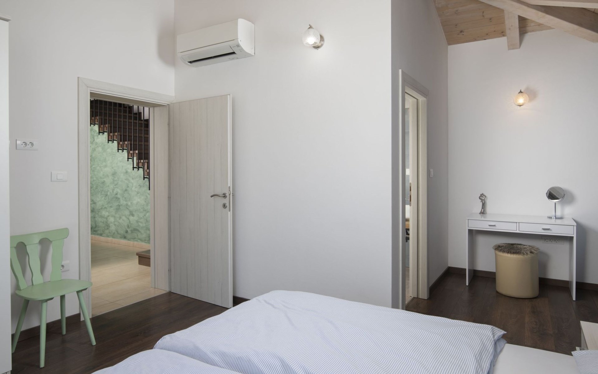 Alle Schlafzimmer haben eine Klimaanlage und ein eigenes Bad mit Dusche. Im Erdgeschoss gibt es eine weitere Klimaanlage und eine Toilette.