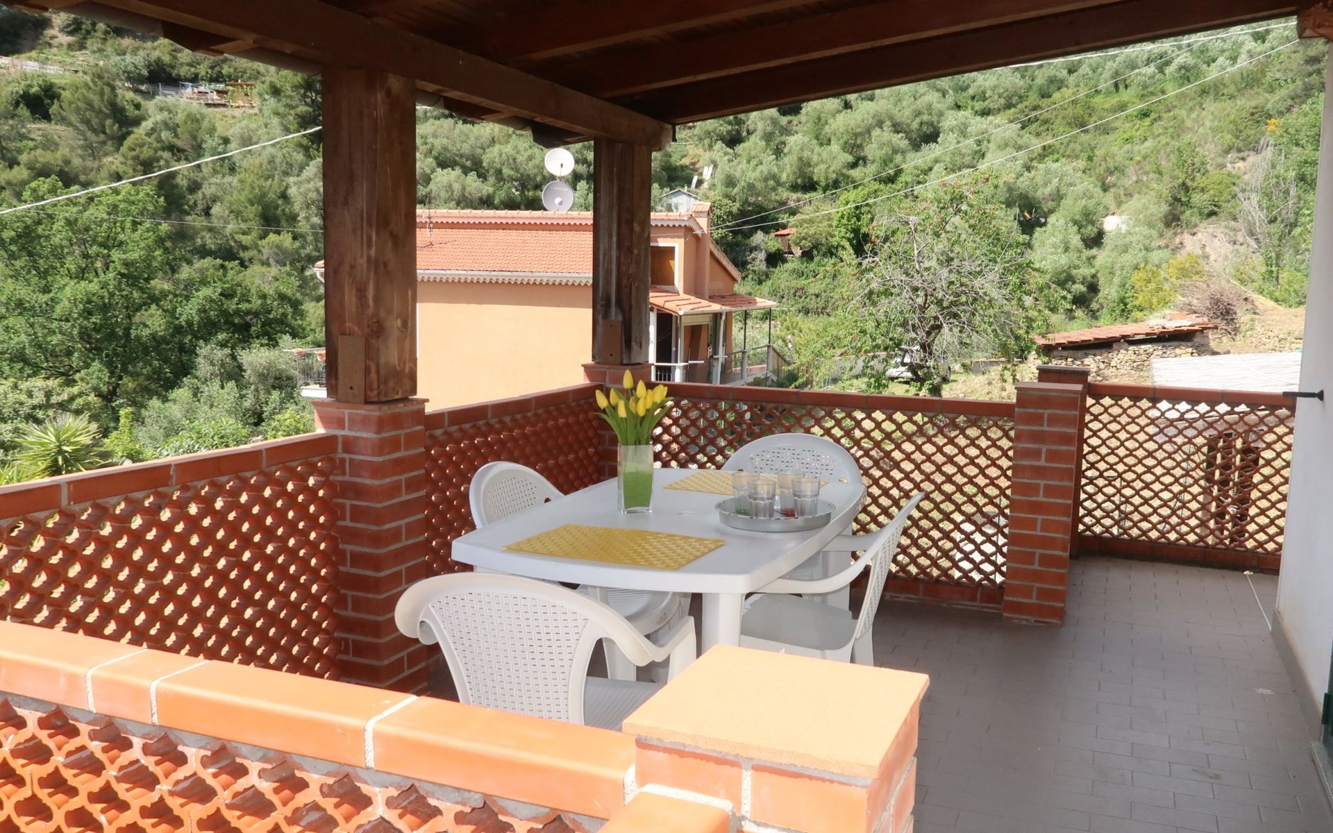 Freistehendes, komfortables Einfamilienhaus "Ludovica", umgeben von Bäumen und Wiesen. Im Ortsteil Orià, 2 km vom Zentrum von Soldano, 10 km vom Zentrum von Bordighera, 10 km vom Zentrum von Ventimiglia, am Hang, in einem Wohnquartier, 8 km vom Meer. Zur Alleinbenutzung: Garten 200 m2 (eingezäunt) mit Rasen und Bäumen. 2 km lange steile, schmale Zufahrt bis zum Haus. Parkplatz (für 2 Autos) auf dem Grundstück. Einkaufsgeschäft 2 km, Supermarkt 5 km, Restaurant 2 km, Bar 2 km, Bushaltestelle 10.9 km, Bahnstation "Ventimiglia" 9 km, Sandstrand "Vallecrosia" 8 km, Hallenbad 8.3 km.