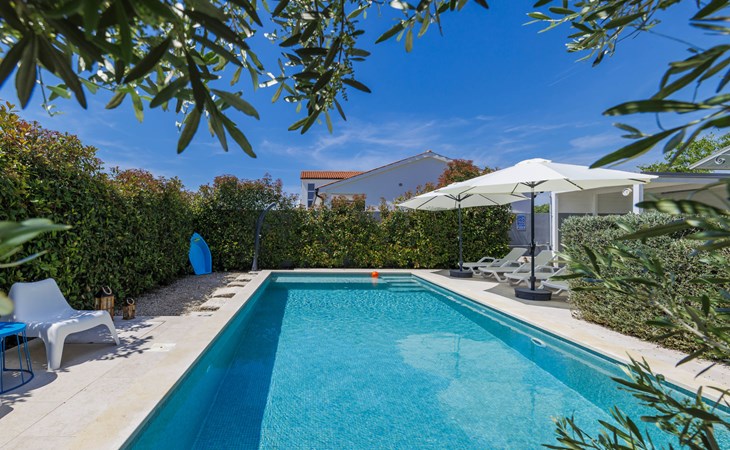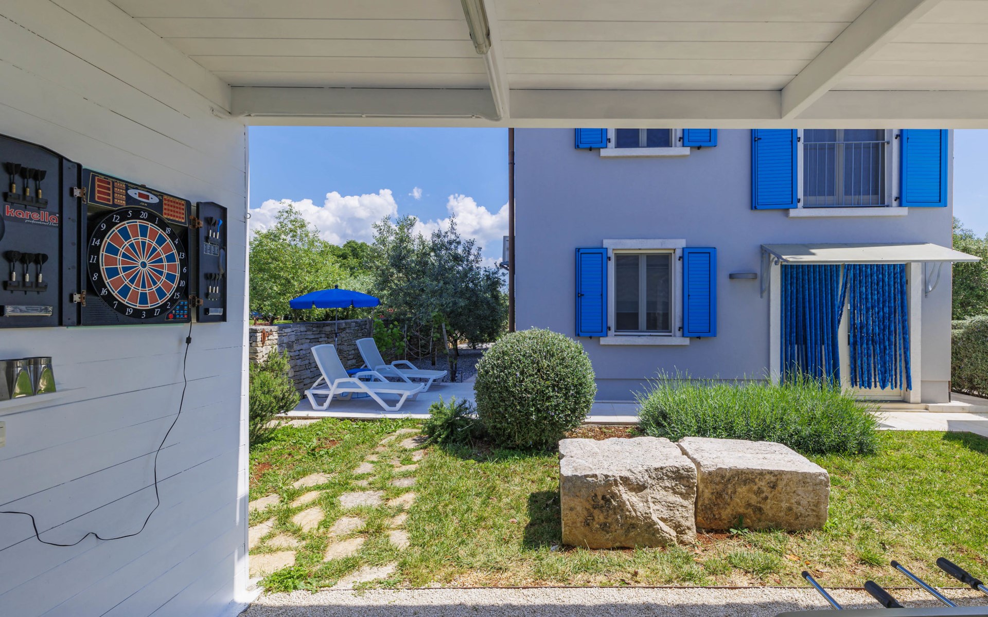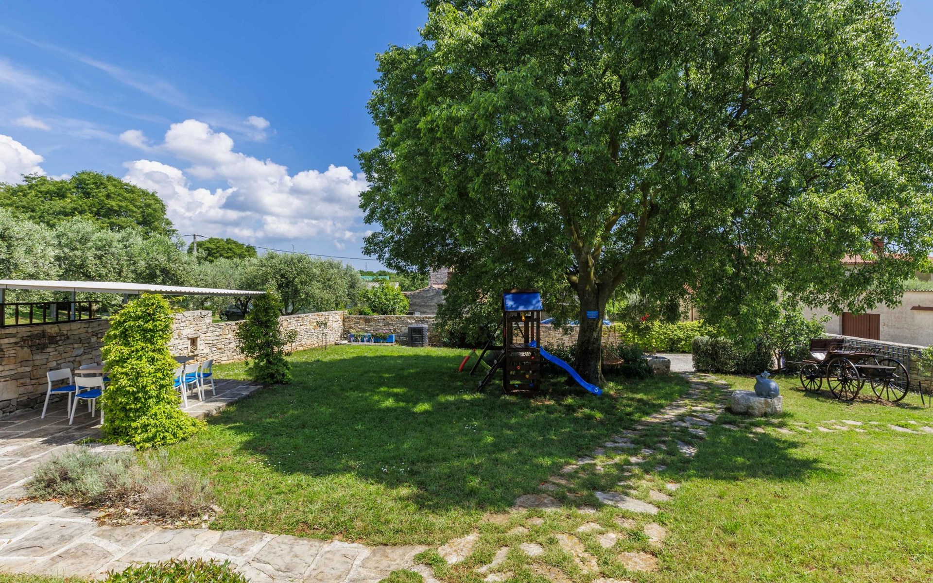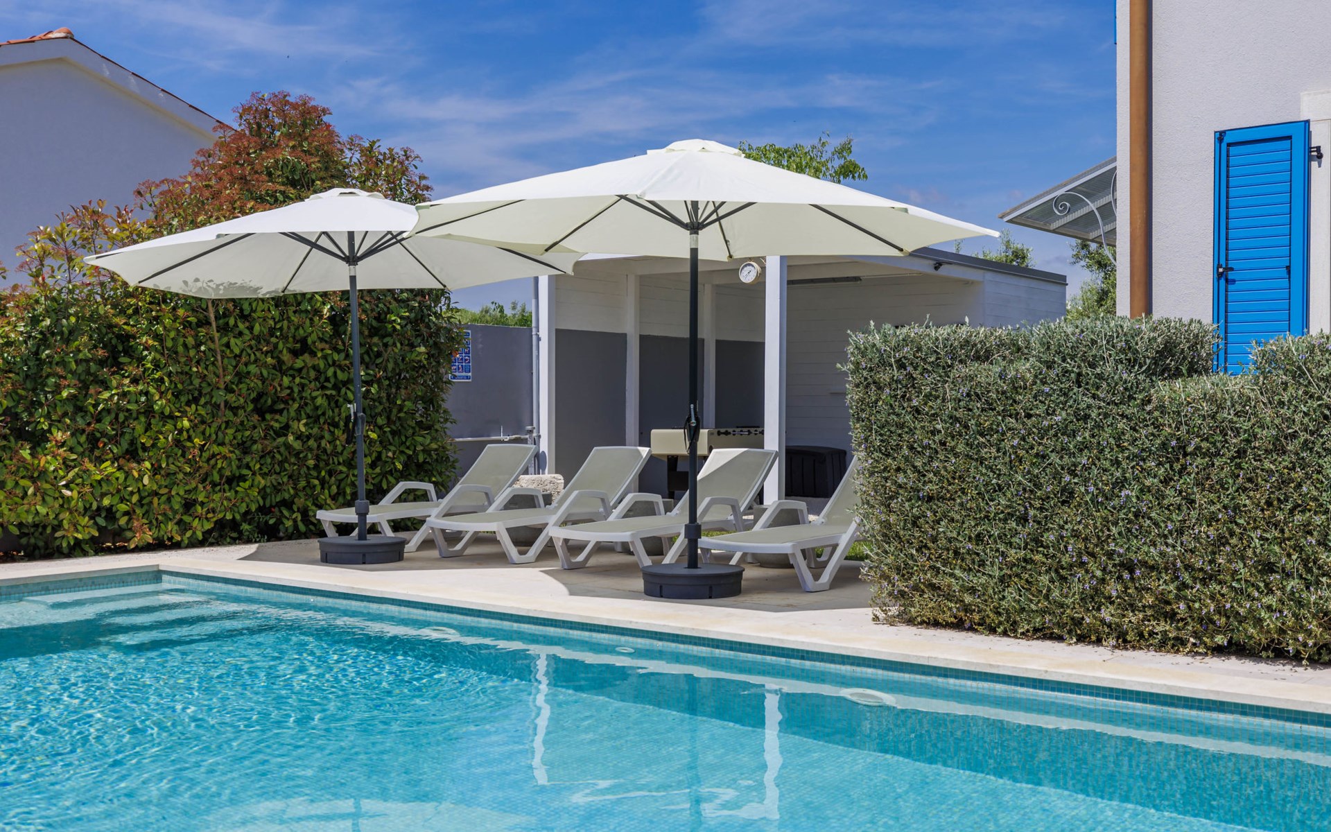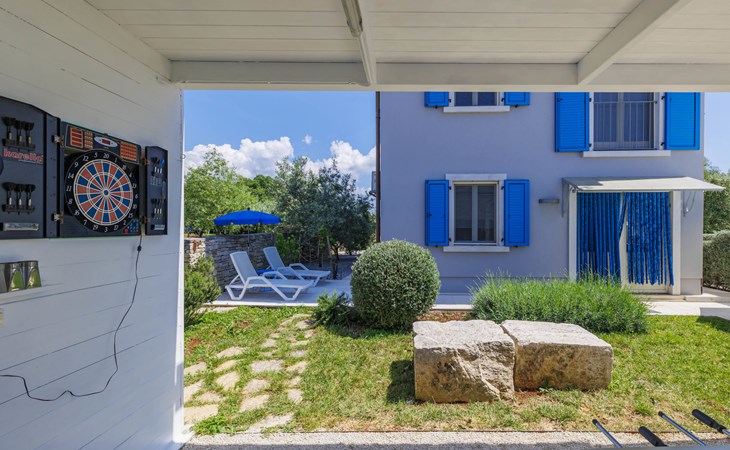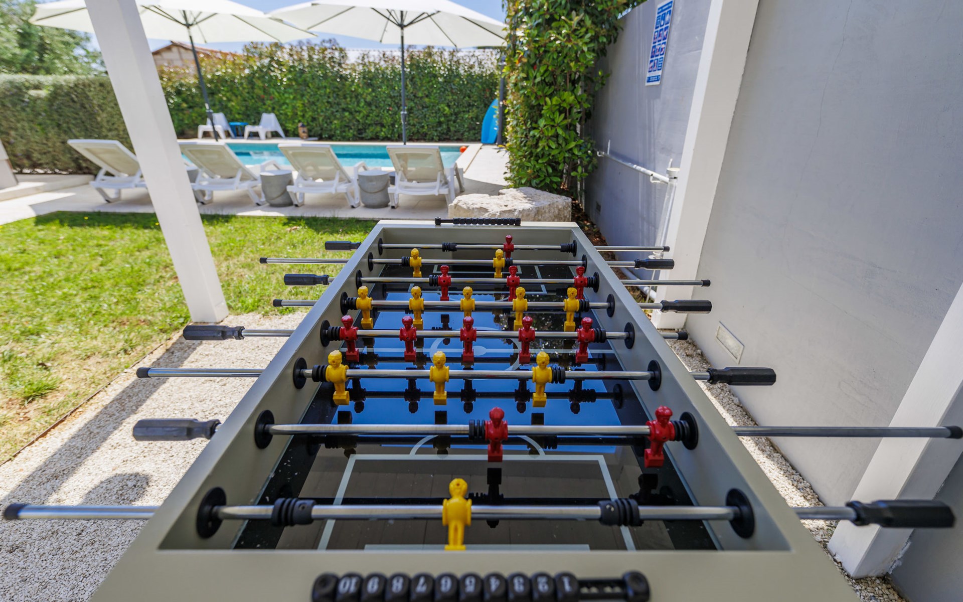 Galižana 5 km von Pula: Moderne, schöne, komfortable Villa "Gallicianum", auf 3 Stockwerken. 500 m vom Zentrum von Galižana, 5 km vom Meer, 5 km vom Strand. Zur Alleinbenutzung: Grundstück 916 m2 (eingezäunt), Garten mit Rasen und Bäumen, Schwimmbad eckig (8 x 4 m, 32 m2, 135 cm tief, saisonale Verfügbarkeit: 18.Mai. - 05.Okt.) mit Innentreppe. Aussendusche, Terrasse (20 m2), Gartenmöbel, Grill (Schaukel). Im Hause: Internetzugang, Tischtennis, Tischfussball, Klimaanlage, Waschmaschine. Parkplatz (für 3 Autos) beim Haus auf dem Grundstück. Einkaufsgeschäft 500 m, Supermarkt 3 km, Restaurant 3 km, Bushaltestelle 750 m, Kieselstrand 5 km, Felsstrand 5 km. Jugendgruppen nur auf Anfrage.