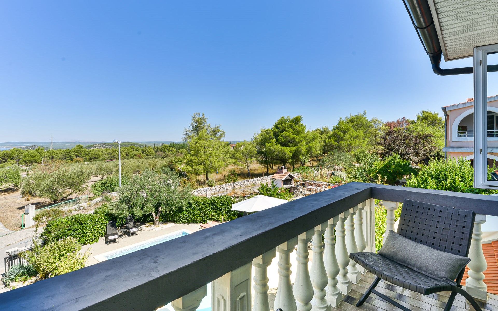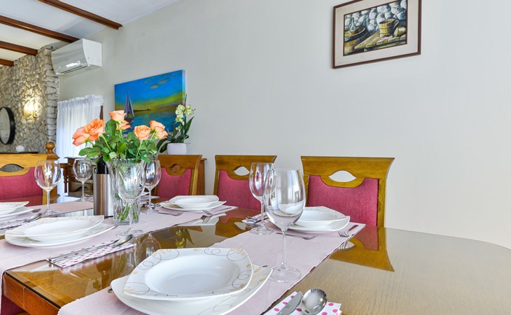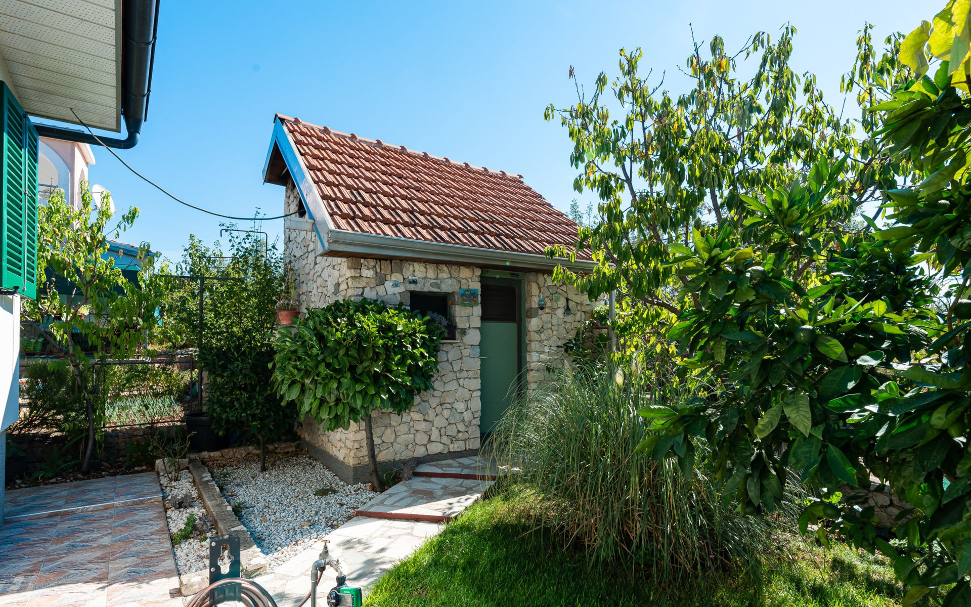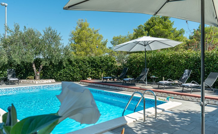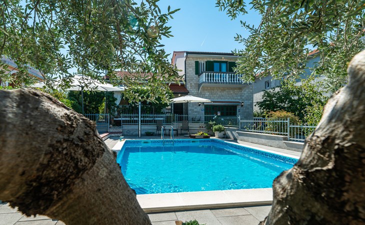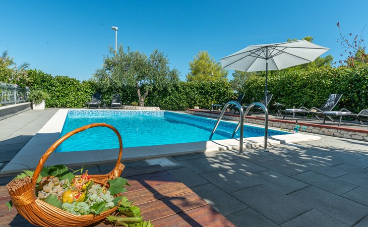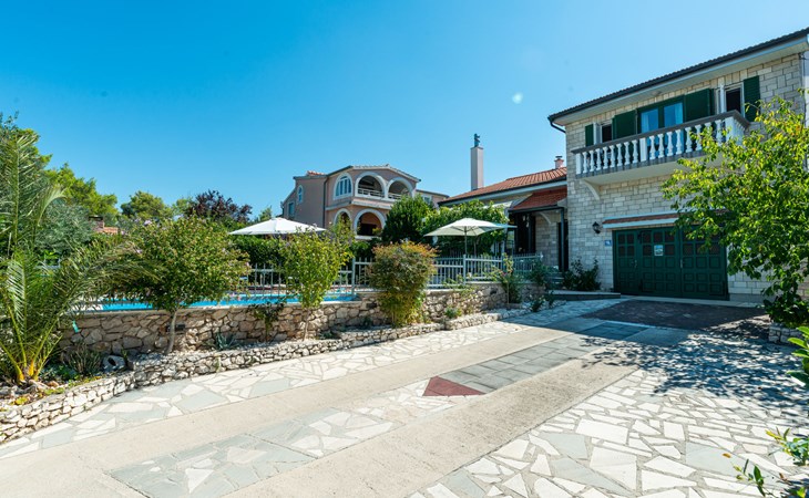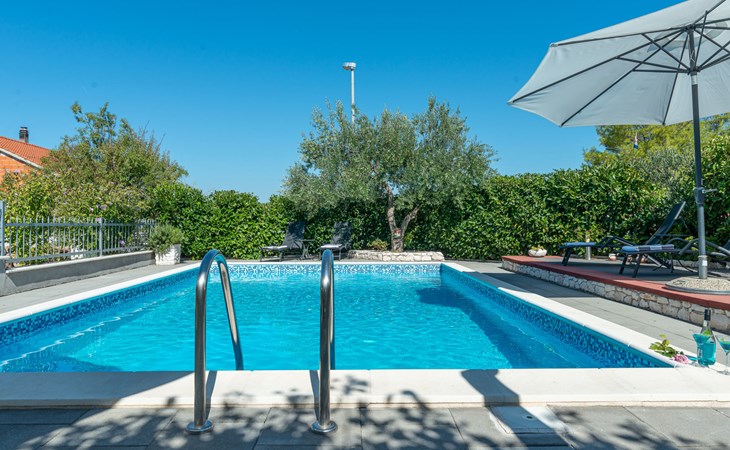 Einfamilienhaus "Otavia", auf 2 Stockwerken. Im Weiler Slavice, 2.5 km vom Zentrum von Bilice, 5.5 km vom Zentrum von Šibenik, sonnige Lage, 5.5 km vom Meer, 2 km vom See. Zur Alleinbenutzung: Grundstück 600 m2 (eingezäunt), Garten mit Rasen und Bäumen, Schwimmbad eckig (7 x 4 m, 31 m2, 150 cm tief, saisonale Verfügbarkeit: 15.Mai. - 30.Sep.). Aussendusche, Terrasse (7 m2), Gartenmöbel, Grill. Im Hause: Internetzugang, Waschmaschine. Parkplatz (für 2 Autos) beim Haus auf dem Grundstück. Einkaufsgeschäft 1.5 km, Restaurant 3.5 km, Bushaltestelle 1.5 km, Kieselstrand 6 km, Badesee 2 km. Nahe gelegene Sehenswürdigkeiten: NP Krka 10 km. Bekannte Seen in der Umgebung sind gut erreichbar: Prokljansko jezero 2 km.