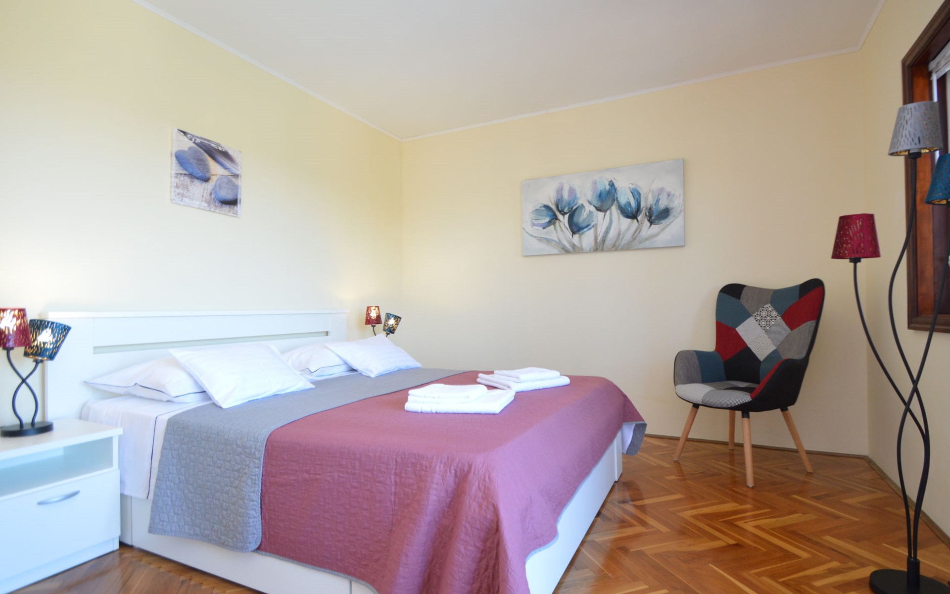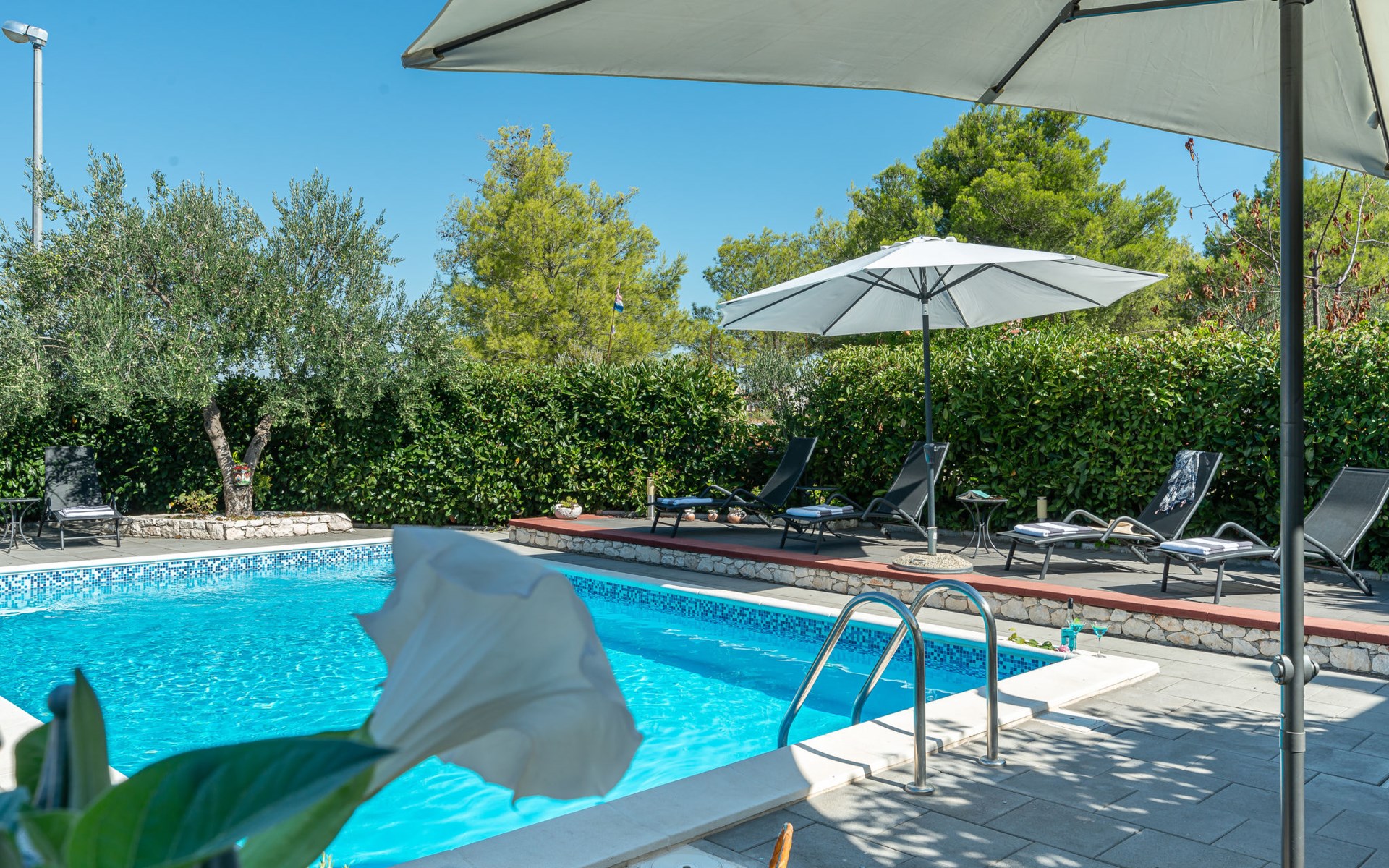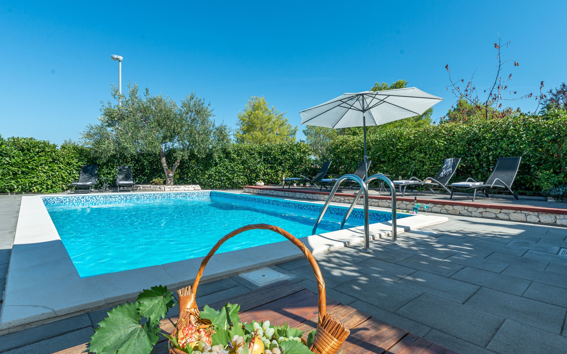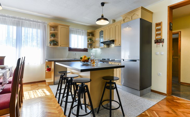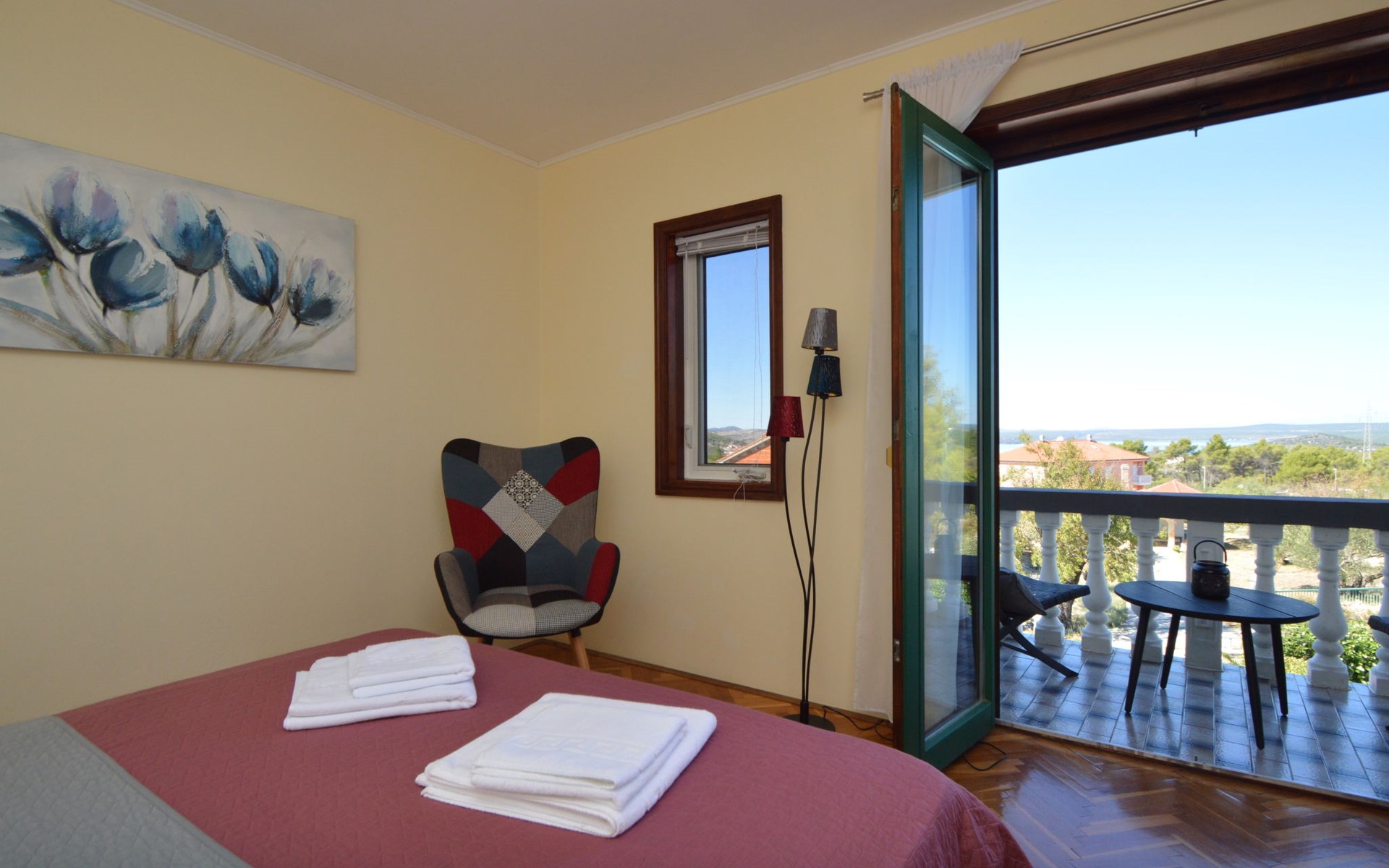 Einfamilienhaus "Otavia", auf 2 Stockwerken. Im Weiler Slavice, 2.5 km vom Zentrum von Bilice, 5.5 km vom Zentrum von Šibenik, sonnige Lage, 5.5 km vom Meer, 2 km vom See. Zur Alleinbenutzung: Grundstück 600 m2 (eingezäunt), Garten mit Rasen und Bäumen, Schwimmbad eckig (7 x 4 m, 31 m2, 150 cm tief, saisonale Verfügbarkeit: 15.Mai. - 30.Sep.). Aussendusche, Terrasse (7 m2), Gartenmöbel, Grill. Im Hause: Internetzugang, Waschmaschine. Parkplatz (für 2 Autos) beim Haus auf dem Grundstück. Einkaufsgeschäft 1.5 km, Restaurant 3.5 km, Bushaltestelle 1.5 km, Kieselstrand 6 km, Badesee 2 km. Nahe gelegene Sehenswürdigkeiten: NP Krka 10 km. Bekannte Seen in der Umgebung sind gut erreichbar: Prokljansko jezero 2 km.