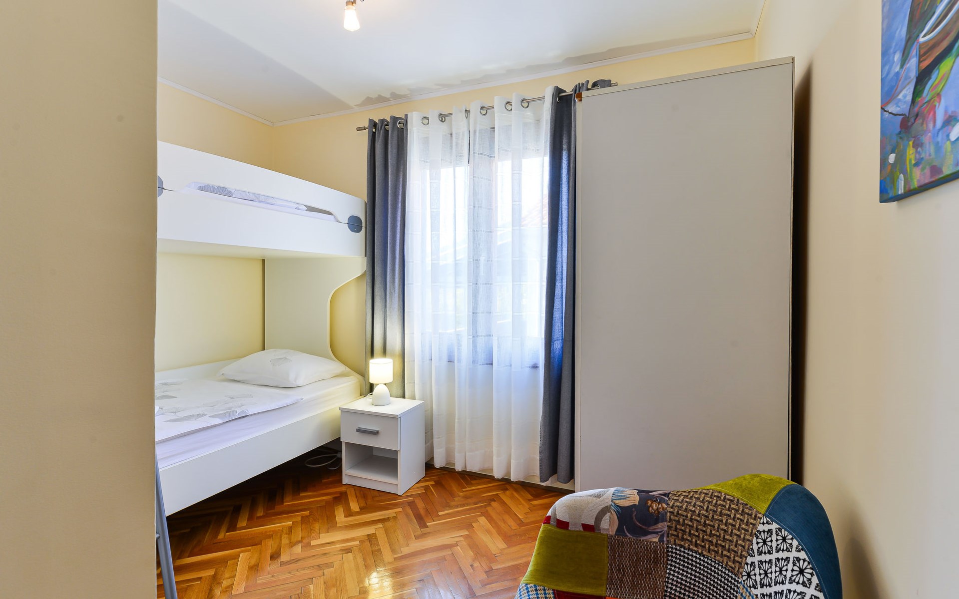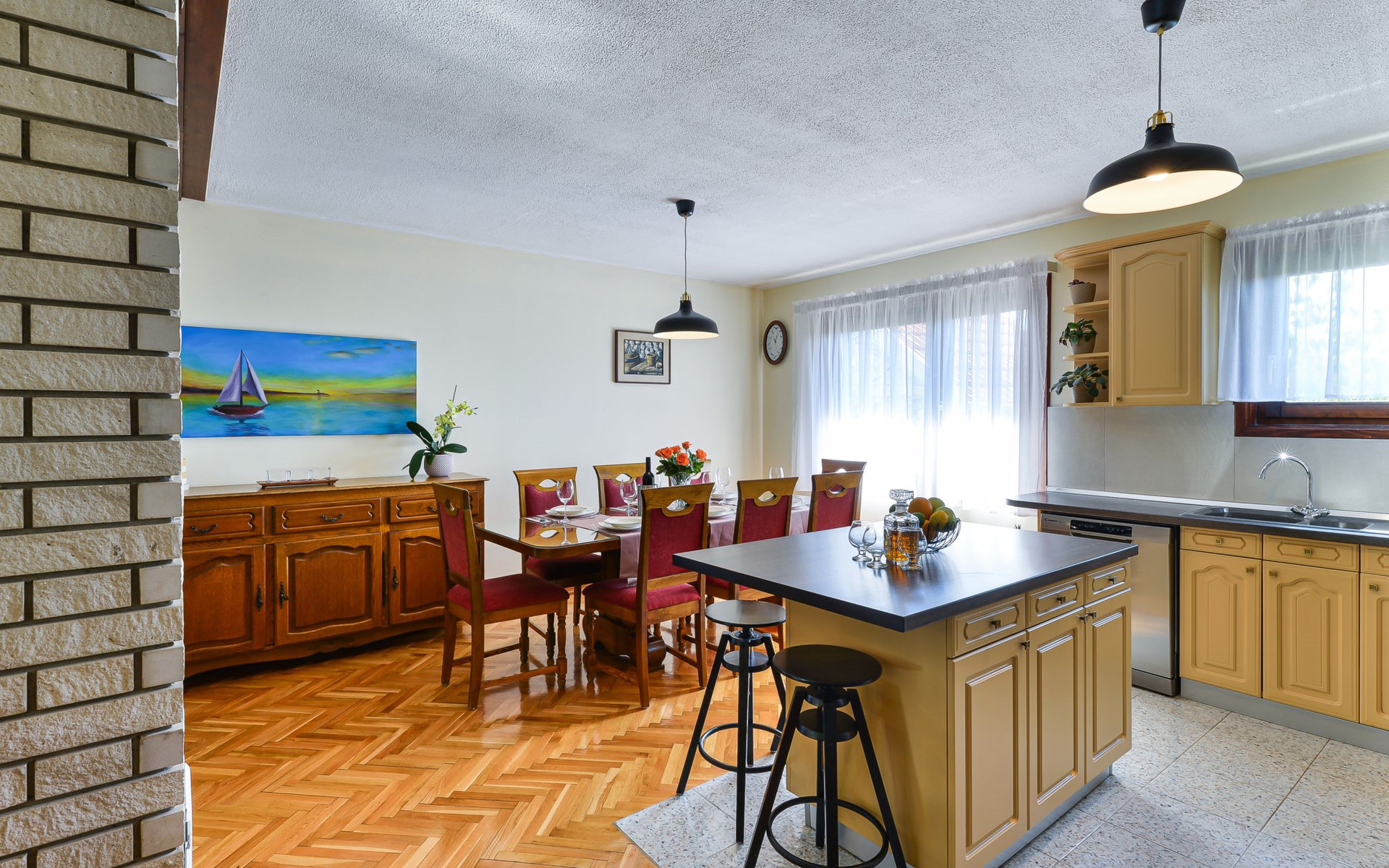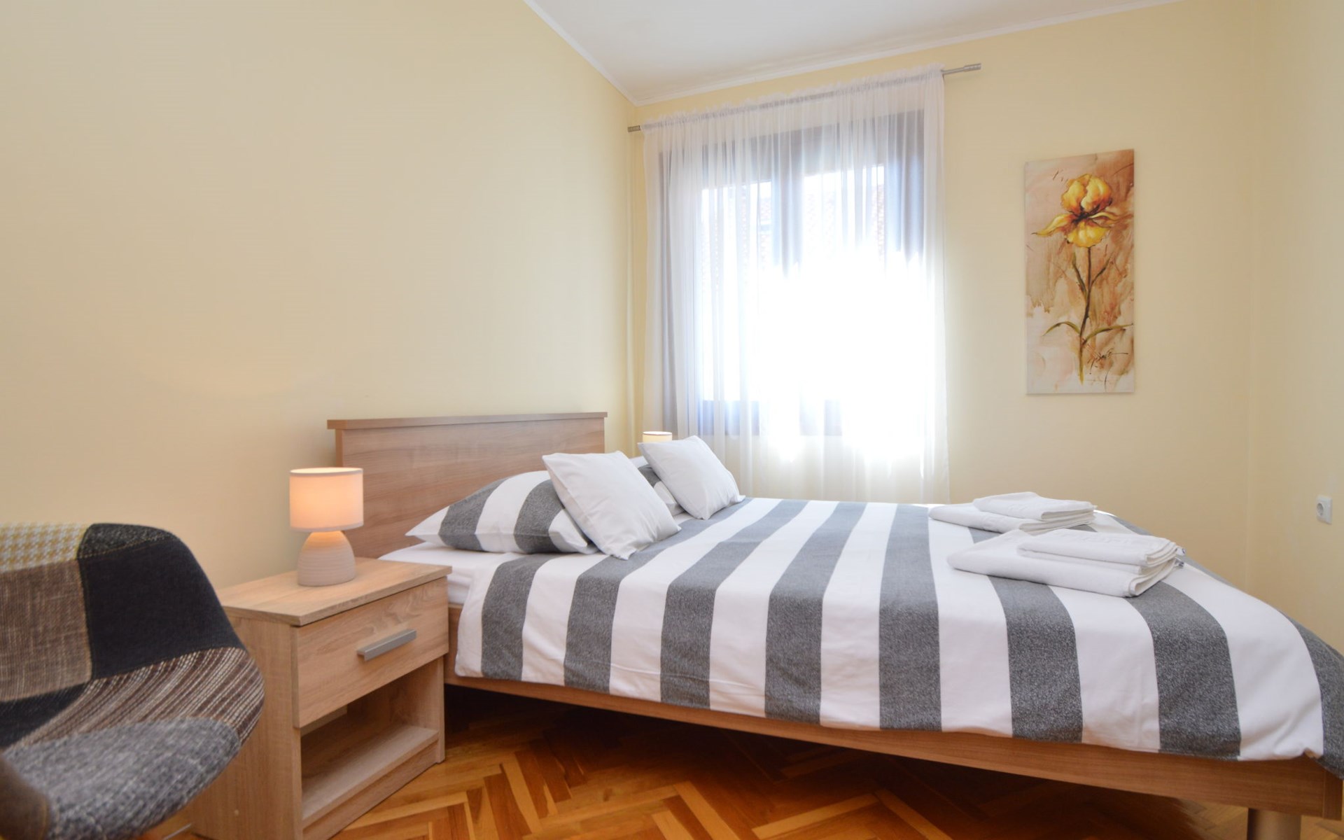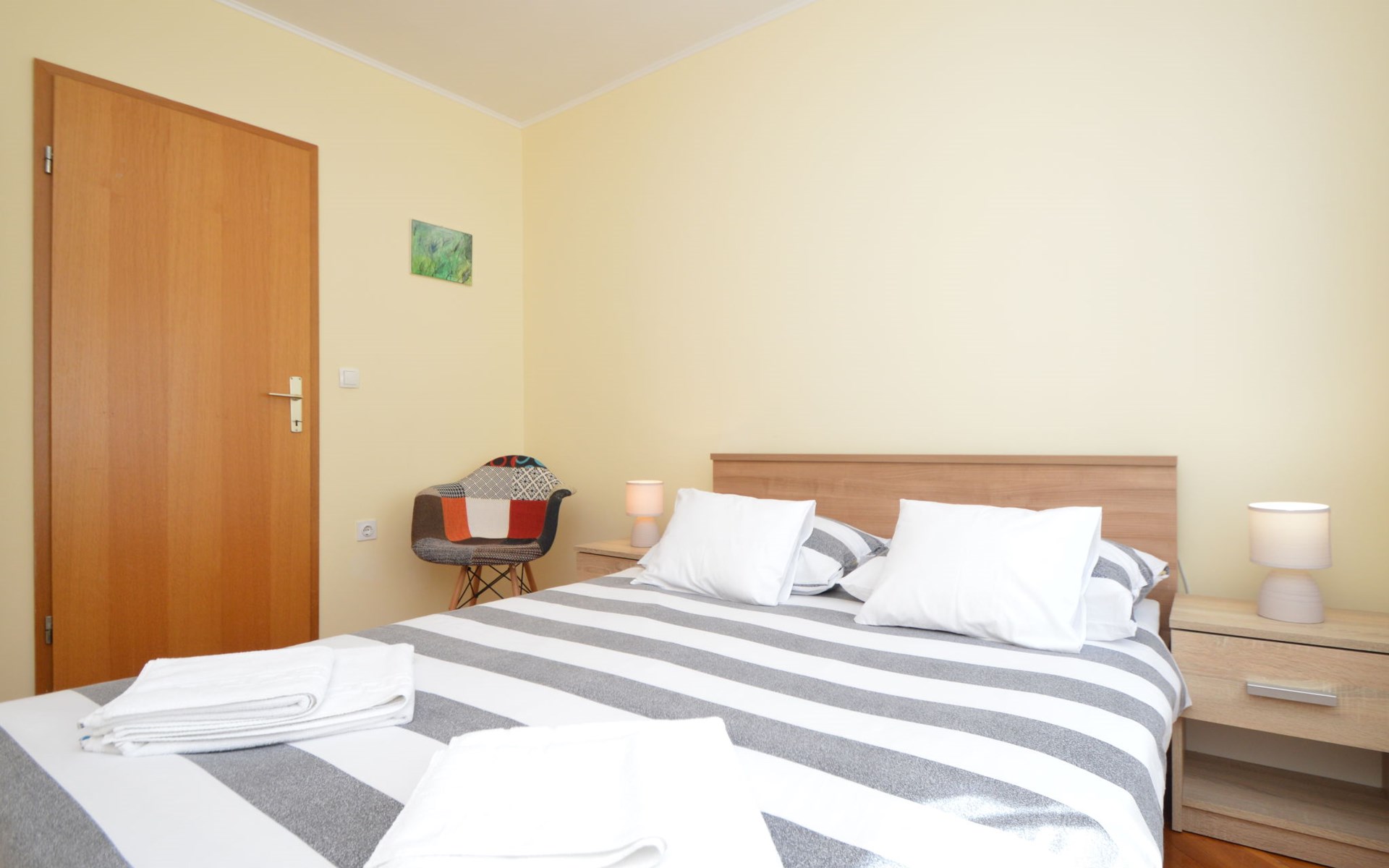Einfamilienhaus "Otavia", auf 2 Stockwerken. Im Weiler Slavice, 2.5 km vom Zentrum von Bilice, 5.5 km vom Zentrum von Šibenik, sonnige Lage, 5.5 km vom Meer, 2 km vom See. Zur Alleinbenutzung: Grundstück 600 m2 (eingezäunt), Garten mit Rasen und Bäumen, Schwimmbad eckig (7 x 4 m, 31 m2, 150 cm tief, saisonale Verfügbarkeit: 15.Mai. - 30.Sep.). Aussendusche, Terrasse (7 m2), Gartenmöbel, Grill. Im Hause: Internetzugang, Waschmaschine. Parkplatz (für 2 Autos) beim Haus auf dem Grundstück. Einkaufsgeschäft 1.5 km, Restaurant 3.5 km, Bushaltestelle 1.5 km, Kieselstrand 6 km, Badesee 2 km. Nahe gelegene Sehenswürdigkeiten: NP Krka 10 km. Bekannte Seen in der Umgebung sind gut erreichbar: Prokljansko jezero 2 km.