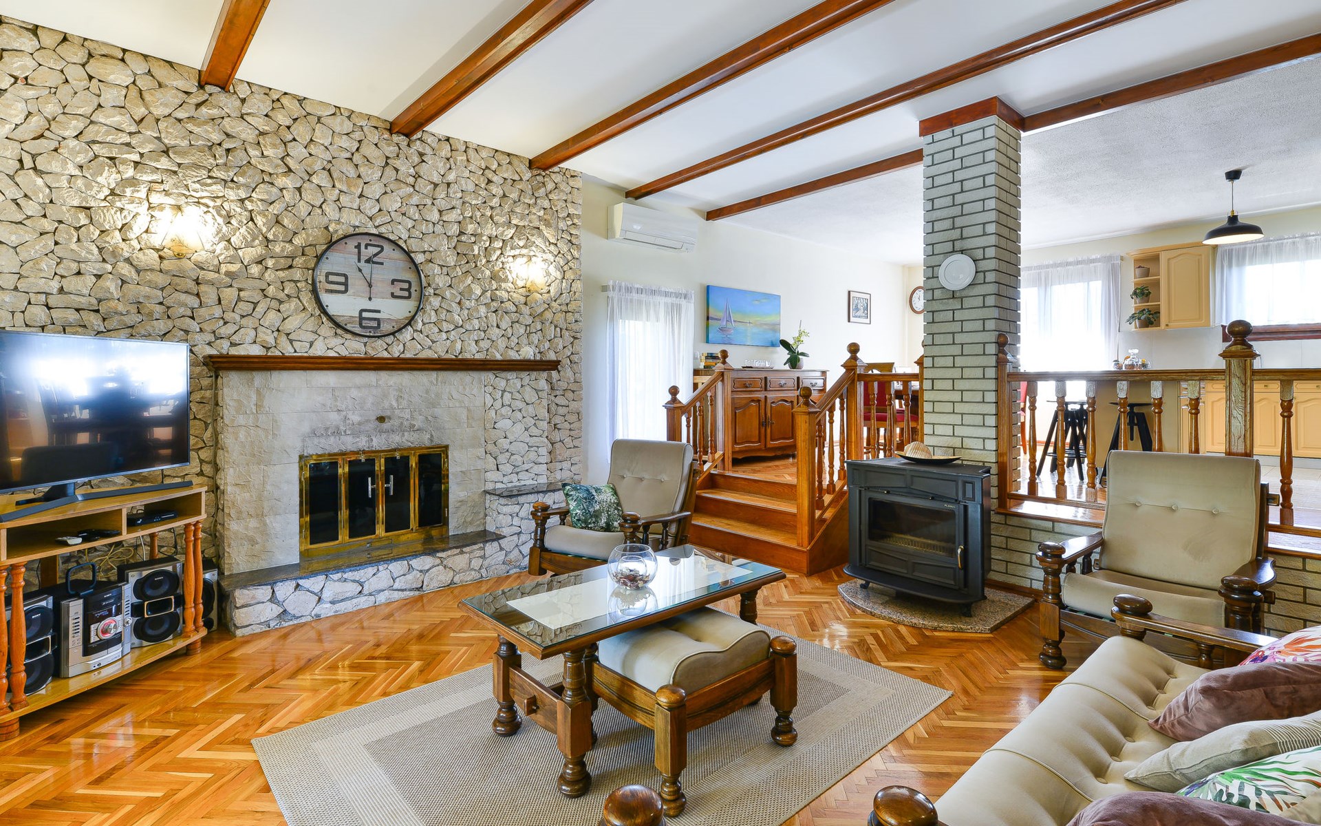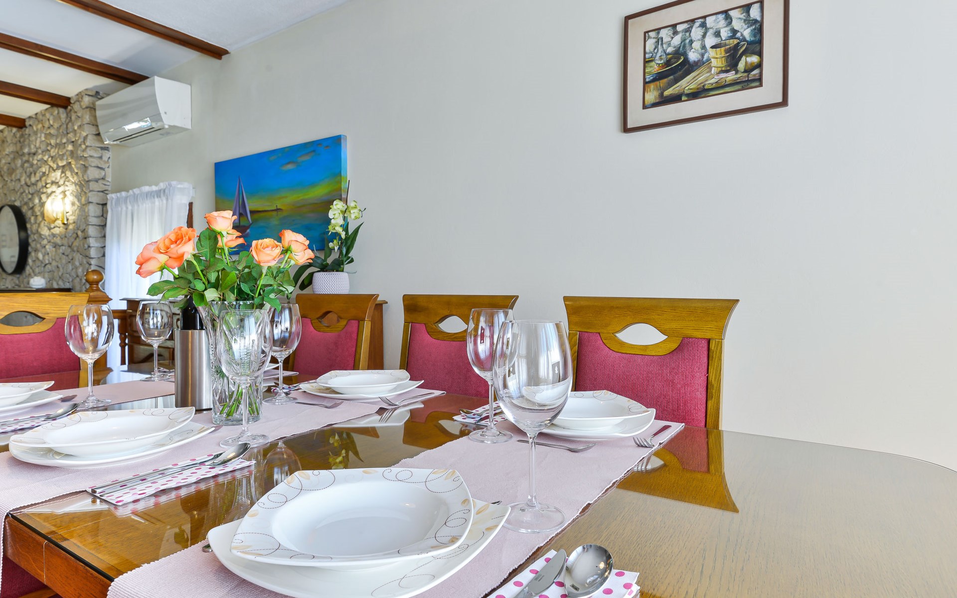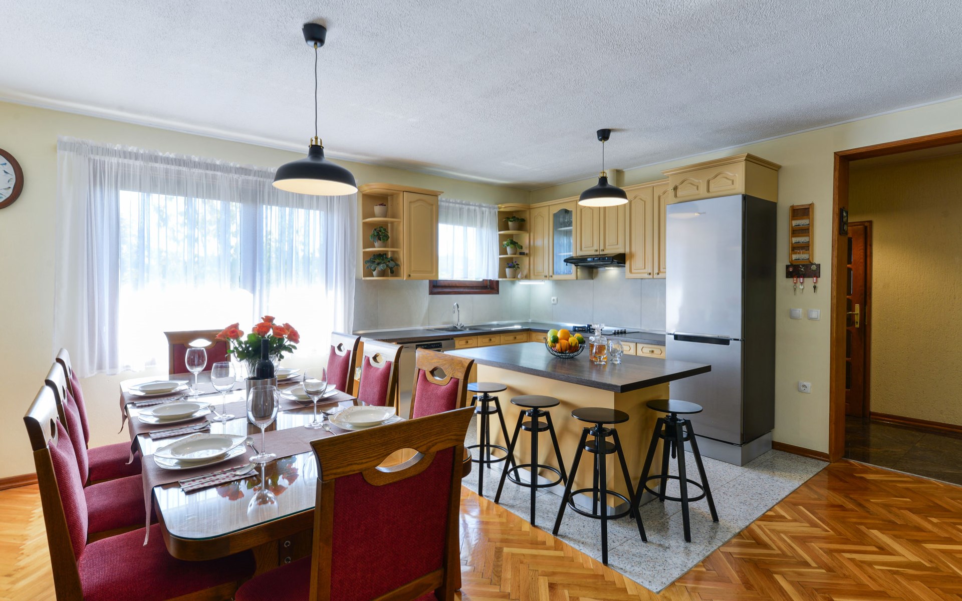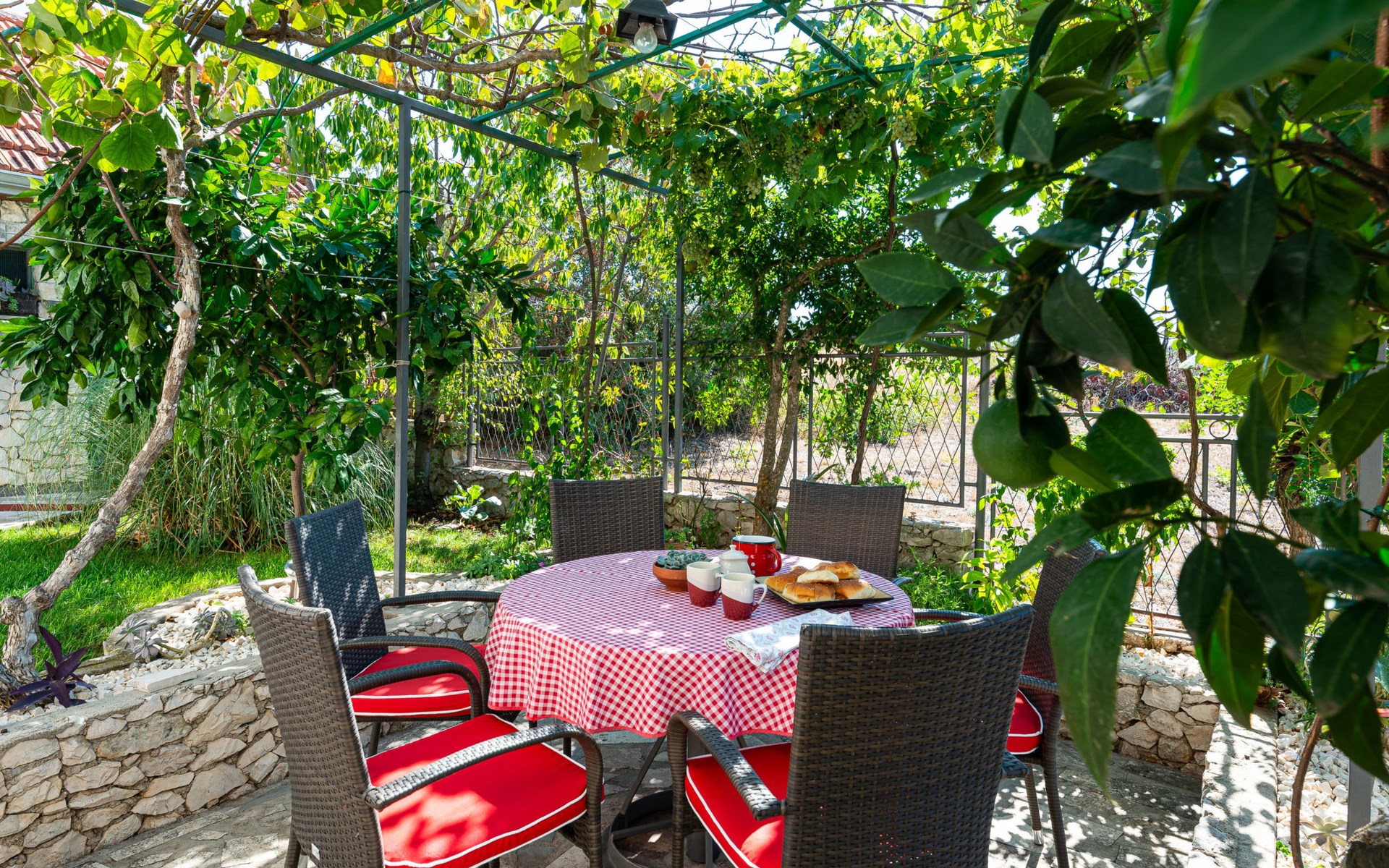Einfamilienhaus "Otavia", auf 2 Stockwerken. Im Weiler Slavice, 2.5 km vom Zentrum von Bilice, 5.5 km vom Zentrum von Šibenik, sonnige Lage, 5.5 km vom Meer, 2 km vom See. Zur Alleinbenutzung: Grundstück 600 m2 (eingezäunt), Garten mit Rasen und Bäumen, Schwimmbad eckig (7 x 4 m, 31 m2, 150 cm tief, saisonale Verfügbarkeit: 15.Mai. - 30.Sep.). Aussendusche, Terrasse (7 m2), Gartenmöbel, Grill. Im Hause: Internetzugang, Waschmaschine. Parkplatz (für 2 Autos) beim Haus auf dem Grundstück. Einkaufsgeschäft 1.5 km, Restaurant 3.5 km, Bushaltestelle 1.5 km, Kieselstrand 6 km, Badesee 2 km. Nahe gelegene Sehenswürdigkeiten: NP Krka 10 km. Bekannte Seen in der Umgebung sind gut erreichbar: Prokljansko jezero 2 km.