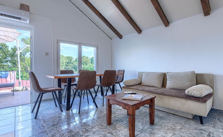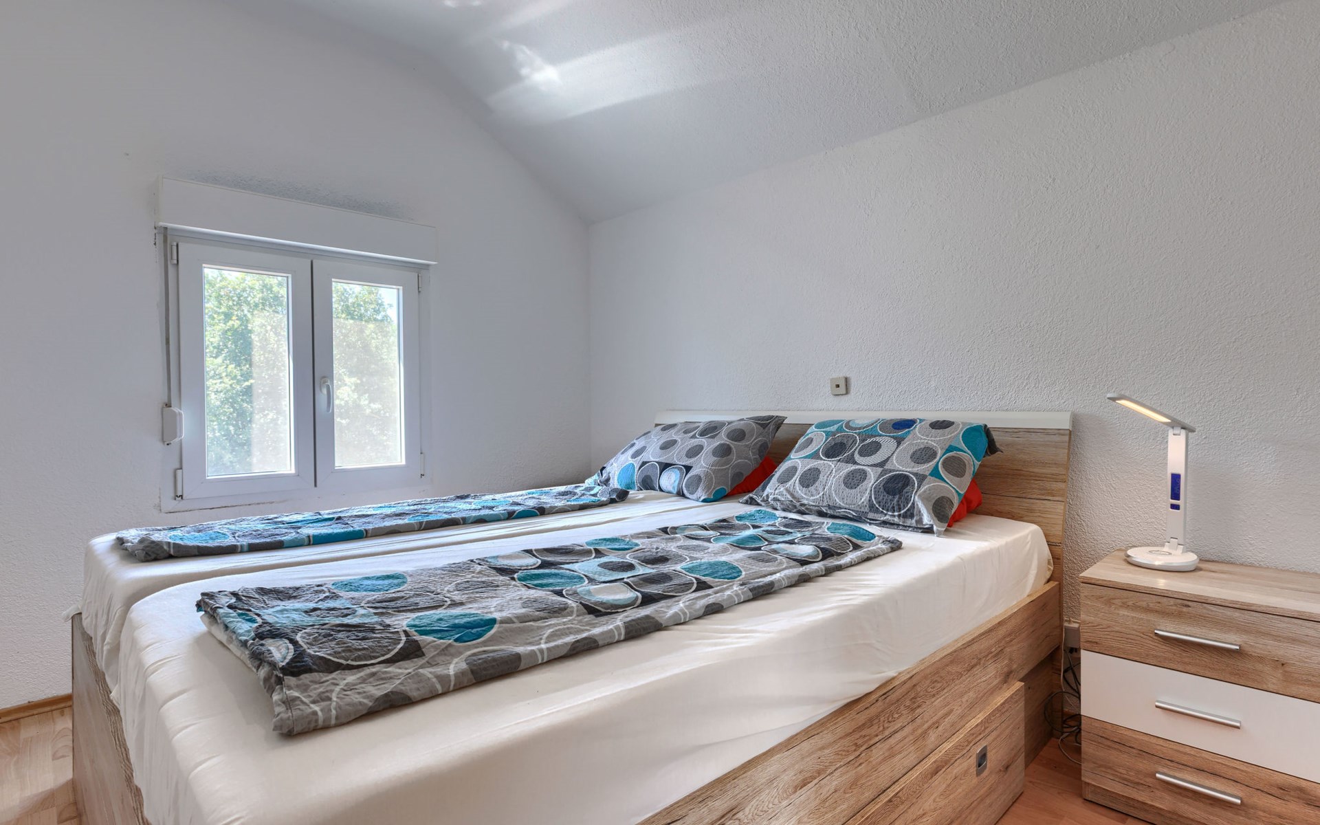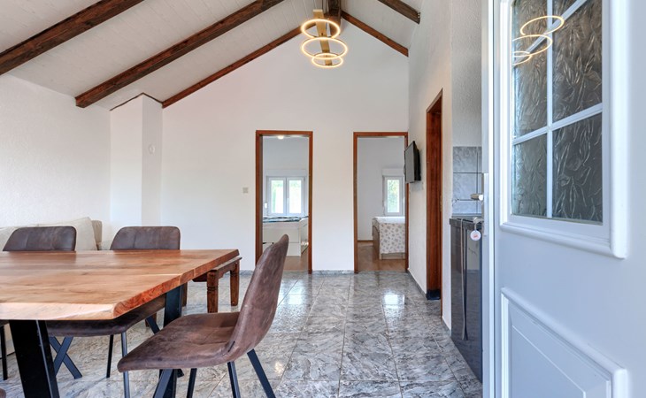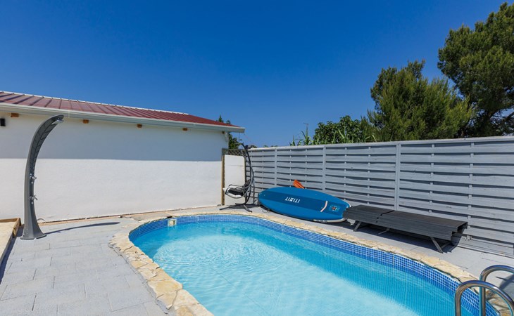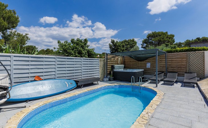 Zweifamilienhaus "Sabo". 1.7 km vom Zentrum von Peroj, 3 km vom Zentrum von Fažana, 8 km vom Zentrum von Vodnjan, sonnige Lage, 300 m vom Meer, 300 m vom Strand. Zur Mitbenutzung: Grundstück 150 m2 (eingezäunt), Schwimmbad eckig (5 x 3 m, 140 cm tief, saisonale Verfügbarkeit: 01.Apr. - 01.Nov.) mit Innentreppe. Aussendusche. Im Hause: Internetzugang. Zufahrt (500 m Naturweg). Parkplatz beim Haus auf dem Grundstück. Einkaufsgeschäft 1 km, Supermarkt 3 km, Restaurant 1.5 km, Bushaltestelle 900 m, Kieselstrand 1 km, Felsstrand 300 m. Bitte beachten: Der Besitzer wohnt auf dem gleichen Grundstück. Eigentümer hat einen Hund.