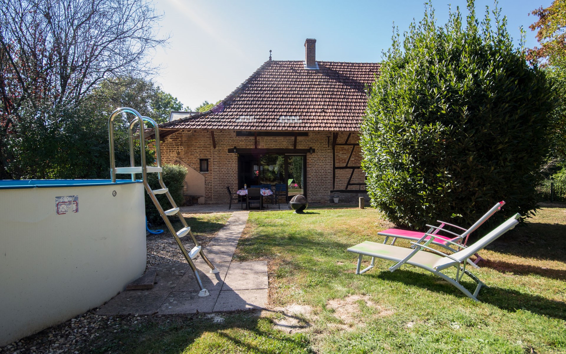Schöner, gemütlicher Landsitz "Alexandre", Baujahr 1892, umgeben von Wiesen und Feldern. 800 m vom Zentrum von La Chapelle-Saint Sauveur, 7 km vom Zentrum von Pierre de Bresse, ausserhalb des Ortes, 40 km vom Zentrum von Beaune, alleinstehende Lage, in einer Sackgasse. Zur Alleinbenutzung: Grundstück 1 ha mit Pflanzen und Bäumen, Naturgarten, Wiese, Teich, Aufstellpool (4.50 m Durchmesser, 110 cm tief, saisonale Verfügbarkeit: 01.Jun. - 30.Sep.). Parkplatz auf dem Grundstück. Einkaufsgeschäft 800 m, Supermarkt 7 km, Bushaltestelle 750 m, Freibad 1 km. Angelmöglichkeit 1 km. Ein Teil des Hauses ist geschlossen und nicht bewohnt.
