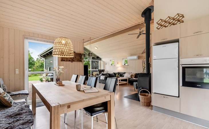 Einfamilienhaus, Baujahr 2011. Zur Alleinbenutzung: naturbelassenes Grundstück 1'000 m2. Im Hause: Sauna, Waschmaschine, Wäschetrockner. Parkplatz beim Haus. Carport. Lebensmittelgeschäft 5 km. Golfplatz 14 km. Der Besitzer akzeptiert keine Jugendgruppen.