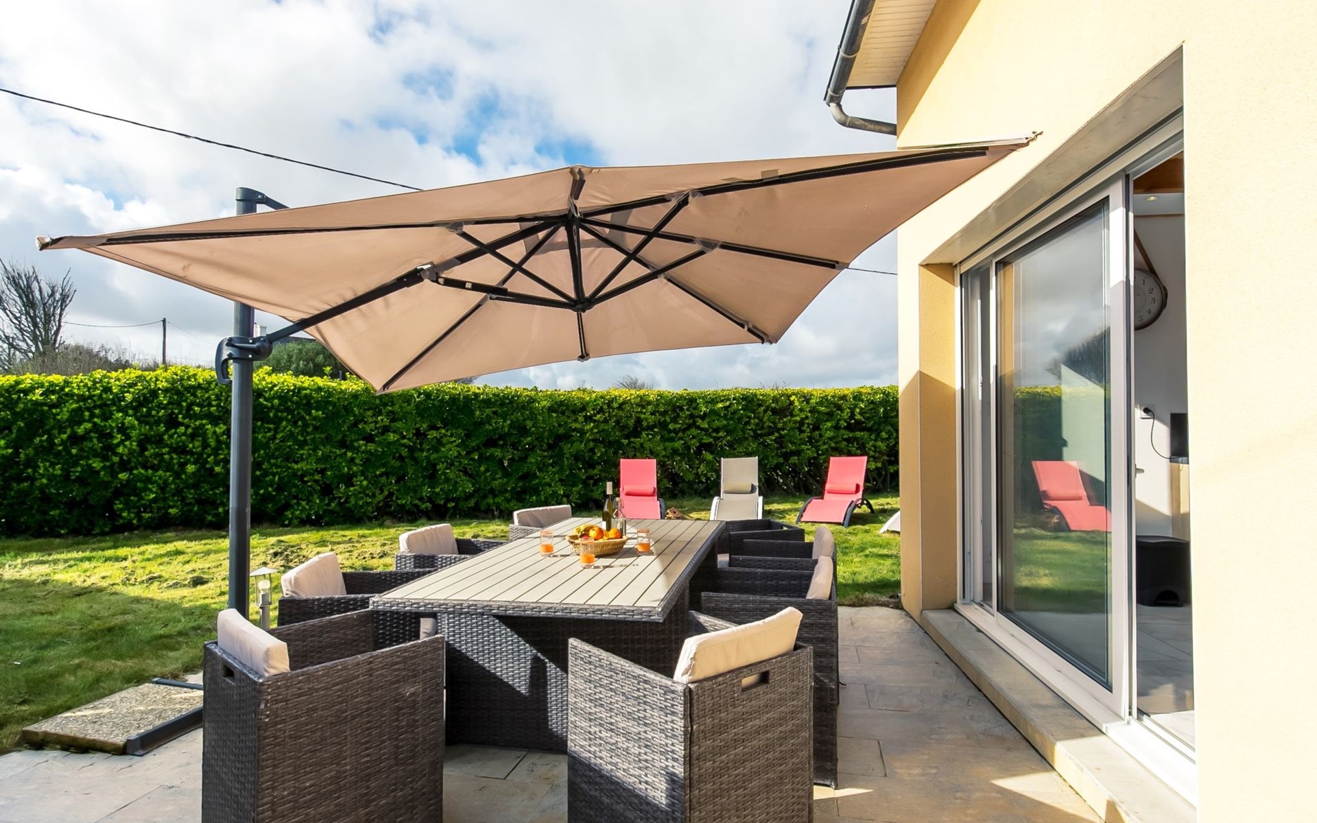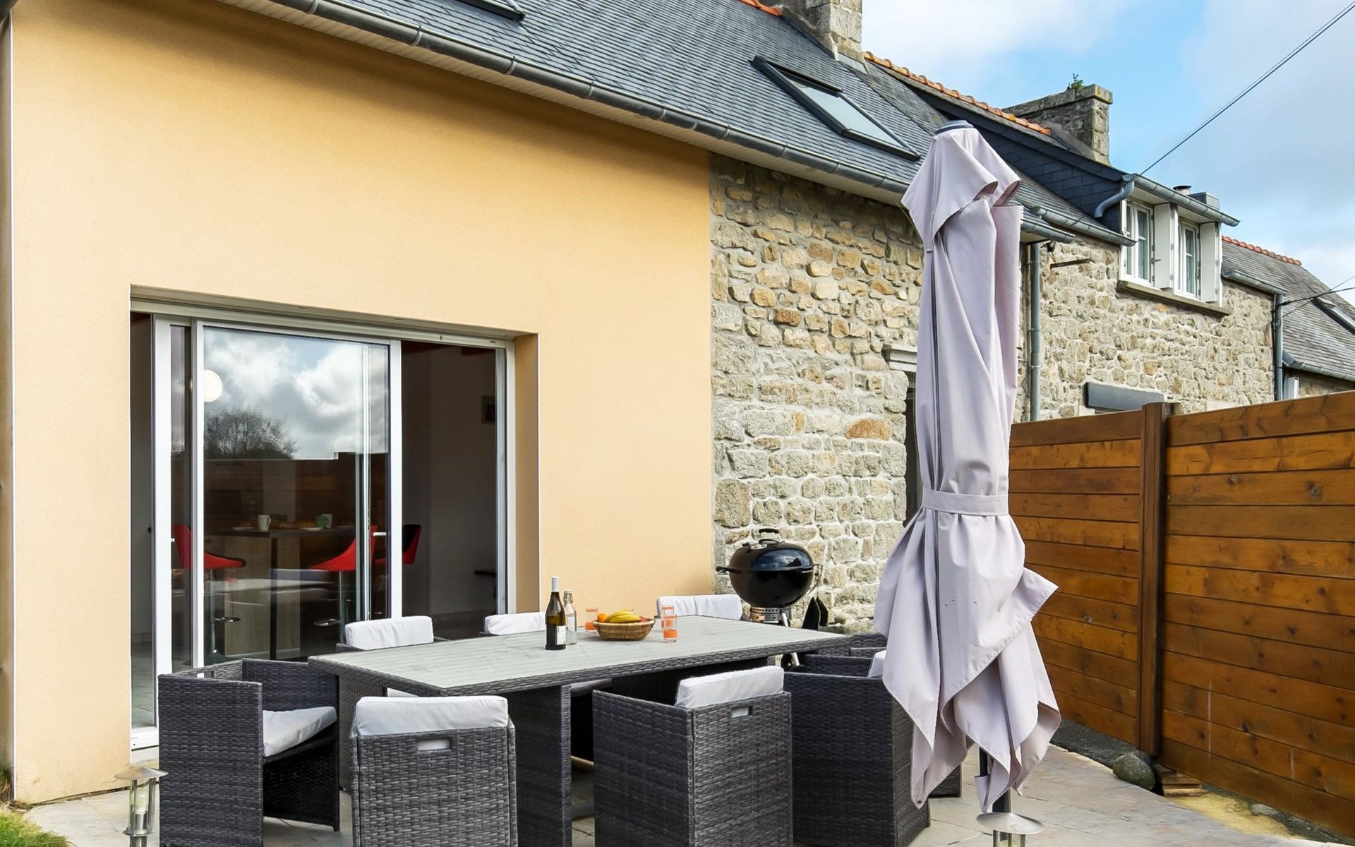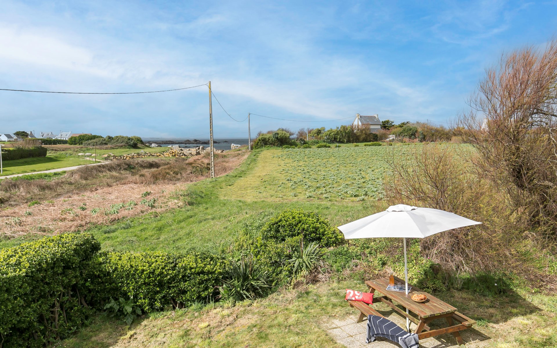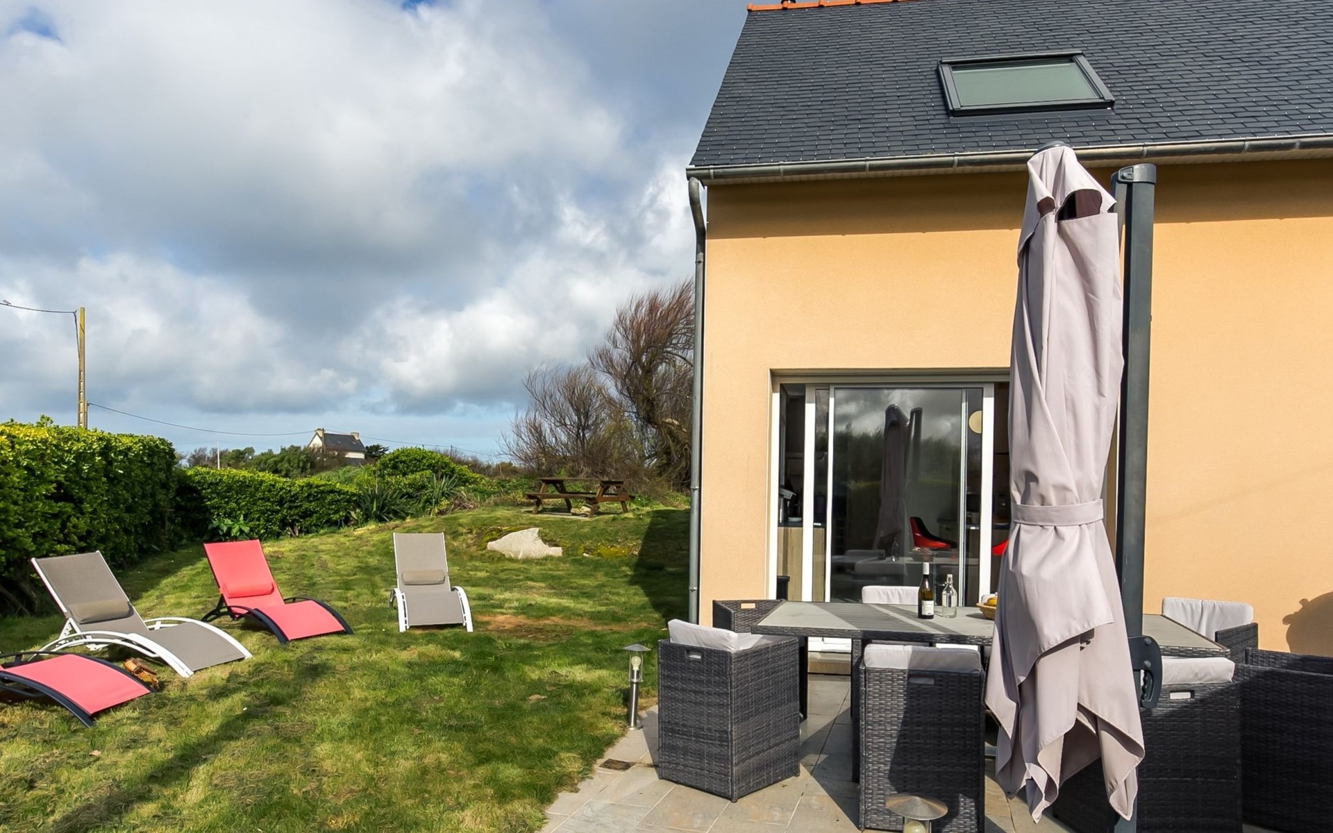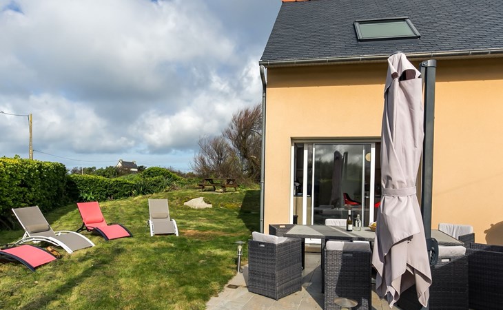 Reihenhaus "Ty Frouden", auf 2 Stockwerken. 3 km vom Zentrum von Plouescat, 18 km vom Zentrum von Saint-Pol-de-Lèon, ruhige Lage, 150 m vom Meer, vom Strand. Zur Alleinbenutzung: Grundstück, gepflegter Garten 800 m2 mit Pflanzen, Parkplatz (für 2 Autos) auf dem Grundstück. Einkaufsgeschäft 3 km, Lebensmittelgeschäft 3 km, Supermarkt 3.3 km, Restaurant 1.2 km, Bar 1.2 km, Bäckerei 3 km, Bushaltestelle 3.2 km, Sandstrand "Pors Meur" 1.9 km, Thermalbad "Thalasso Roscoff" 23 km. Jacht-Hafen 1.5 km, Golfplatz (9 Loch) 5.5 km, Surfschule 1.5 km, Segelschule 1.5 km, Minigolf 2.3 km, Wanderwege ab Haus 100 m. Nahe gelegene Sehenswürdigkeiten: Réserve ornitholigique Dunes de Keremma 9.5 km, Château de Kerjean, Saint Vougay 13 km, Lesneven 18 km, Roscoff, Jardin exotique, Île de Batz 23 km, Meneham, Kerlouan 19 km, Oceanopolis Brest 50 km.