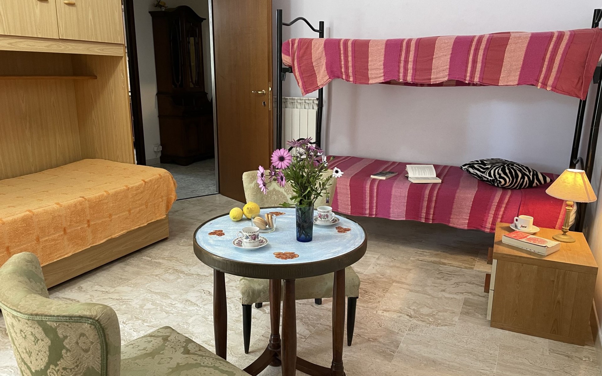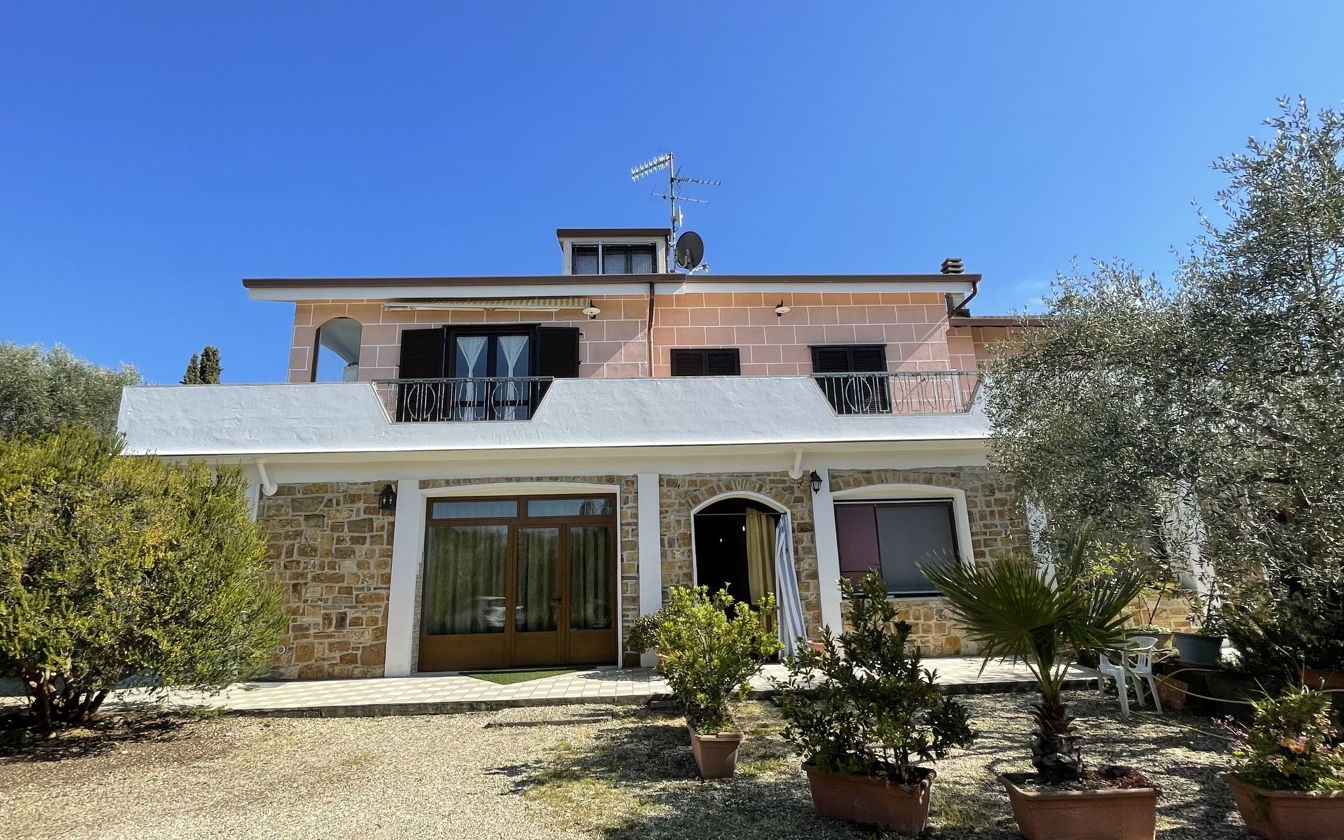 Schönes, freistehendes Mehrfamilienhaus. 4 Wohnungen im Ferienhaus. 1.2 km vom Zentrum von Poggi, am Ortsrand, 4 km vom Zentrum von Imperia, 28 km vom Zentrum von San Remo, in einem Wohnquartier, 3.5 km vom Meer, im Grünen. Zur Mitbenutzung: grosser Garten 5'000 m2 (eingezäunt) mit Pflanzen und Bäumen. Boccia, Sitzplatz, Gartenmöbel. In der Anlage: Tischfussball. Einkaufsgeschäft 1.2 km, Supermarkt 4 km, Bushaltestelle 500 m, Sandstrand "Imperia Borgo Prino" 3.5 km. Der Besitzer akzeptiert keine Jugendgruppen. Ab Hof Verkauf von bäuerlichen Produkten. Bitte beachten: Der Besitzer wohnt im selben Haus.