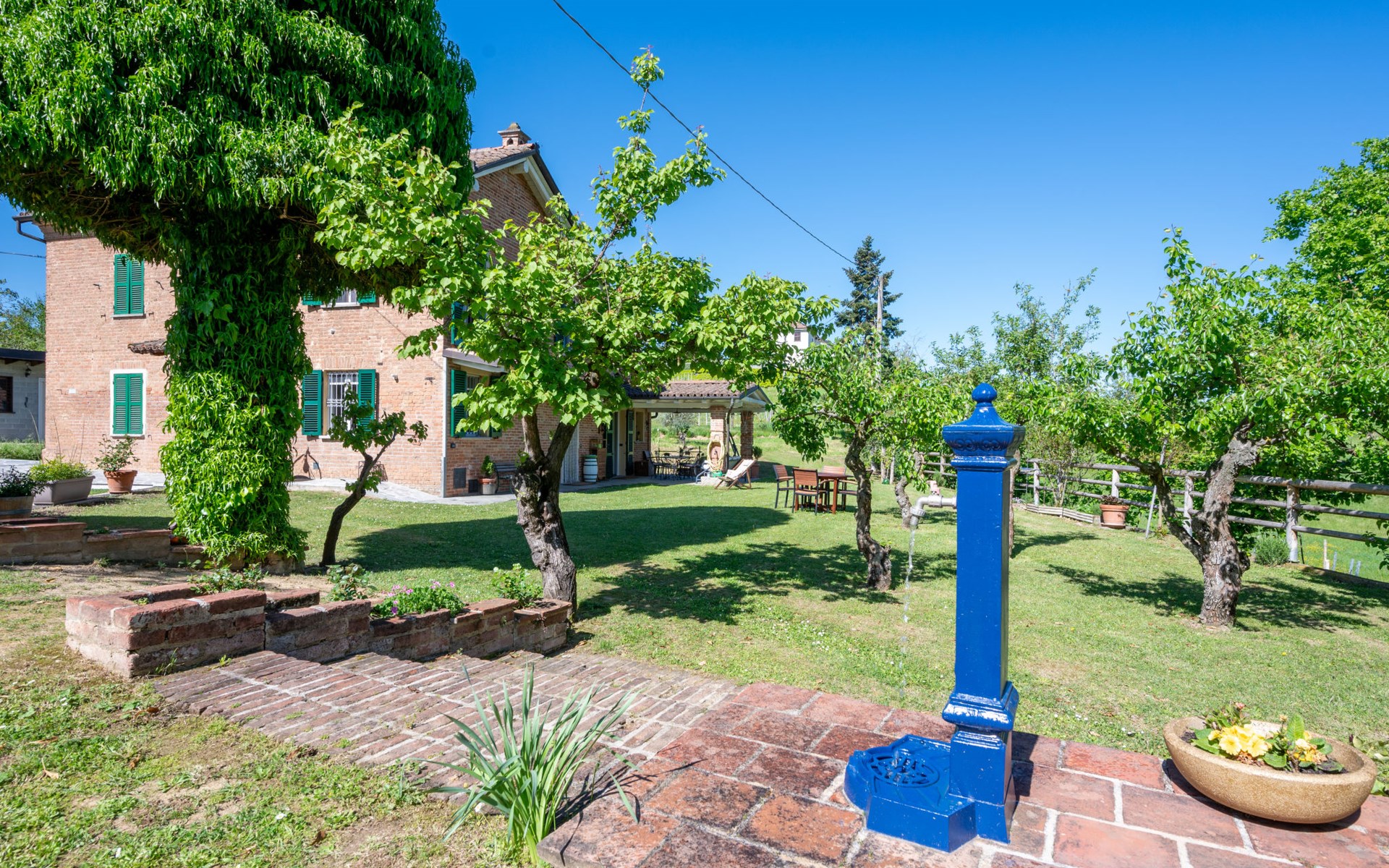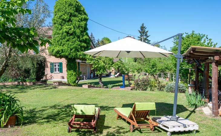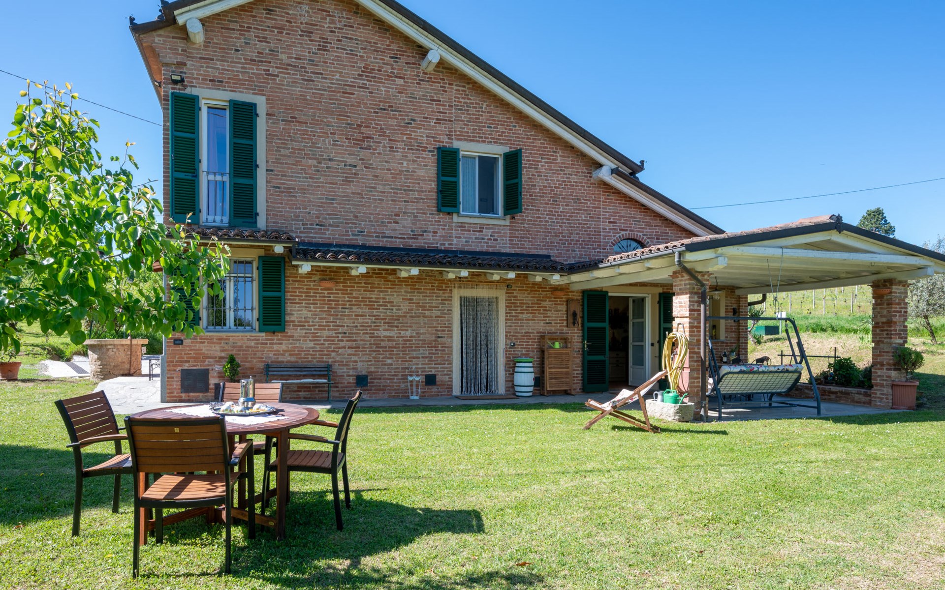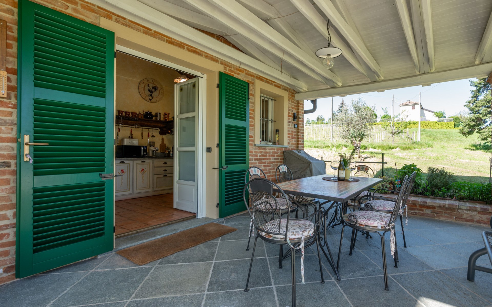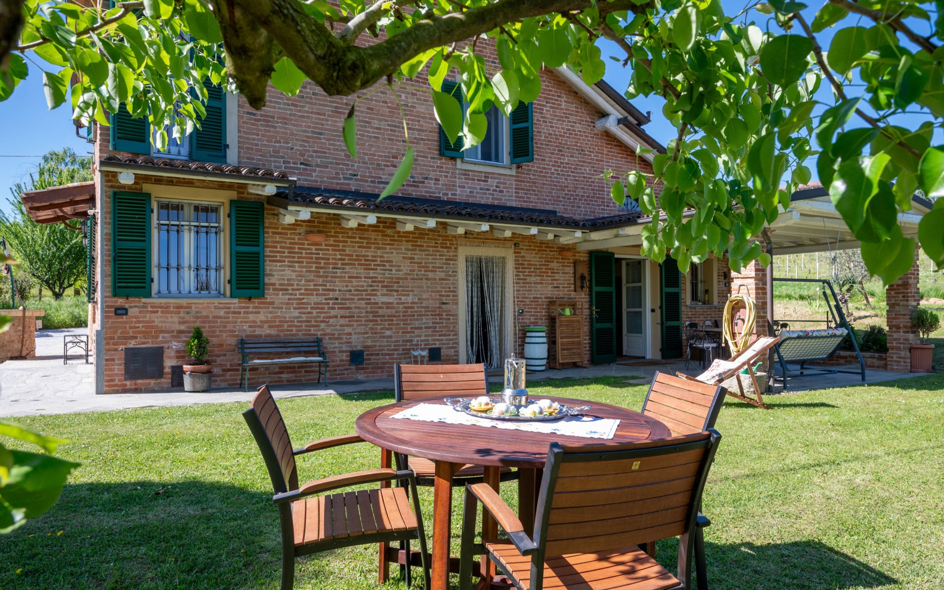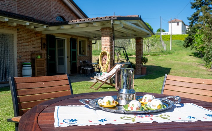 Landhaus "Il Valletto". 1 km vom Zentrum von Mombaruzzo, am Ortsrand, 23 km vom Zentrum von Alessandria, 34 km vom Zentrum von Asti, 80 km vom Meer. Zur Alleinbenutzung: Garten 2'000 m2 (nicht eingezäunt) mit Pflanzen, Wiese, Obstgarten. Sitzplatz, Terrasse (30 m2), Gartenmöbel, Grill, Parkplatz (überdacht) beim Haus auf dem Grundstück. Einkaufsgeschäft 1 km, Supermarkt 9 km, Bushaltestelle 2.5 km, Bahnstation "Alessandria" 23 km.