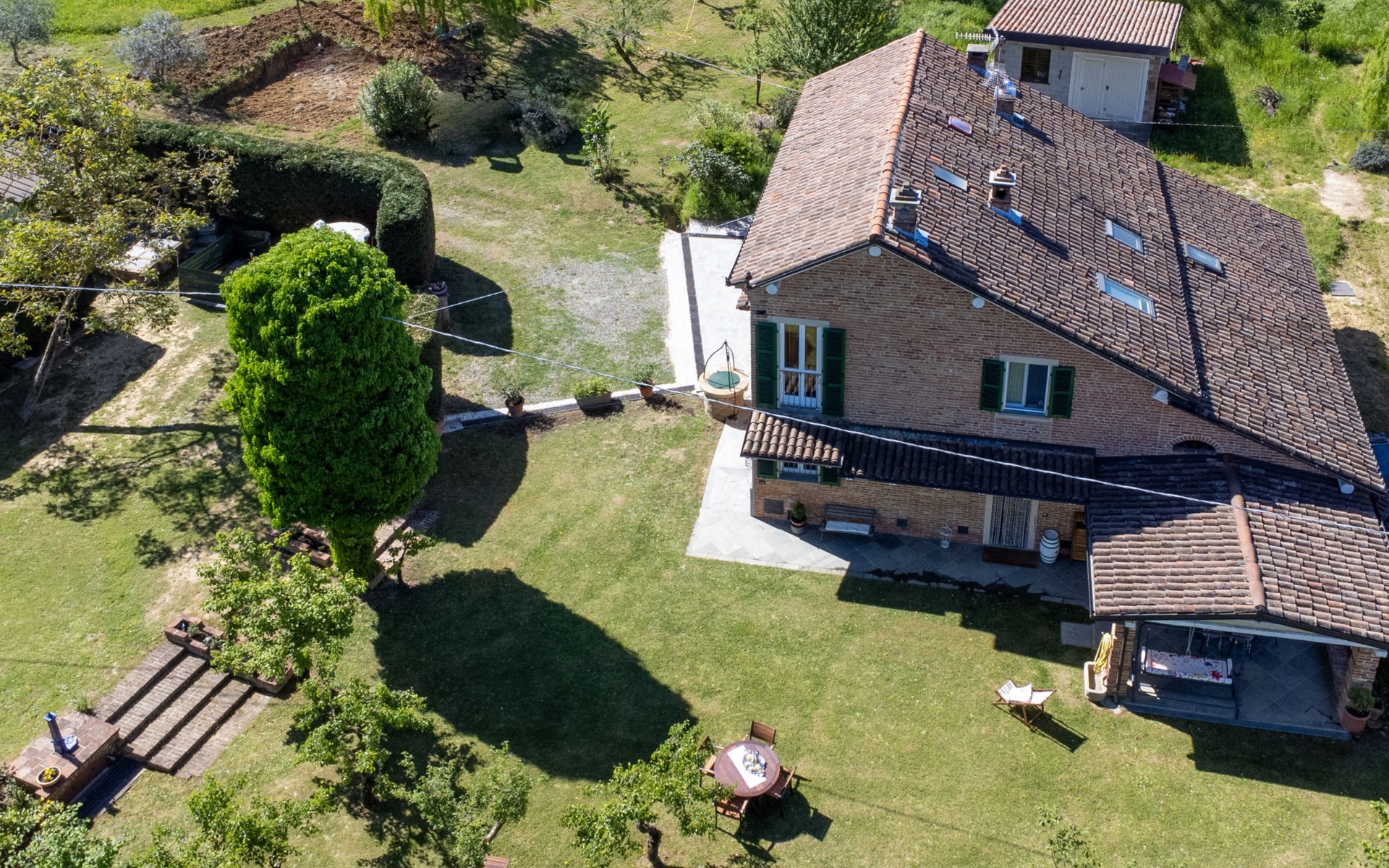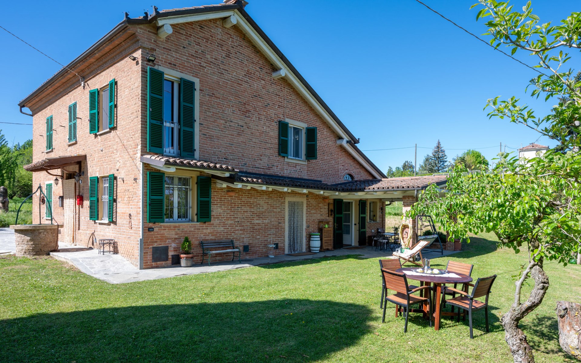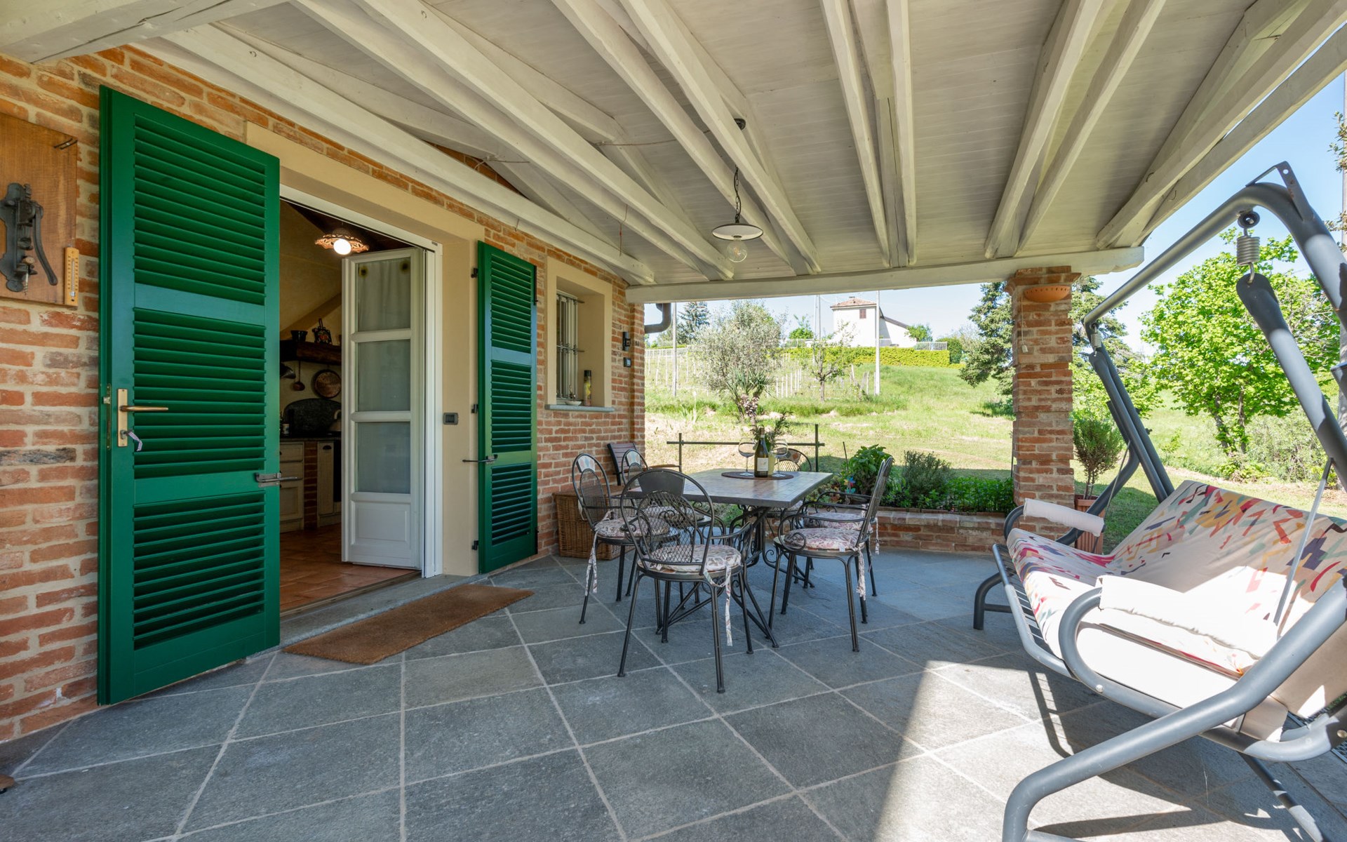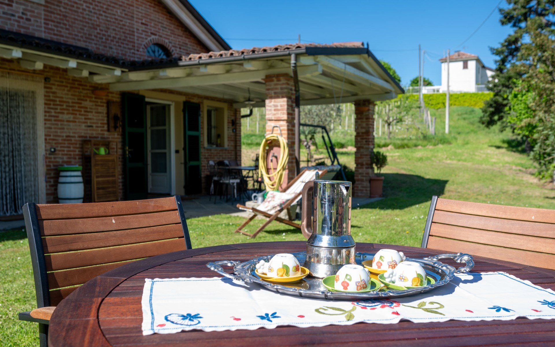Landhaus "Il Valletto". 1 km vom Zentrum von Mombaruzzo, am Ortsrand, 23 km vom Zentrum von Alessandria, 34 km vom Zentrum von Asti, 80 km vom Meer. Zur Alleinbenutzung: Garten 2'000 m2 (nicht eingezäunt) mit Pflanzen, Wiese, Obstgarten. Sitzplatz, Terrasse (30 m2), Gartenmöbel, Grill, Parkplatz (überdacht) beim Haus auf dem Grundstück. Einkaufsgeschäft 1 km, Supermarkt 9 km, Bushaltestelle 2.5 km, Bahnstation "Alessandria" 23 km.