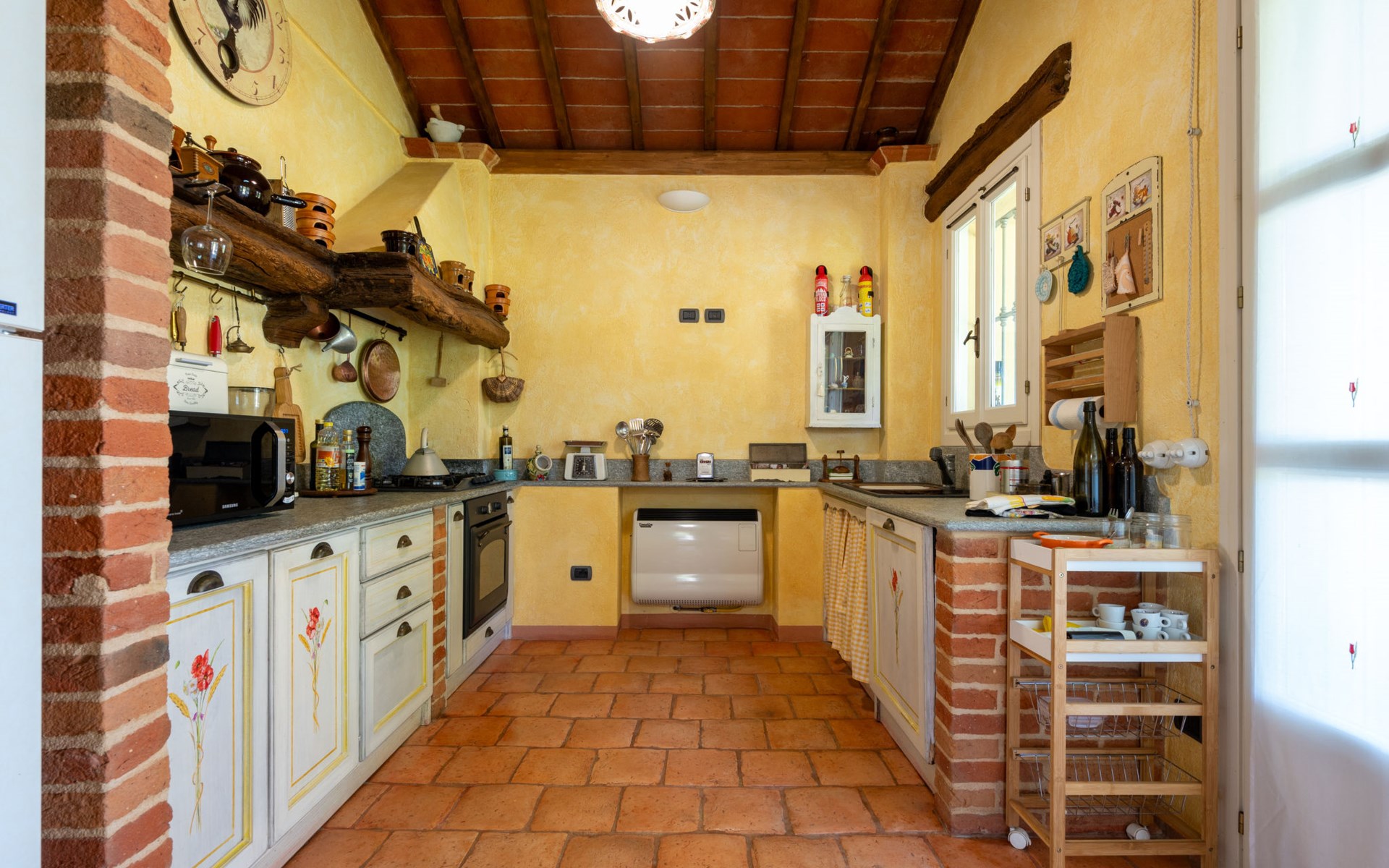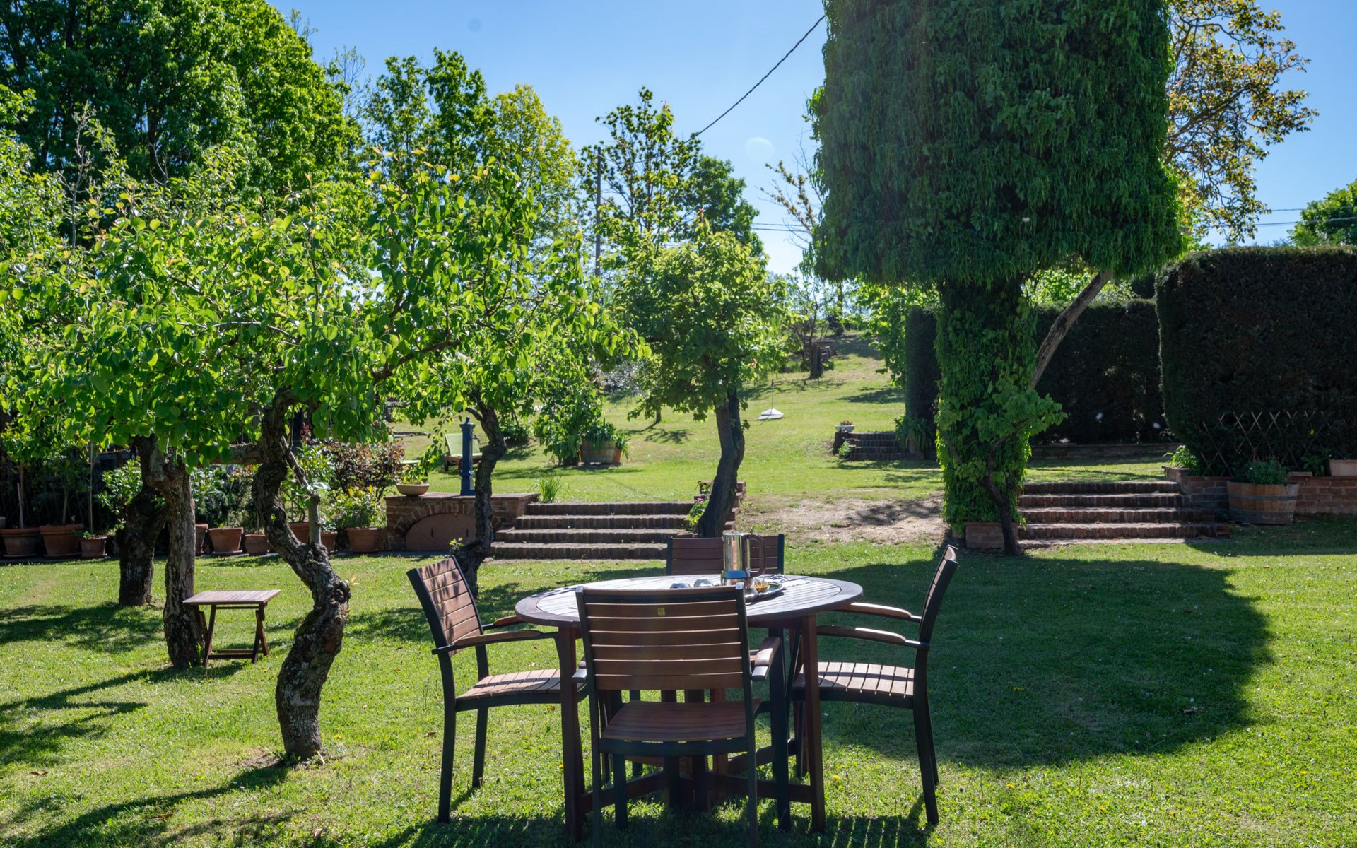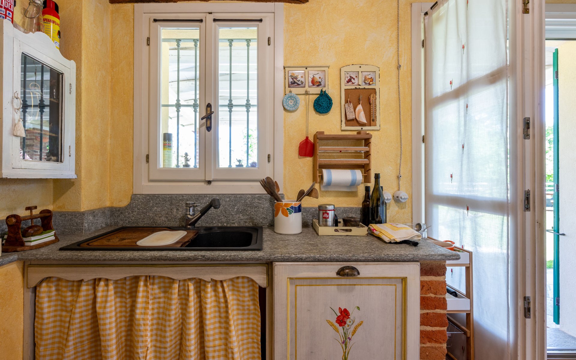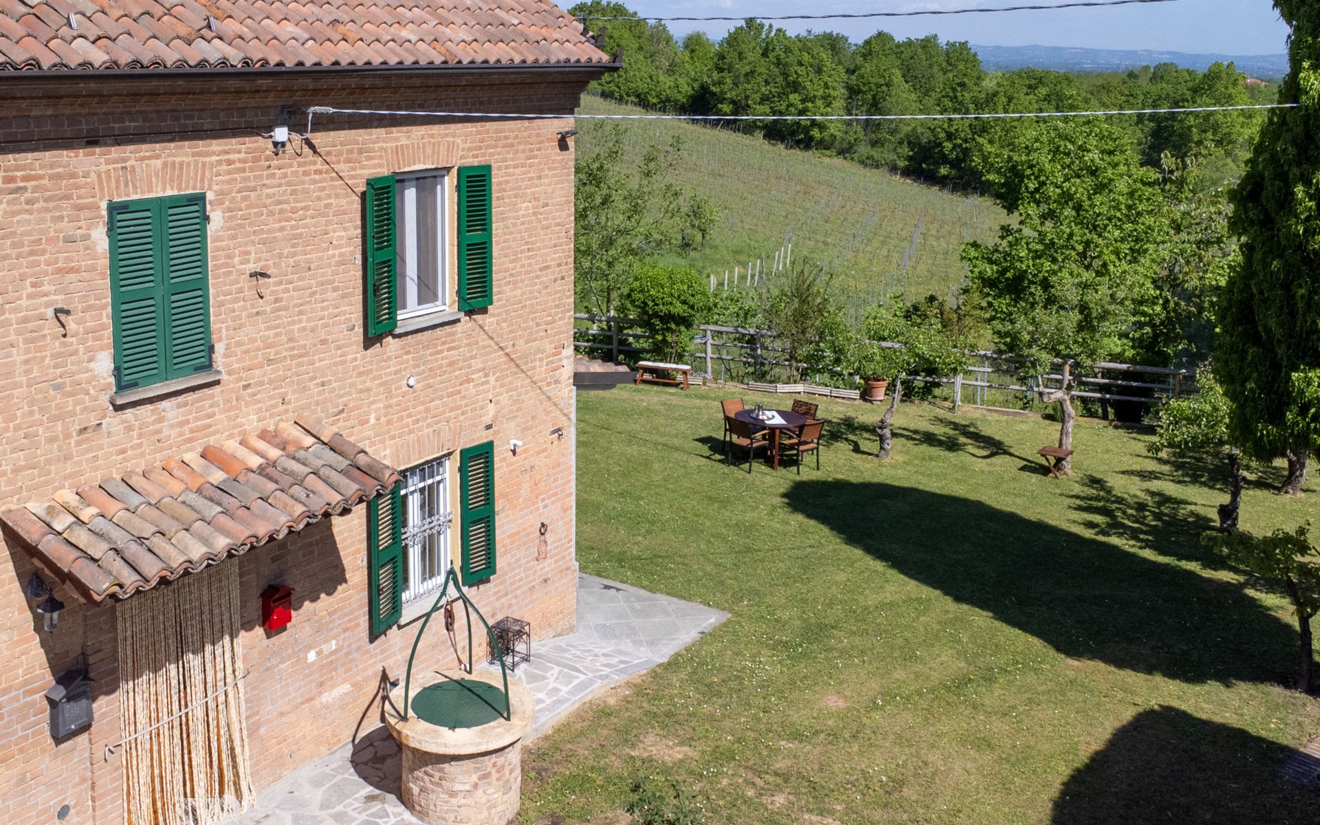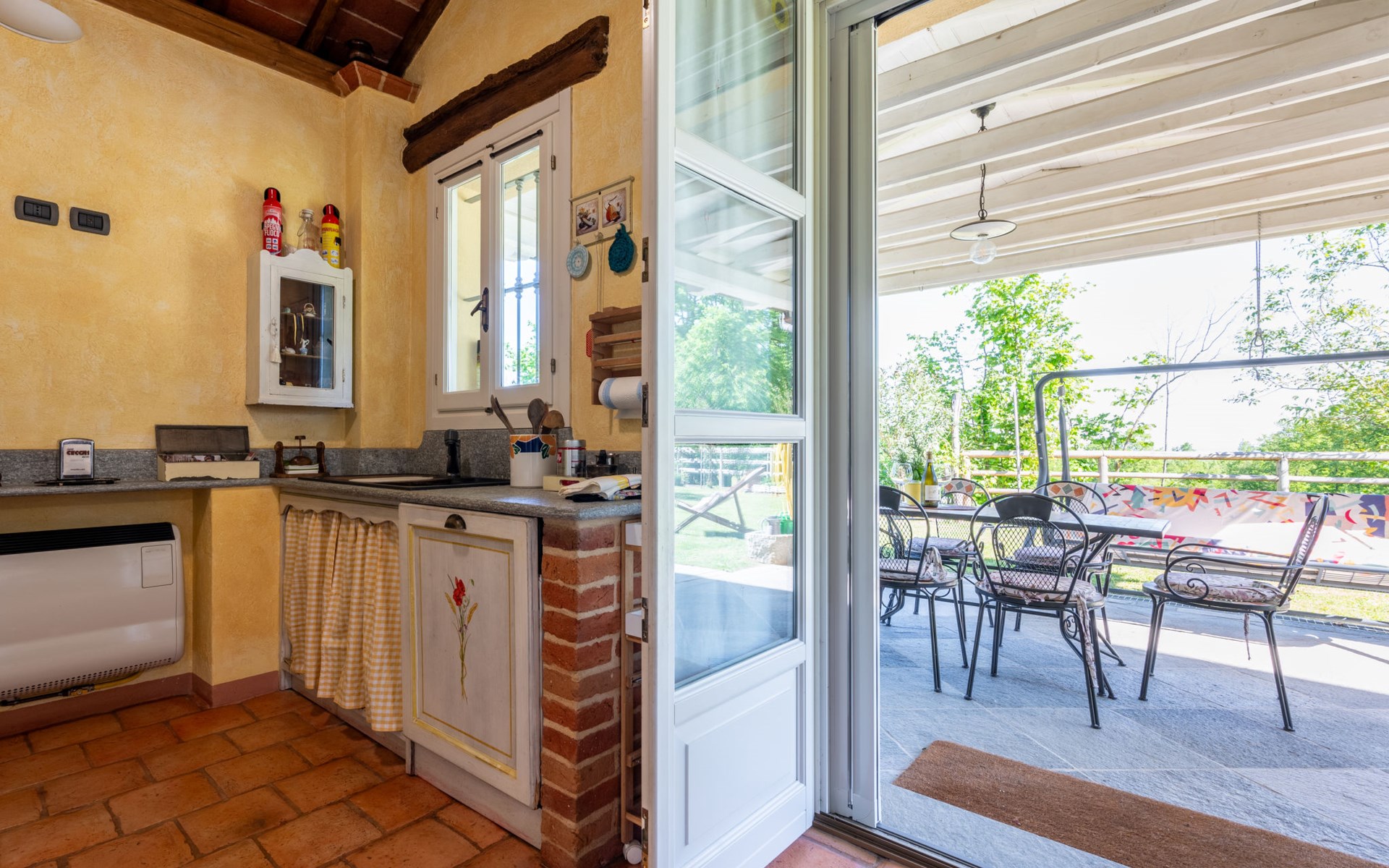 Landhaus "Il Valletto". 1 km vom Zentrum von Mombaruzzo, am Ortsrand, 23 km vom Zentrum von Alessandria, 34 km vom Zentrum von Asti, 80 km vom Meer. Zur Alleinbenutzung: Garten 2'000 m2 (nicht eingezäunt) mit Pflanzen, Wiese, Obstgarten. Sitzplatz, Terrasse (30 m2), Gartenmöbel, Grill, Parkplatz (überdacht) beim Haus auf dem Grundstück. Einkaufsgeschäft 1 km, Supermarkt 9 km, Bushaltestelle 2.5 km, Bahnstation "Alessandria" 23 km.