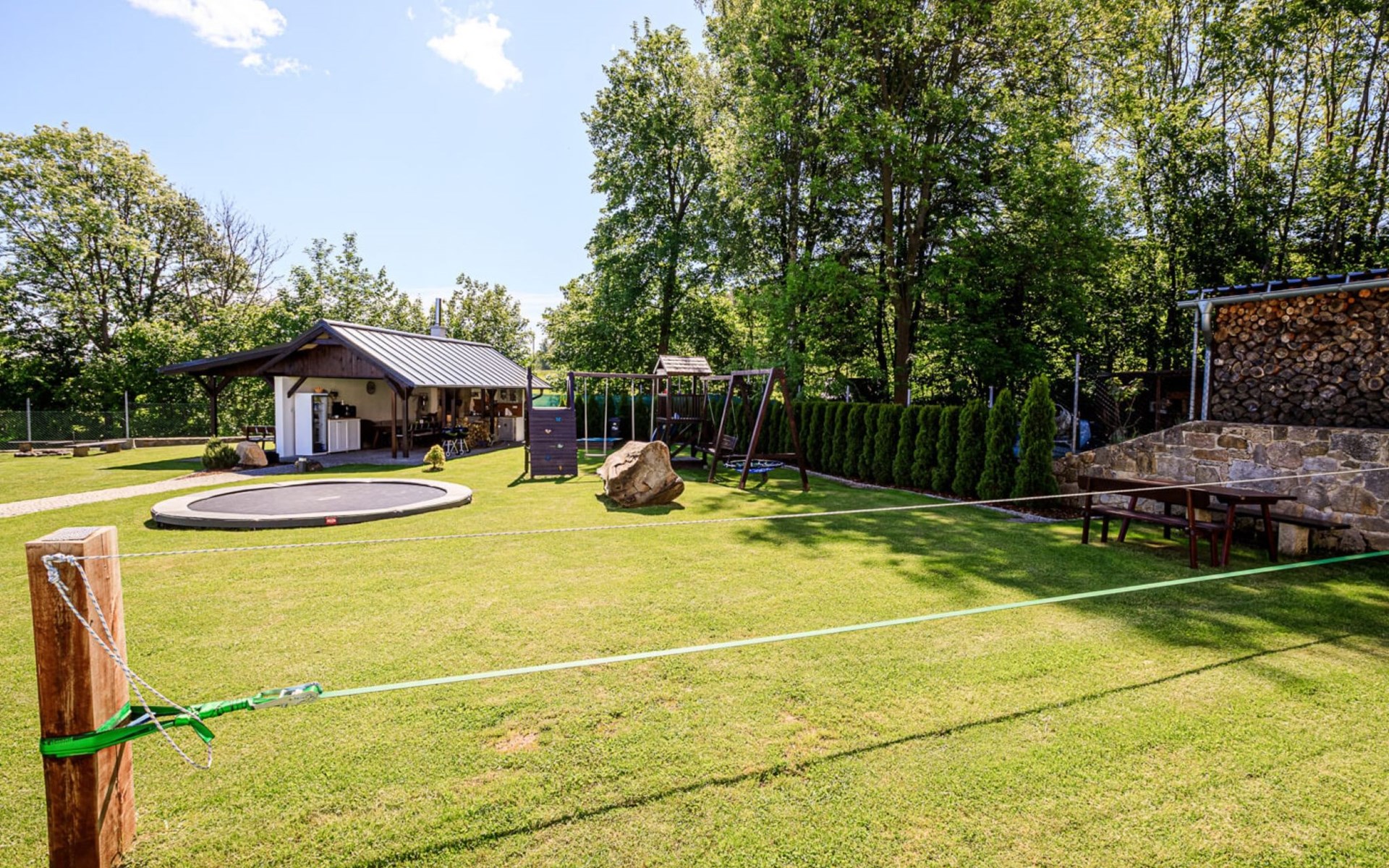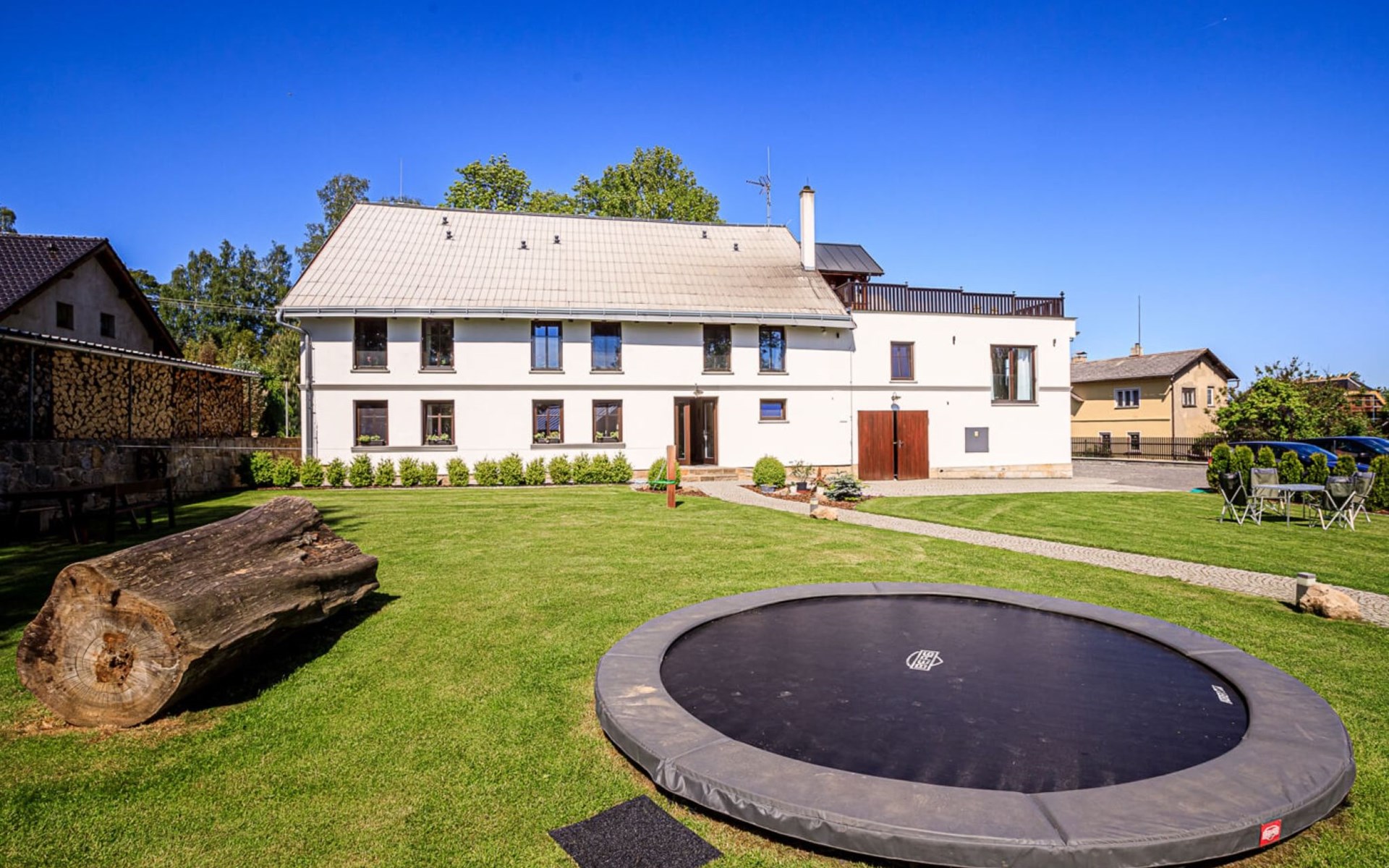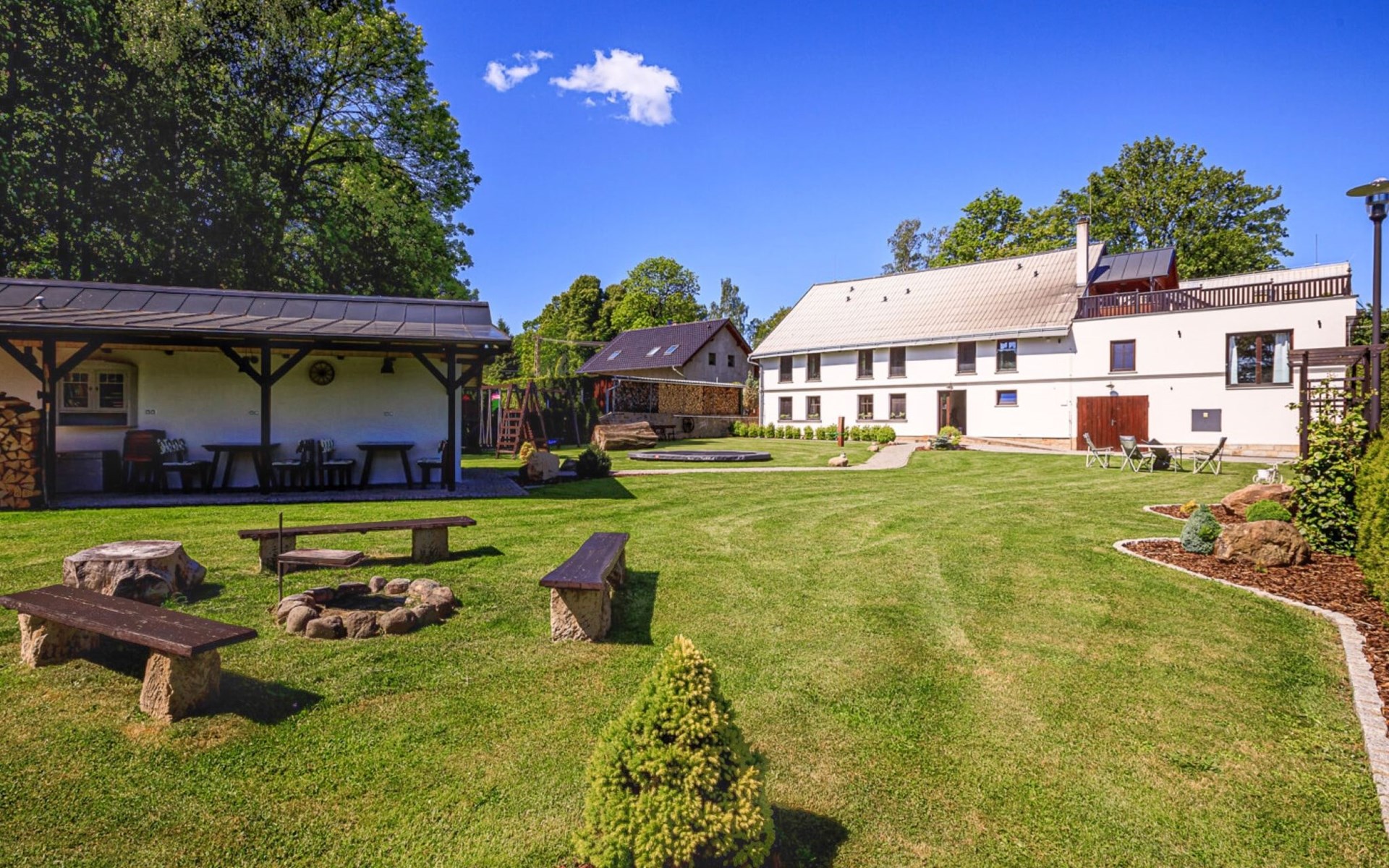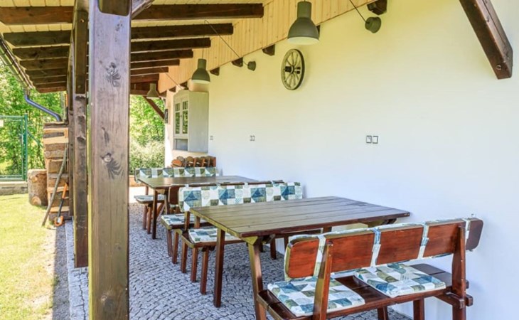Gemütliches, freistehendes Appartementhaus, Baujahr 2015. Am Ortsrand, ruhige, sonnige Lage. Zur Mitbenutzung: Grundstück. Terrasse, Gartenmöbel, Feuerstelle, Grillhaus, Kinderspielplatz. In der Anlage: Spielzimmer, Trampolin, Einstellraum für Fahrräder, Zentralheizung. Parkplatz beim Haus. Lebensmittelgeschäft 300 m, Einkaufszentrum 9 km, Restaurant 100 m, Bushaltestelle "Arnoltice" 400 m, Bahnstation "Děčín východ" 10 km, Freibad 4.5 km, Hallenbad 8 km. Golfplatz (9 Loch) 7 km, Tennis 7 km, Tennishalle 7 km, Minigolf 12 km, Wanderwege ab Haus 100 m, Radweg, Kinderspielplatz 450 m. Nahe gelegene Sehenswürdigkeiten: vyhlídka Belveder 4 km, Hřensko 6 km, Pravčická brána 8 km, Děčín - zámek, aquapark, zoo 10 km, Děčínský Sněžník, Bad Schandau, zříceniny hradů Falkenštejn, Šunštejn 20 km, Liberec, Drážďany 70 km. Wandergebiete: kaňon Labe, Jetřichovické skály, České Švýcarsko/Böhmische Schweiz.