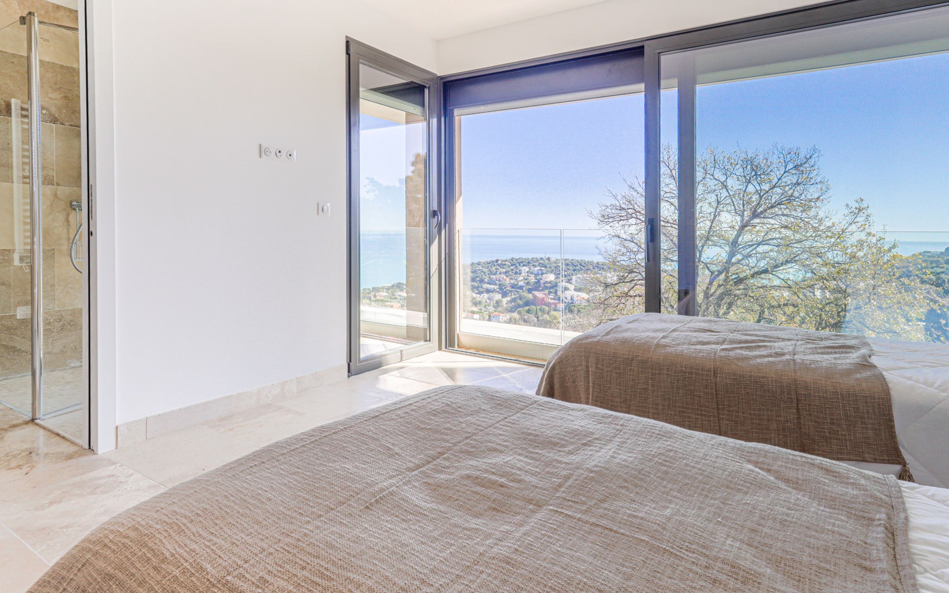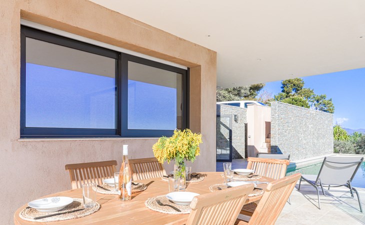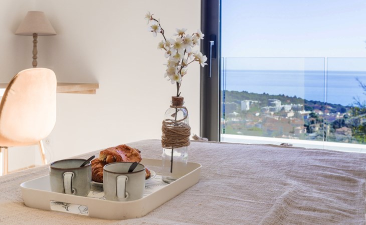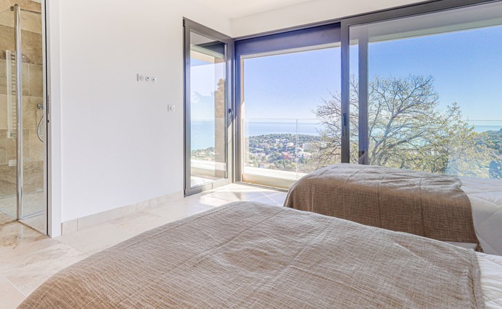 Moderne, schöne Villa "La Concorde", auf 2 Stockwerken, Baujahr 2023. Oberhalb von Roquebrune Cap Martin, 1.5 km vom Zentrum, ruhige, sonnige Lage in einem Wohnquartier, 2 km vom Meer, 2.5 km vom Strand. Zur Alleinbenutzung: terrassierter Garten, 2'000 m2 (eingezäunt) Pflanzen und Bäumen, Schwimmbad (11 x 4 m, 155 - 155 cm tief, saisonale Verfügbarkeit: 01.Mai. - 31.Okt.) mit Alarmanlage. Aussendusche, Boccia, Parkplatz (für 3 Autos). Einkaufsgeschäft 1.5 km, Lebensmittelgeschäft 1.5 km, Supermarkt 1.5 km, Restaurant 1.5 km, Bar 1.5 km, Bäckerei 1 km, Café 1.5 km, Bushaltestelle "Zest 22" 1.5 km, Bahnstation "Roquebrune Cap Martin" 2.2 km, Kieselstrand "Plage de la Buse" 2.6 km. Golfplatz (18 Loch) 15 km, Tennis 1 km. Nahe gelegene Sehenswürdigkeiten: sentier du littoral 2.4 km, Menton 3 km, Monaco 7 km, Nice 27 km, Château Médiéval 2 km. Wandergebiete: Parc National du Mercantour 29 km.