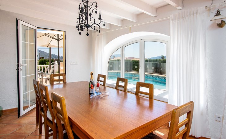 Grosse, schöne, komfortable Villa "Mandana", auf 2 Stockwerken. Im Ort Sagra, ruhige, sonnige Lage, 13 km vom Meer, 13 km vom Strand. Zur Alleinbenutzung: schöner, gepflegter Garten Pflanzen und Bäumen, Schwimmbad nierenförmig (8 x 4 m, 80 - 210 cm tief, saisonale Verfügbarkeit: 01.Jan. - 31.Dez.). Aussendusche, Gartenmöbel, Grill. Im Hause: Wäscherei, Waschmaschine. Parkplatz (für 3 Autos) auf dem Grundstück. Einkaufsgeschäft 200 m, Supermarkt 3 km, Einkaufszentrum 10 km, Restaurant 170 m, Café 10 m, Bushaltestelle 500 m, Bahnstation 1.8 km, Fähre 1.8 km, Sandstrand "Playa de Les Bovetes" 13 km. Surfschule 13 km, Segelschule 13 km. Der Besitzer akzeptiert keine Jugendgruppen.