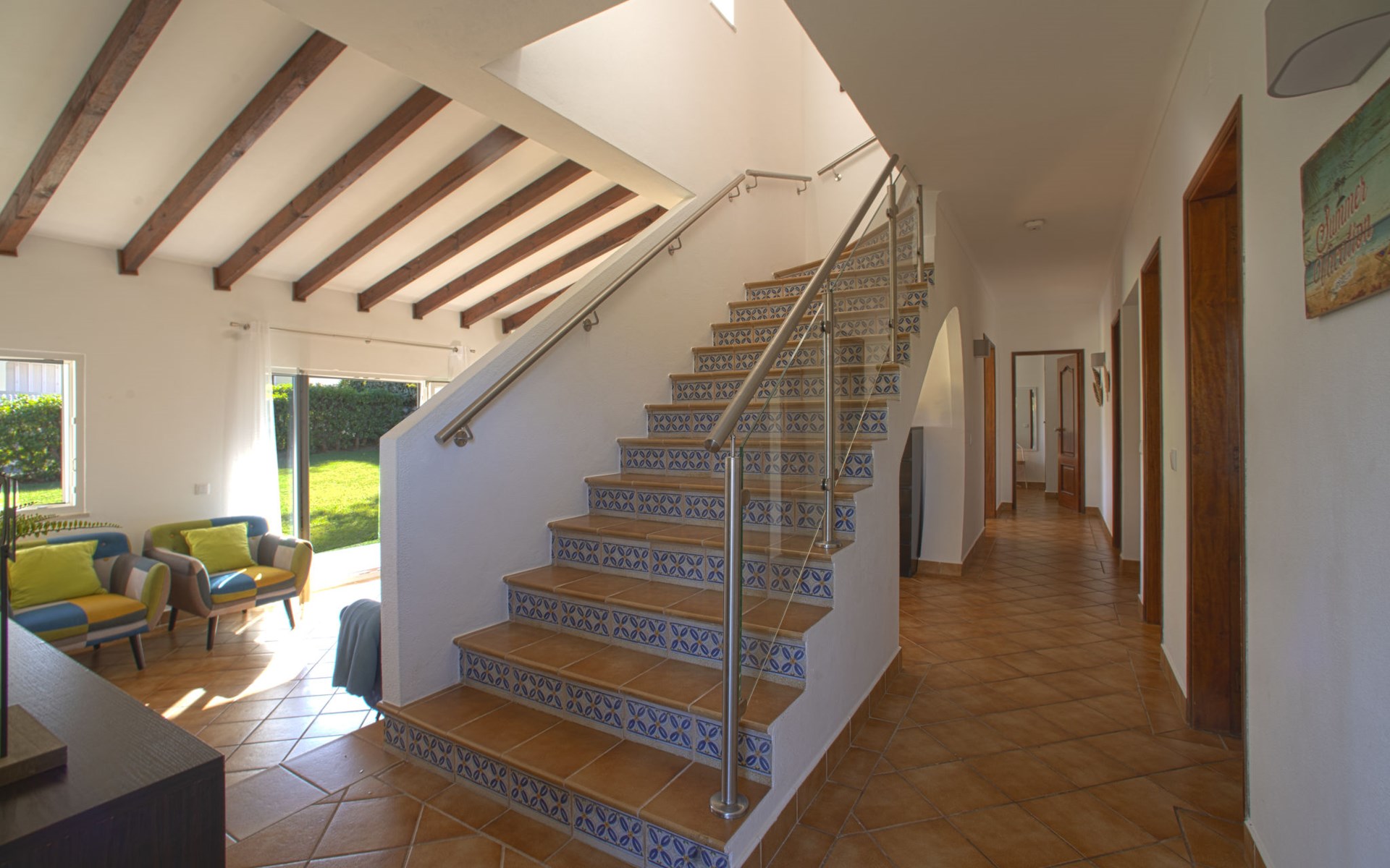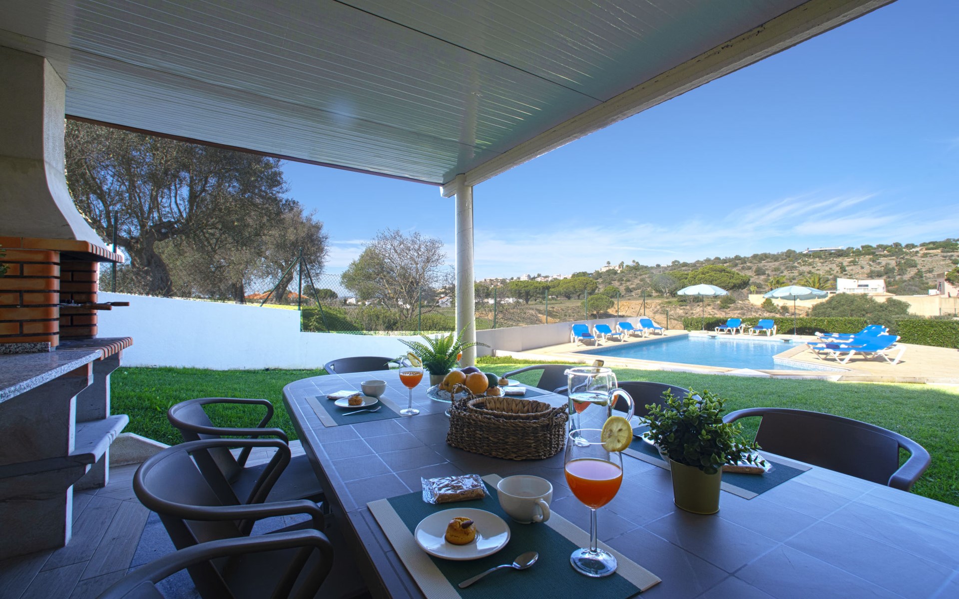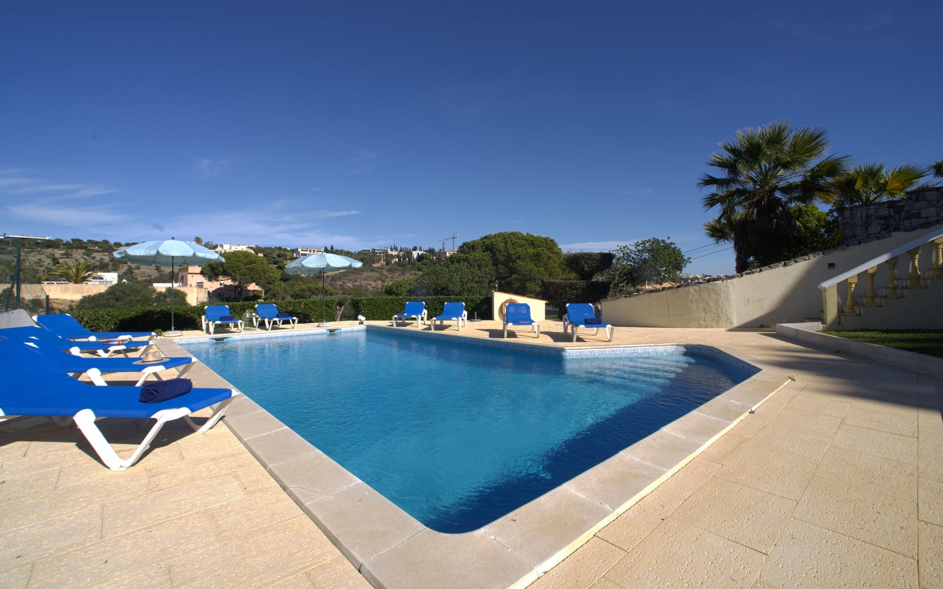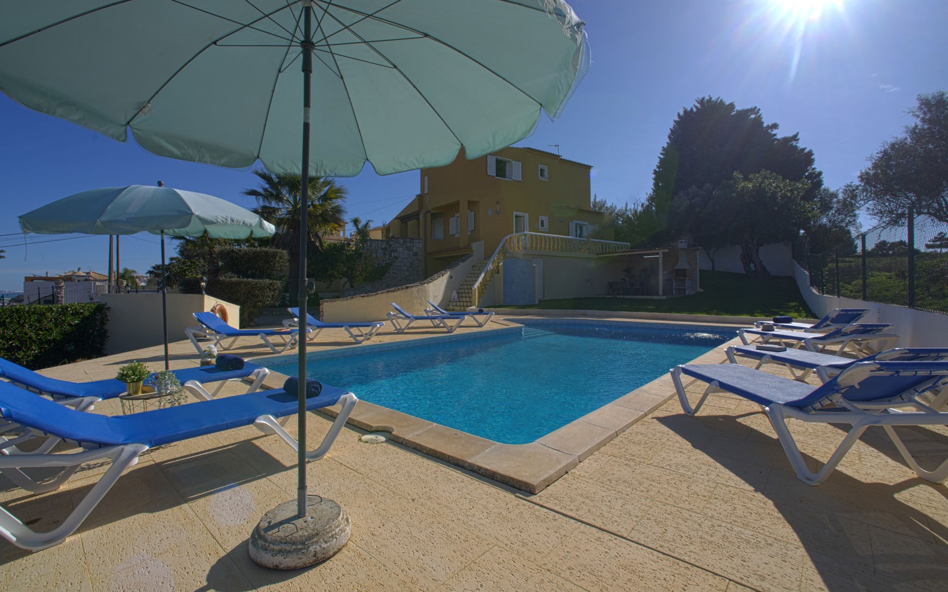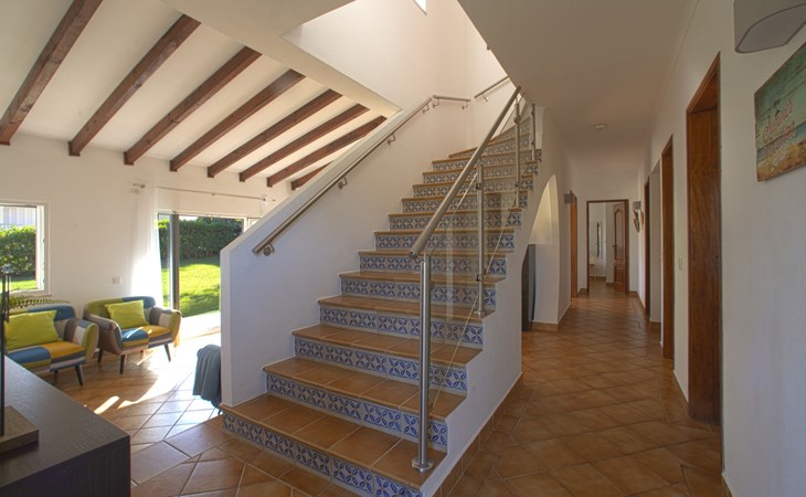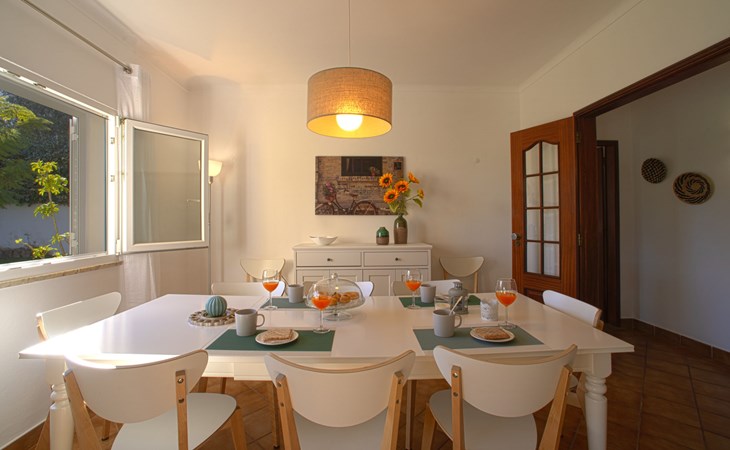 Gemütliche, freistehende, komfortable Villa "Mariana", auf 2 Stockwerken, renoviert im Jahre 2022, umgeben von Feldern. Im Ort, 2.7 km vom Zentrum von da Galé, im Bezirk Albufeira, sonnige Lage im Villenviertel, 1.5 km vom Meer. Zur Alleinbenutzung: Grundstück 1'500 m2 (eingezäunt), wunderschöner Garten zum Entspannen, Schwimmbad (10 x 5 m, 130 - 190 cm tief, saisonale Verfügbarkeit: 01.Jan. - 31.Dez.). Ungleichmässige Schwimmbadform, Aussendusche, Gartenmöbel, Grill. Im Hause: Wireless LAN, Billard, Tischfussball, Klimaanlage, Waschmaschine. Parkplatz beim Haus. Einkaufsgeschäft 2.9 km, Lebensmittelgeschäft 1.1 km, Supermarkt 1.1 km, Einkaufszentrum 8.6 km, Restaurant 850 m, Bar 120 m, Bäckerei 1.1 km, Café 700 m, Fußgängerzone 3.1 km, Fahrradverleih 3.7 km, Bushaltestelle 140 m, Sandstrand "Praia S. Rafael" 1.5 km, Tauchzentrum 2.9 km. Jacht-Hafen 2.9 km, Golfplatz (18 Loch) 4.5 km, Surfschule 3.2 km, Tennis 12.9 km, Minigolf 5.7 km, Reitstall 4.5 km. Nahe gelegene Sehenswürdigkeiten: Zoomarine 7.8 km, Algarve Shopping 8.6 km, Aqualand 10.5 km, Krazy World 14.5 km, Sandy City 15.8 km, Museu de Arte Sacra de Albufeira 3.4 km. Bekannte Seen in der Umgebung sind gut erreichbar: Lagoa dos Salgados 7.3 km. Bitte beachten: geeignet für Familien. Jugendgruppen nur auf Anfrage. Be- und Entladen am Ferienhaus möglich.