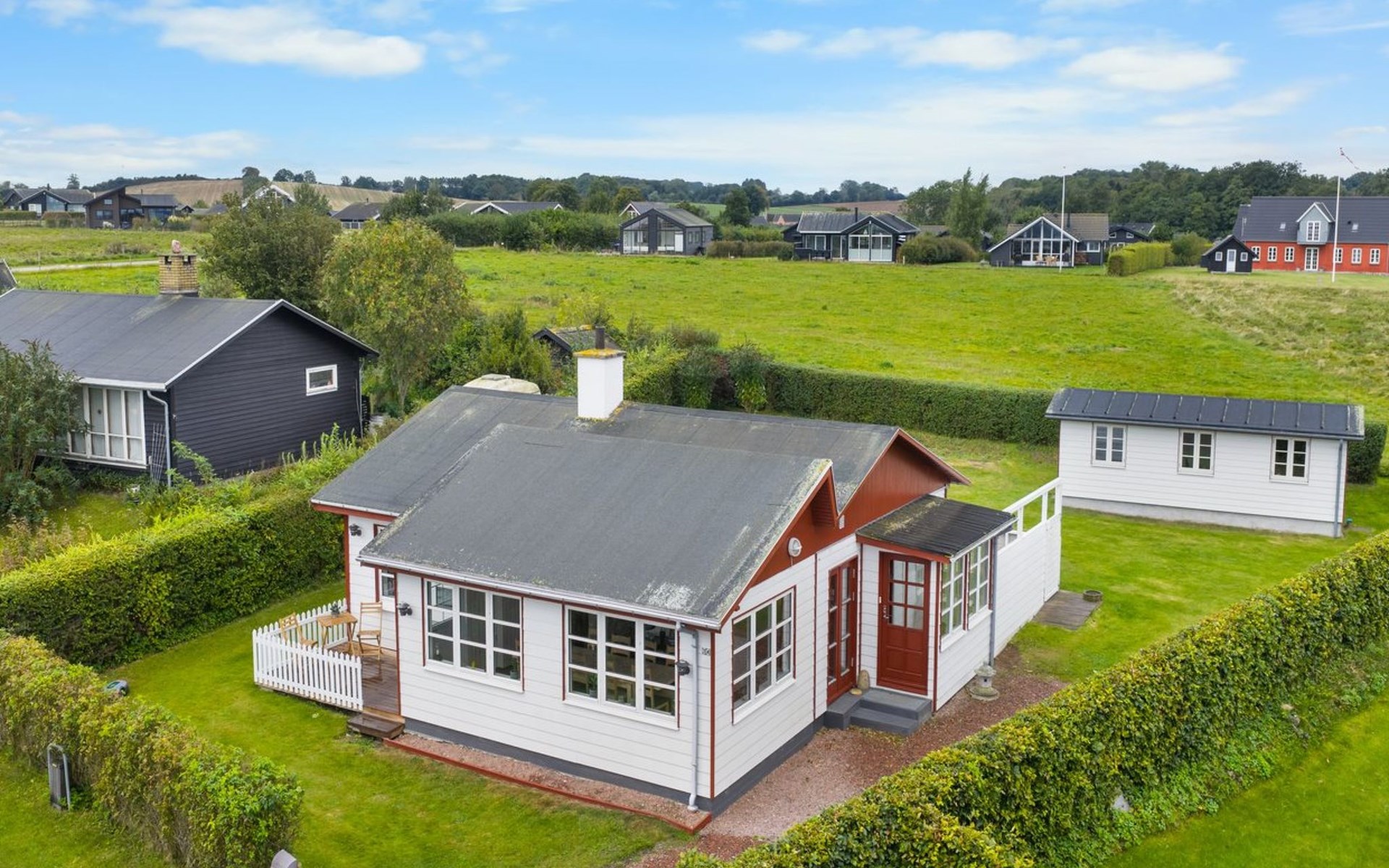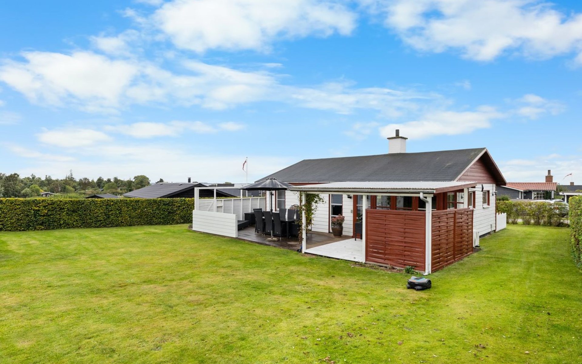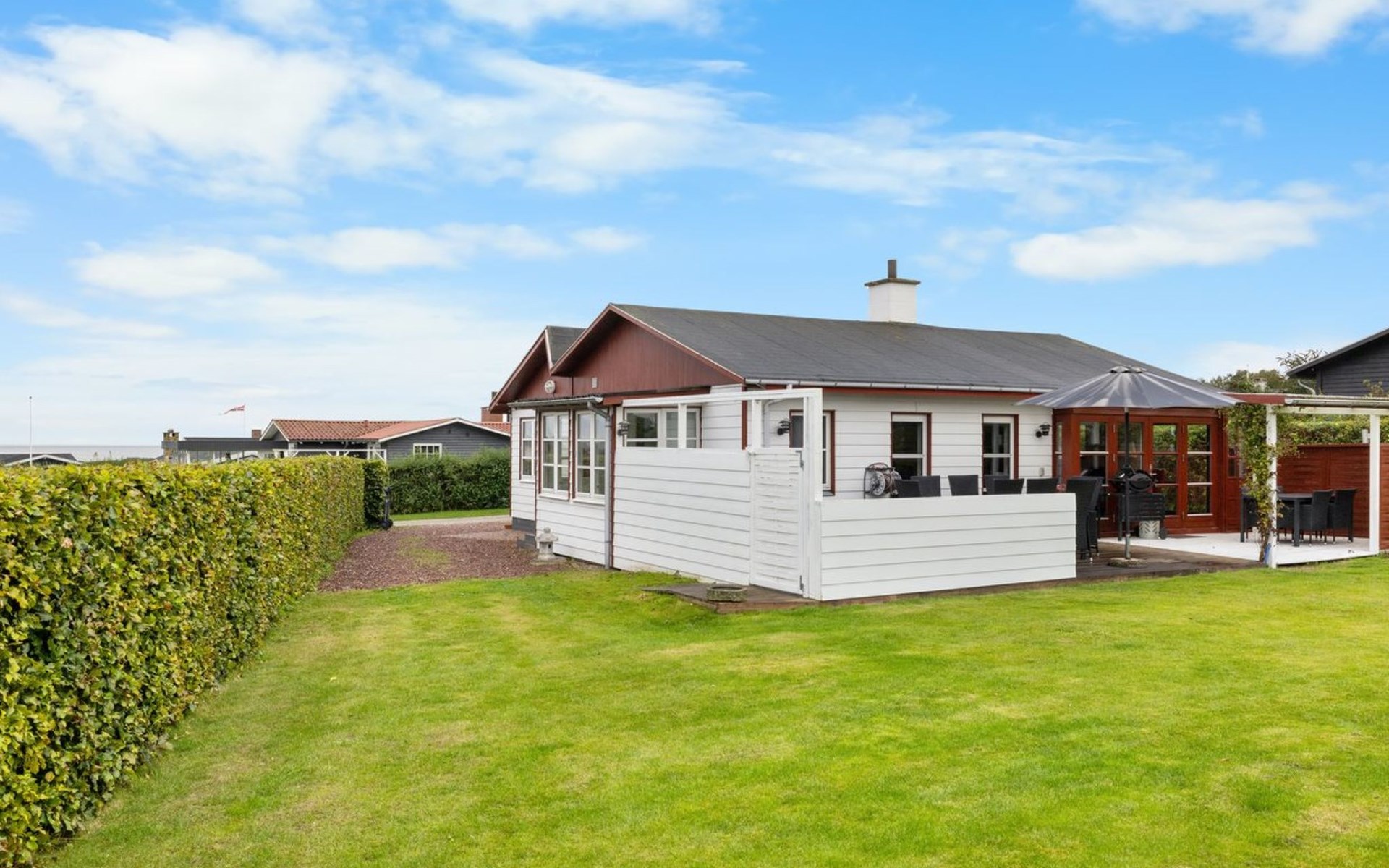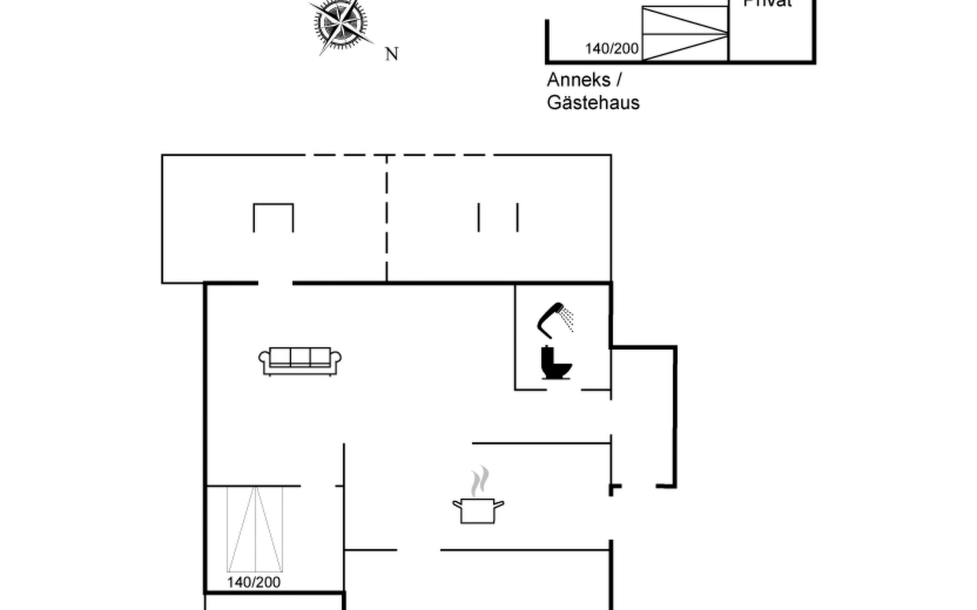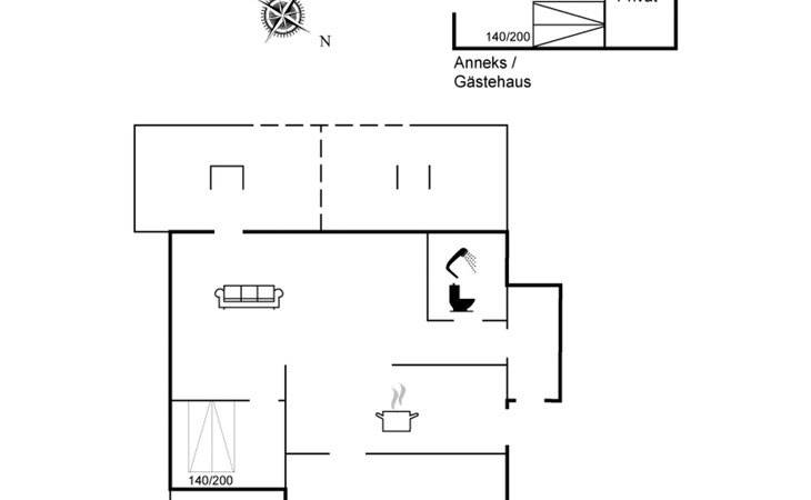 Einfamilienhaus, Baujahr 1969. 200 m vom Meer. Zur Alleinbenutzung: Grundstück 665 m2, gepflegter Garten. Grill. Im Hause: Waschmaschine. Parkplatz beim Haus. Lebensmittelgeschäft 7.7 km. Der Besitzer akzeptiert keine Jugendgruppen.