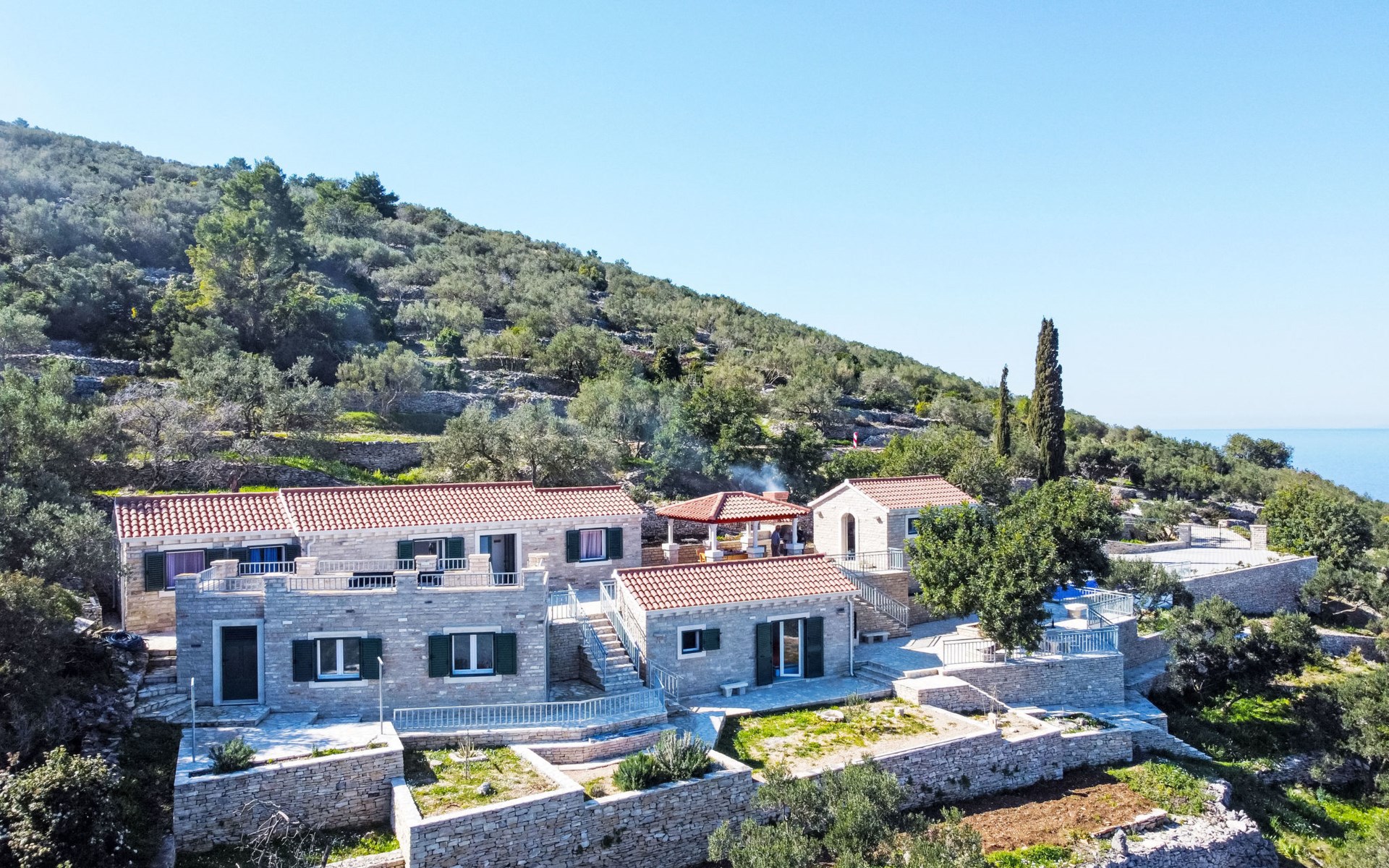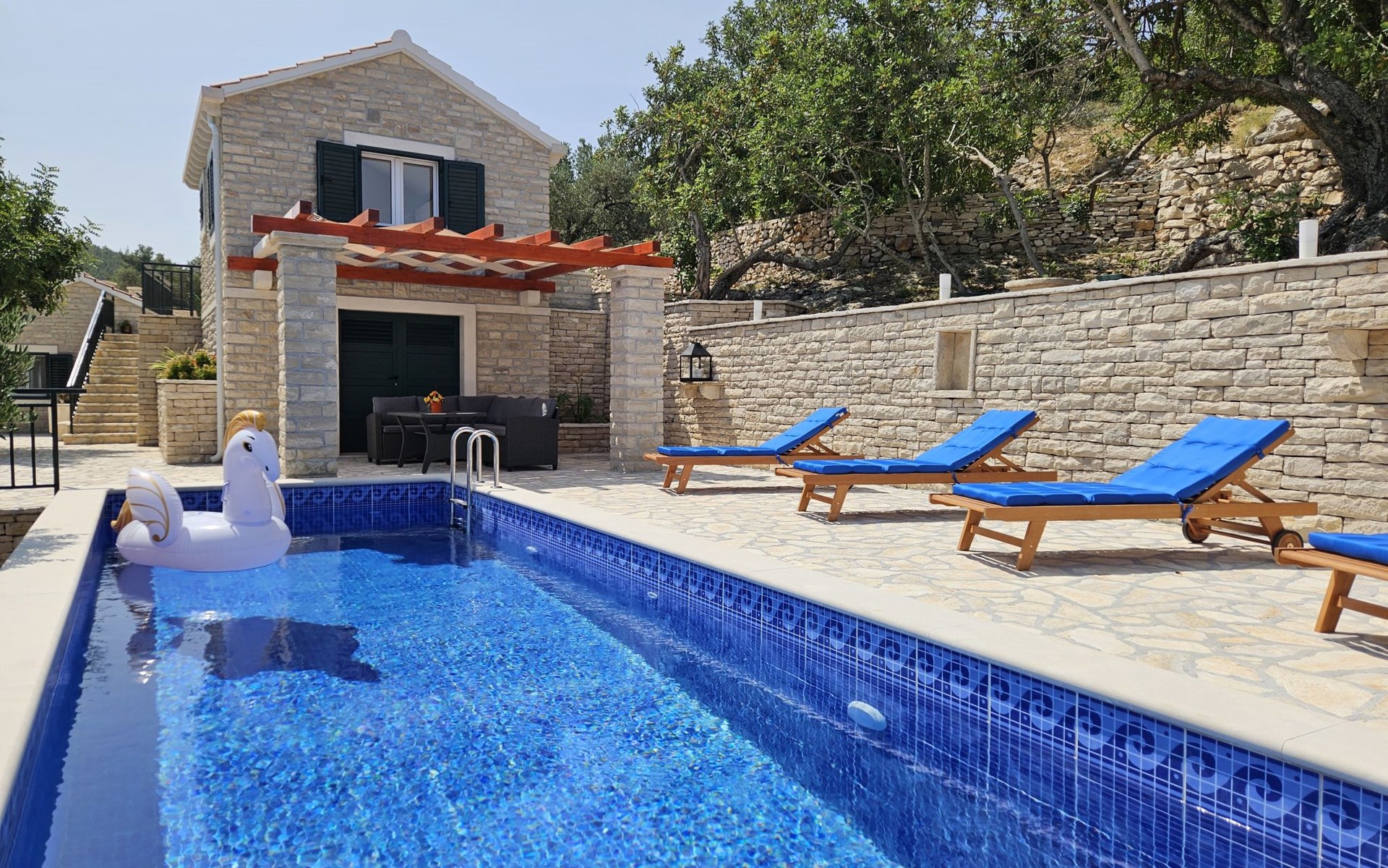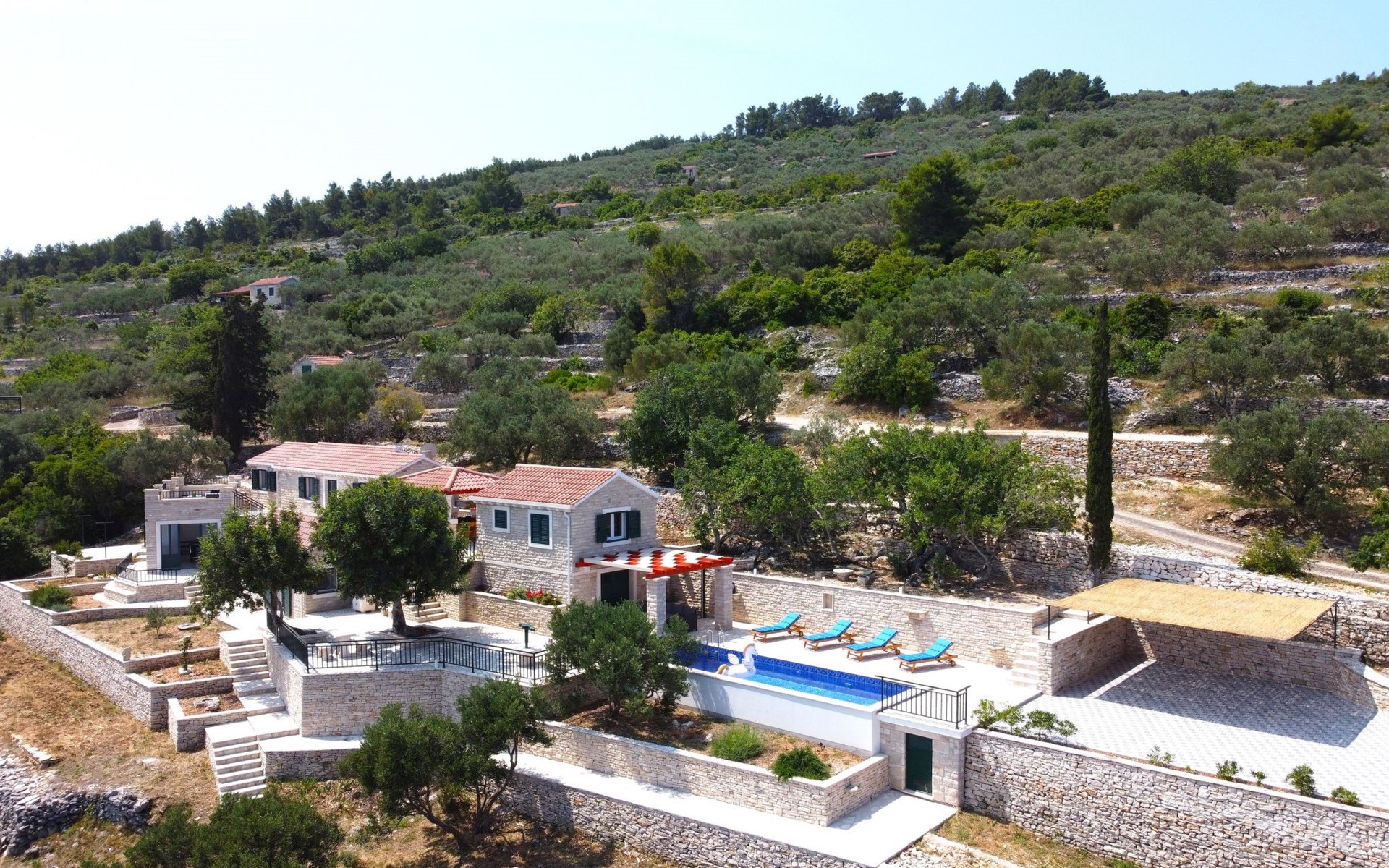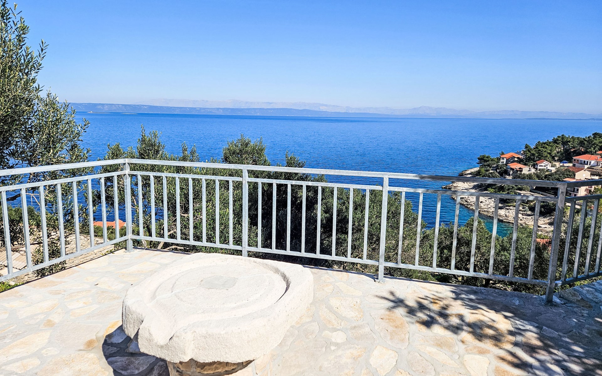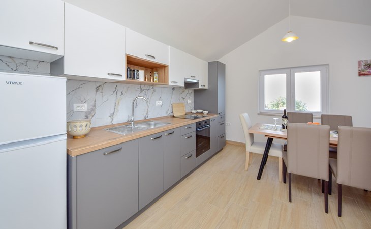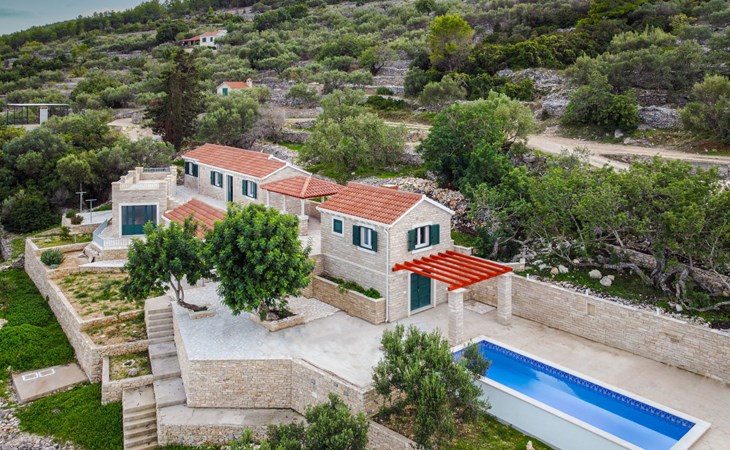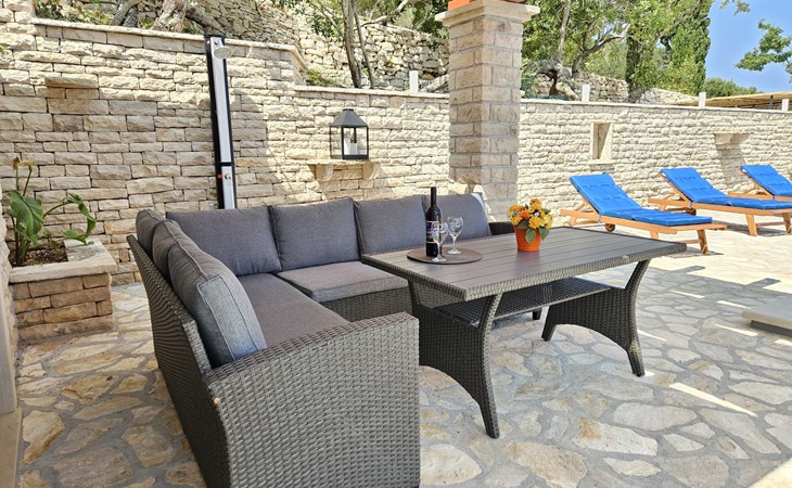 Haus "Brankovi Dvori". 1.1 km vom Zentrum von Prigradica, alleinstehende, ruhige, sonnige Lage am Hang, 600 m vom Meer, 600 m vom Strand. Zur Alleinbenutzung: Grundstück 1'700 m2, Schwimmbad eckig (24 m2, 145 cm tief, saisonale Verfügbarkeit: 01.Mai. - 14.Okt.). Aussendusche, Poolpflege durch den Besitzer/Gärtner. Im Hause: Internetzugang, Klimaanlage, Waschmaschine. 300 m lange Zufahrt bis zum Haus (Naturweg). Parkplatz (überdacht) beim Haus auf dem Grundstück. Lebensmittelgeschäft 1.2 km, Supermarkt 6 km, Restaurant 1.5 km, Bushaltestelle 5.8 km.