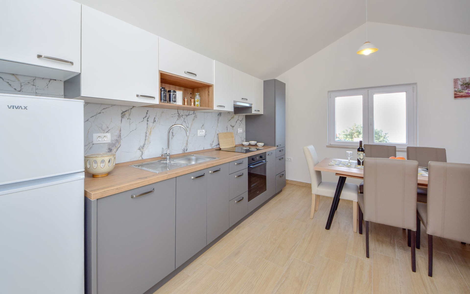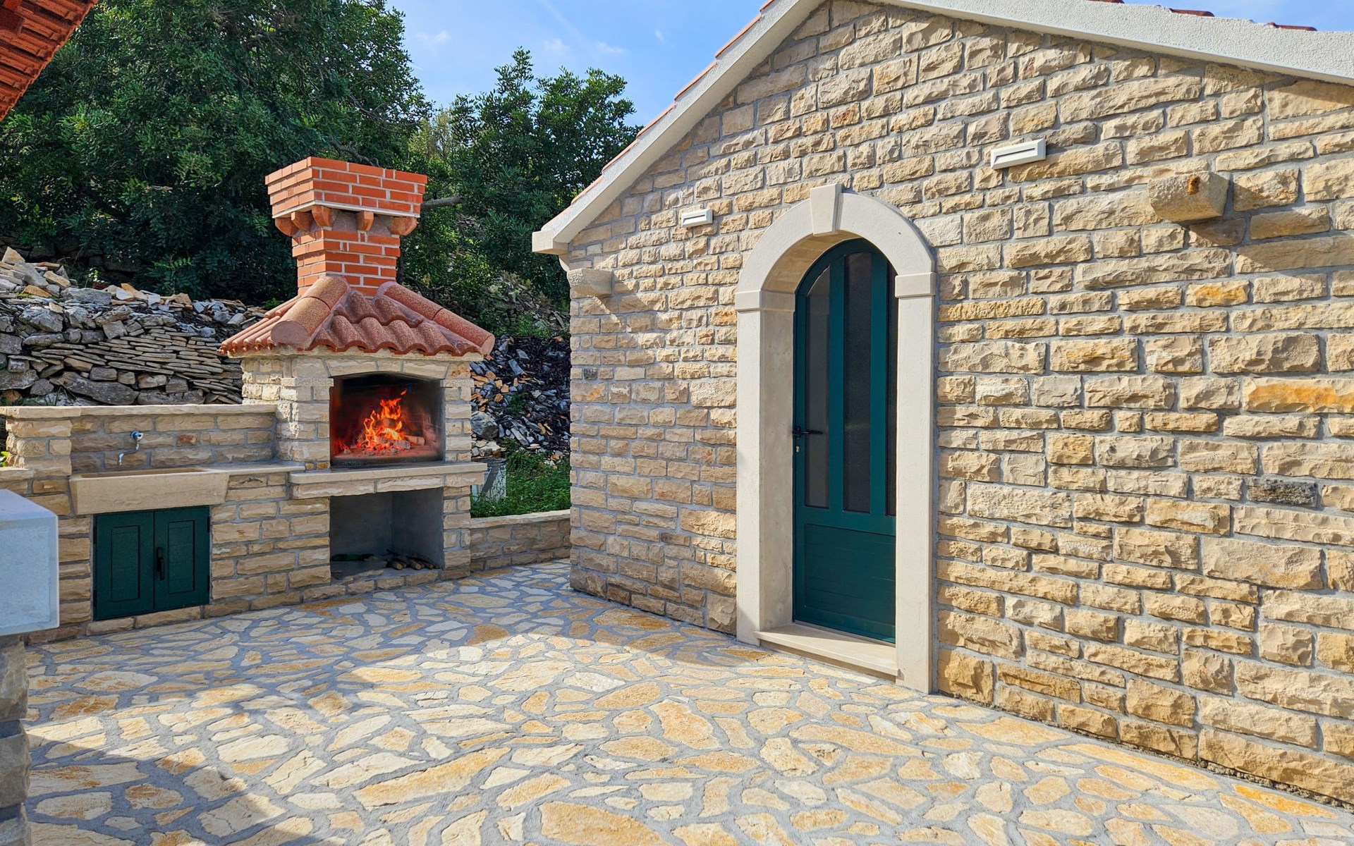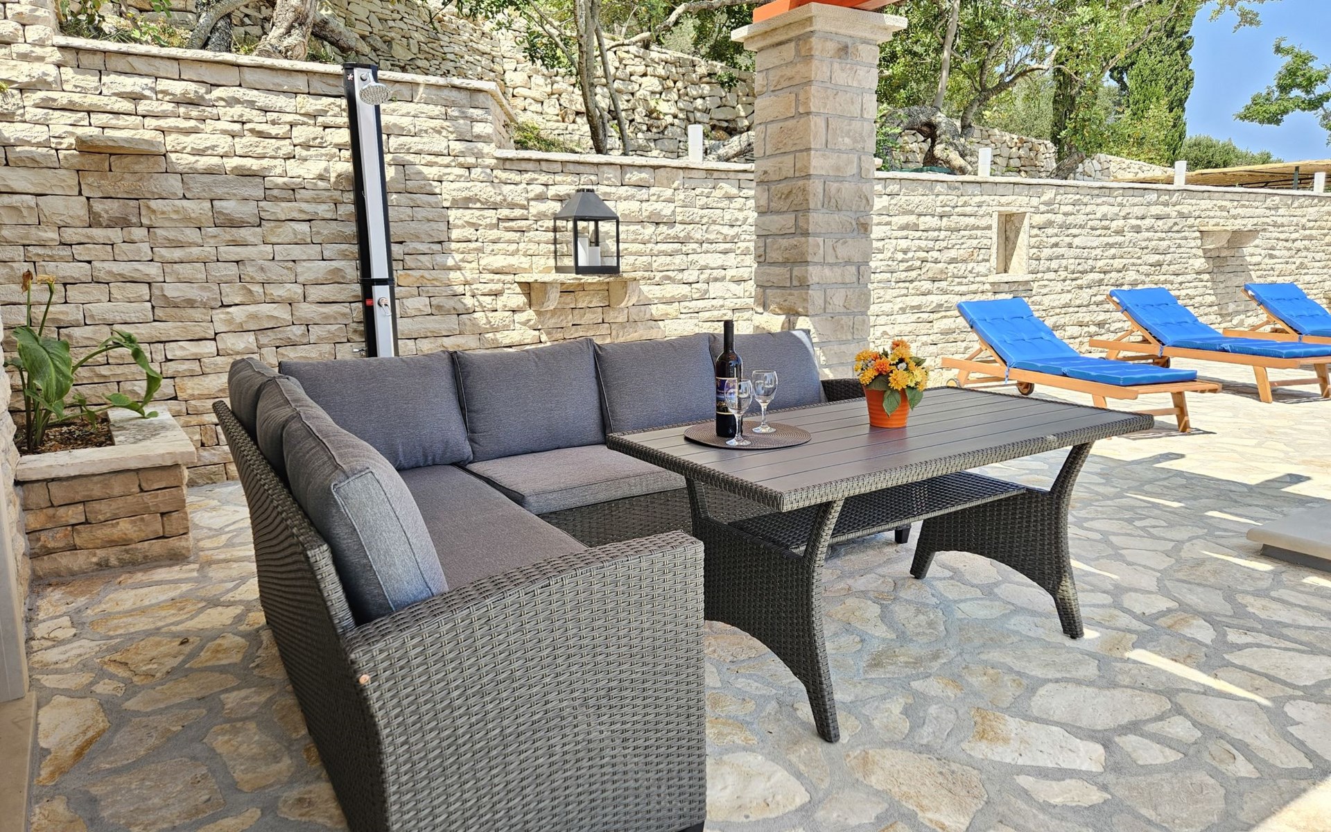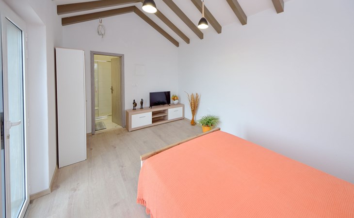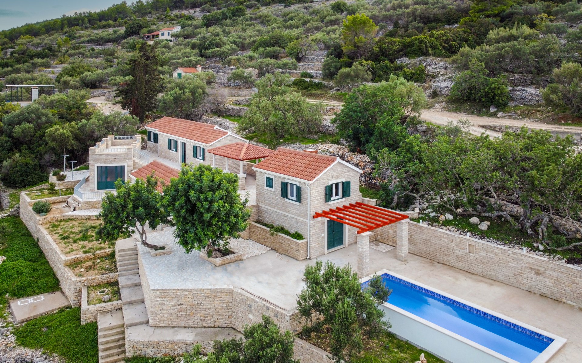 Haus "Brankovi Dvori". 1.1 km vom Zentrum von Prigradica, alleinstehende, ruhige, sonnige Lage am Hang, 600 m vom Meer, 600 m vom Strand. Zur Alleinbenutzung: Grundstück 1'700 m2, Schwimmbad eckig (24 m2, 145 cm tief, saisonale Verfügbarkeit: 01.Mai. - 14.Okt.). Aussendusche, Poolpflege durch den Besitzer/Gärtner. Im Hause: Internetzugang, Klimaanlage, Waschmaschine. 300 m lange Zufahrt bis zum Haus (Naturweg). Parkplatz (überdacht) beim Haus auf dem Grundstück. Lebensmittelgeschäft 1.2 km, Supermarkt 6 km, Restaurant 1.5 km, Bushaltestelle 5.8 km.