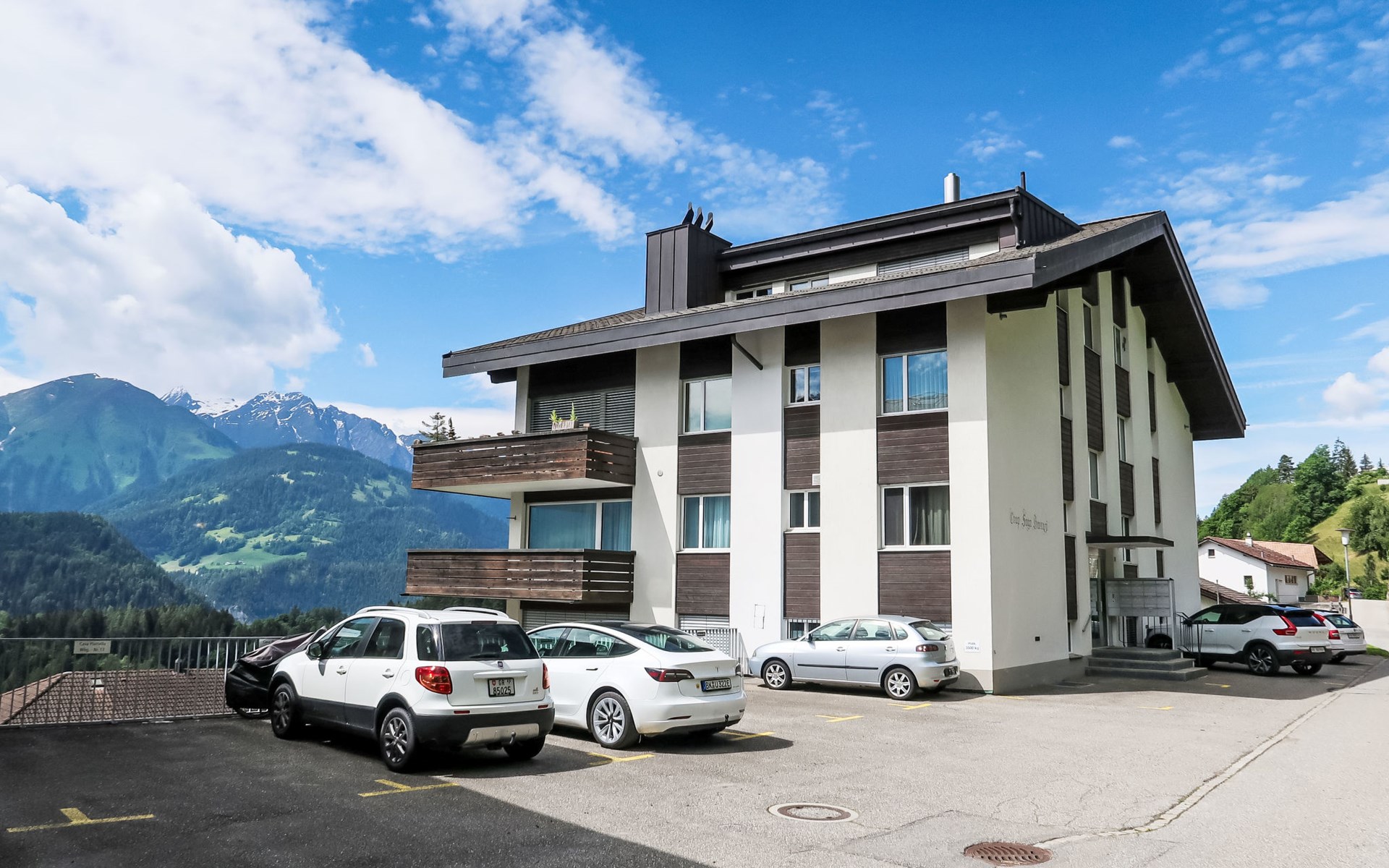 Trin 5 km von Flims: Gemütliches Mehrfamilienhaus "Casa Crap Sogn Barcazi", 876 m.ü.M., auf 4 Stockwerken. Im Ort, zentrale, ruhige, sonnige Lage am Hang, 6 km vom Skigebiet. Im Hause: Skiraum, Zentralheizung, Waschmaschine, Wäschetrockner (zur Mitbenutzung, extra). Zufahrt bis zum Haus (Bergstrasse). Im Winter 4x4 empfohlen. Parkplatz beim Haus. Lebensmittelgeschäft, Restaurant 300 m, Bushaltestelle "Trin, Dorf" 400 m. Skisportanlagen 6 km, Skipisten 6 km, Skischule 6 km, Langlaufloipe 3 km. Nahe gelegene Sehenswürdigkeiten: Ruinalta/Rheinschlucht, Aussichtsplattform Il Spir, UNESCO-Welterbe Tektonikarena Sardona. Bekannte Skigebiete sind gut erreichbar: Weisse Arena Flims/Laax. Bekannte Seen in der Umgebung sind gut erreichbar: Caumesee, Crestasee. Wandergebiete: UNESCO-Welterbe Tektonikarena Sardona, Ruinalta/Rheinschlucht, Hochebene Bargis.