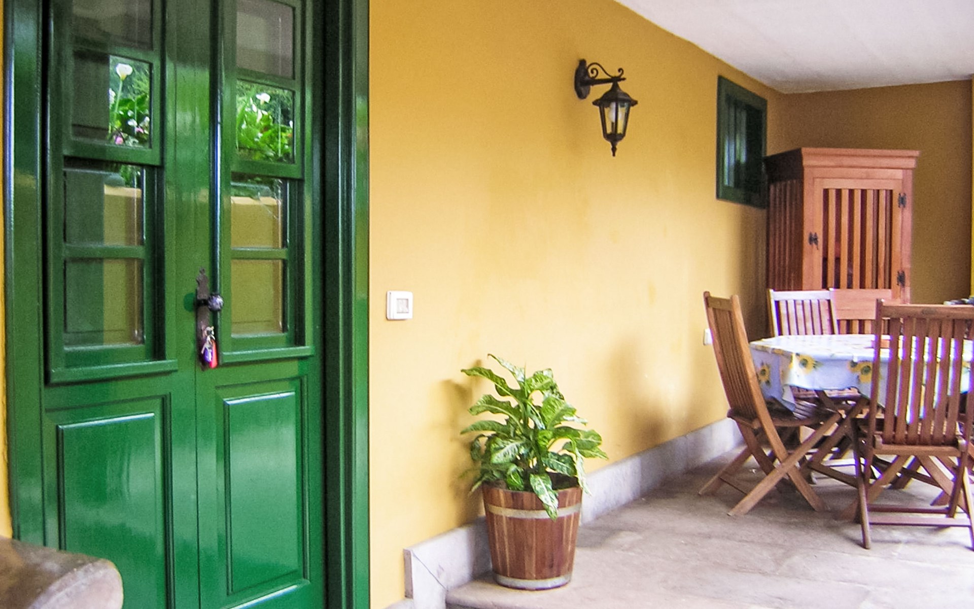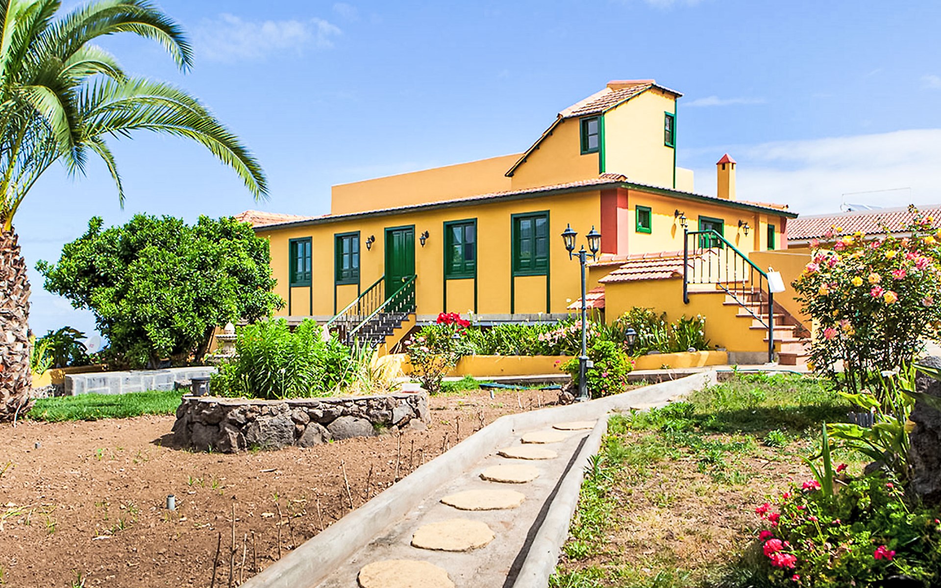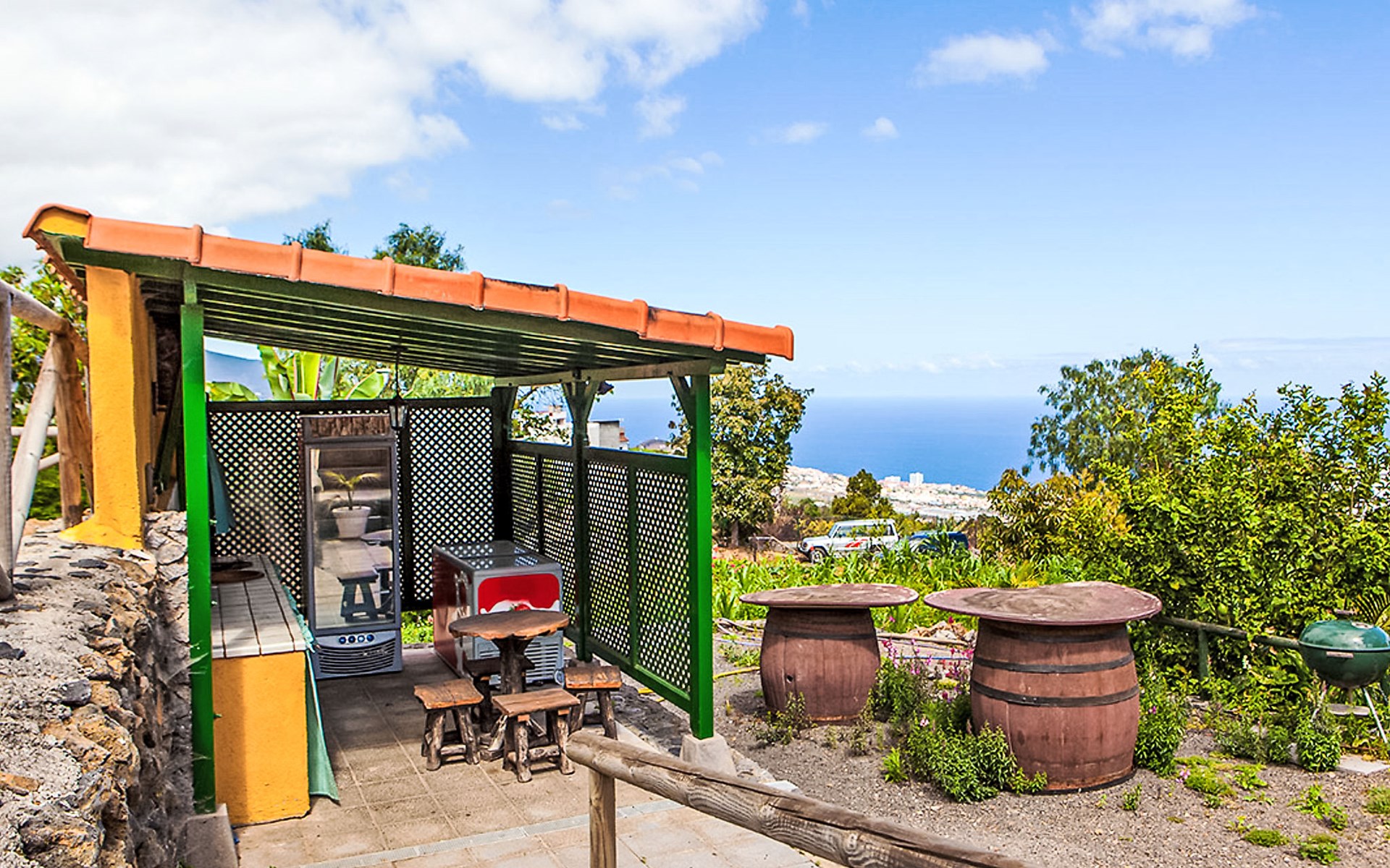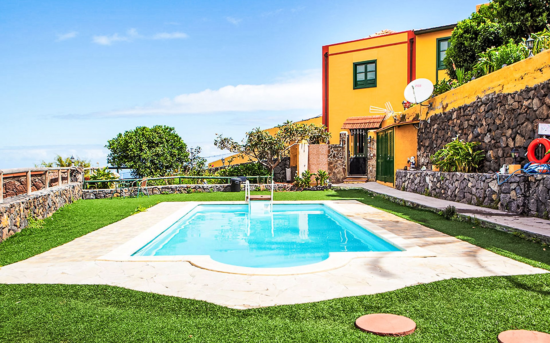 La Orotava: Schönes, rustikales Haus "Camino La Candelaria". Ausserhalb des Ortes, am Hang, 6 km vom Meer. Zur Mitbenutzung: Grundstück 20'000 m2 mit Rasen, Obstgarten, wunderschöner Garten zum Entspannen, Schwimmbad (7 x 4 m, 120 - 150 cm tief, saisonale Verfügbarkeit: 01.Jan. - 31.Dez.). WC im Poolbereich, Aussendusche, Poolhaus mit Kühlschrank, Gartenmöbel, Grill. In der Anlage: Wireless LAN. Parkplatz auf dem Grundstück. Lebensmittelgeschäft 300 m, Restaurant, Bushaltestelle 20 m, Sandstrand 6 km. Der Besitzer akzeptiert keine Jugendgruppen. Bitte beachten: Hauptstrasse 50 m vom Haus. Weitere Unterkünfte sind buchbar. Sonnenterrasse, ca. 20 m2.