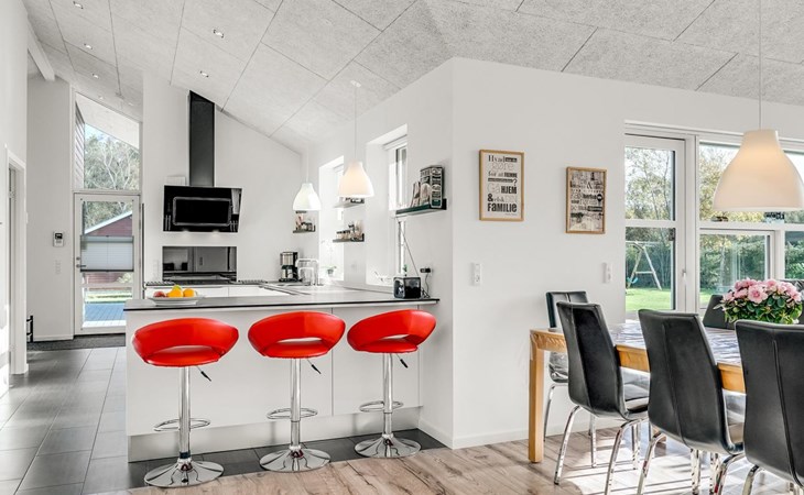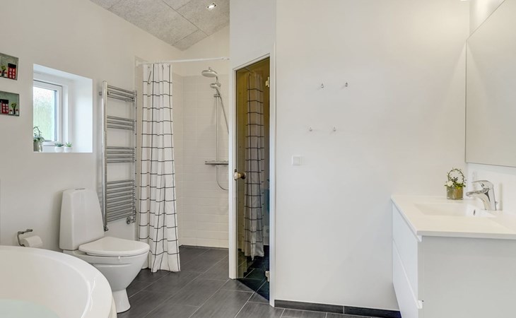 Einfamilienhaus, Baujahr 2017. 700 m vom Meer. Zur Alleinbenutzung: naturbelassenes Grundstück 1'380 m2. Terrasse (100 m2), Grill, Kinderspielplatz (Rutschbahn, Schaukel). Im Hause: Sauna, Waschmaschine, Wäschetrockner. Parkplatz beim Haus. Lebensmittelgeschäft 800 m. Der Besitzer akzeptiert keine Jugendgruppen.