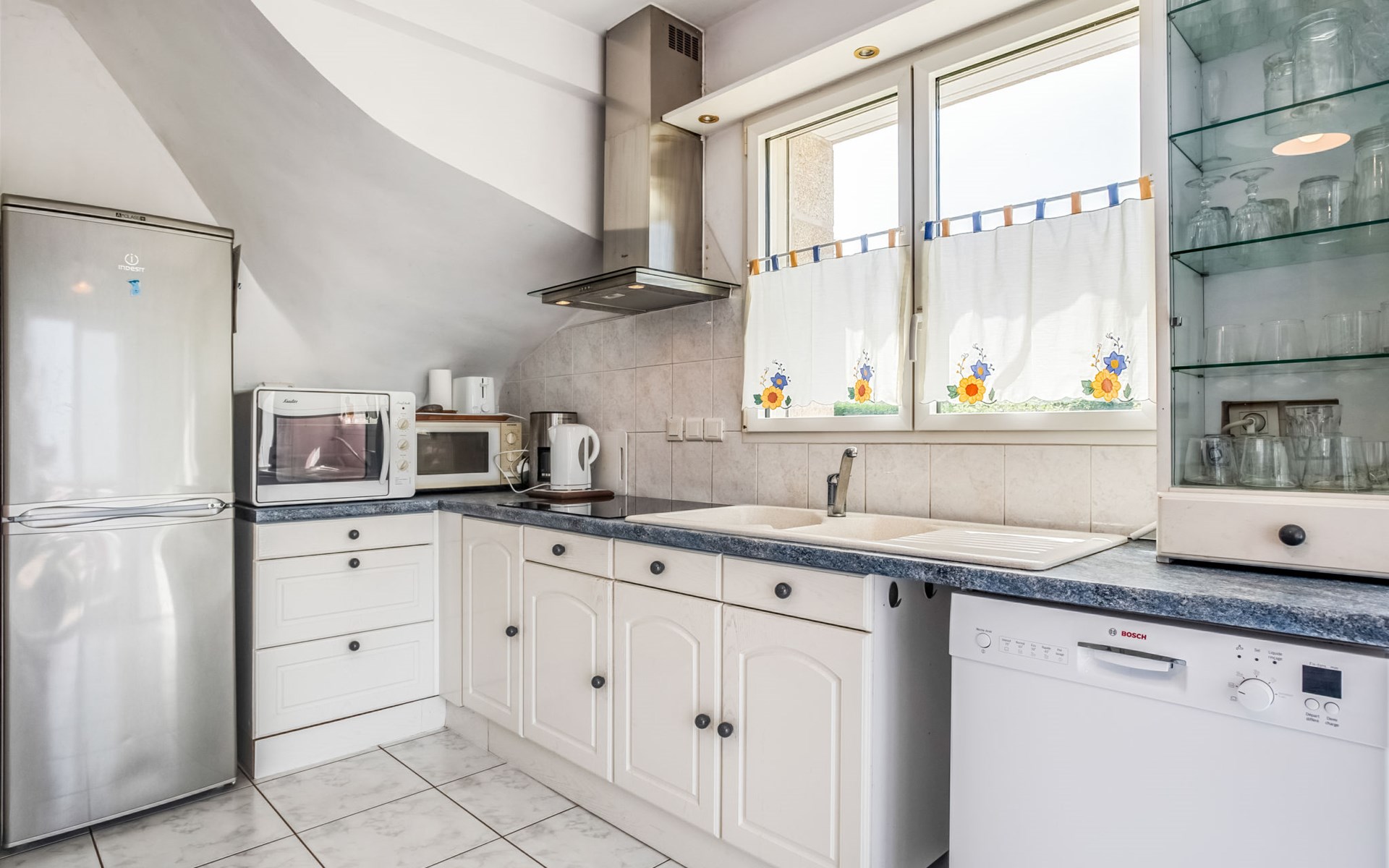 Village de Kéraude: Gemütliches Einfamilienhaus "Maison Poul", Baujahr 2003. 1 km vom Zentrum, exzellente Lage: Absolut zentral und dennoch ruhig, 30 m vom Meer, direkter Zugang zum Strand. Zur Alleinbenutzung: Garten 600 m2 (eingezäunt), Parkplatz auf dem Grundstück. Einkaufsgeschäft 1 km, Lebensmittelgeschäft 1 km, Restaurant 1 km, Bahnstation "d'Auray" 26 km. Golfplatz (18 Loch) 20 km. Nahe gelegene Sehenswürdigkeiten: Alignements de Carnac 15 km, La Trinité-sur-Mer 24 km, Carnac Thalasso & Spa Resort, 15 km, Vannes 41 km. Die Schlüsselübergabe findet bei der Agentur Interhome in Quiberon statt, 7 km.