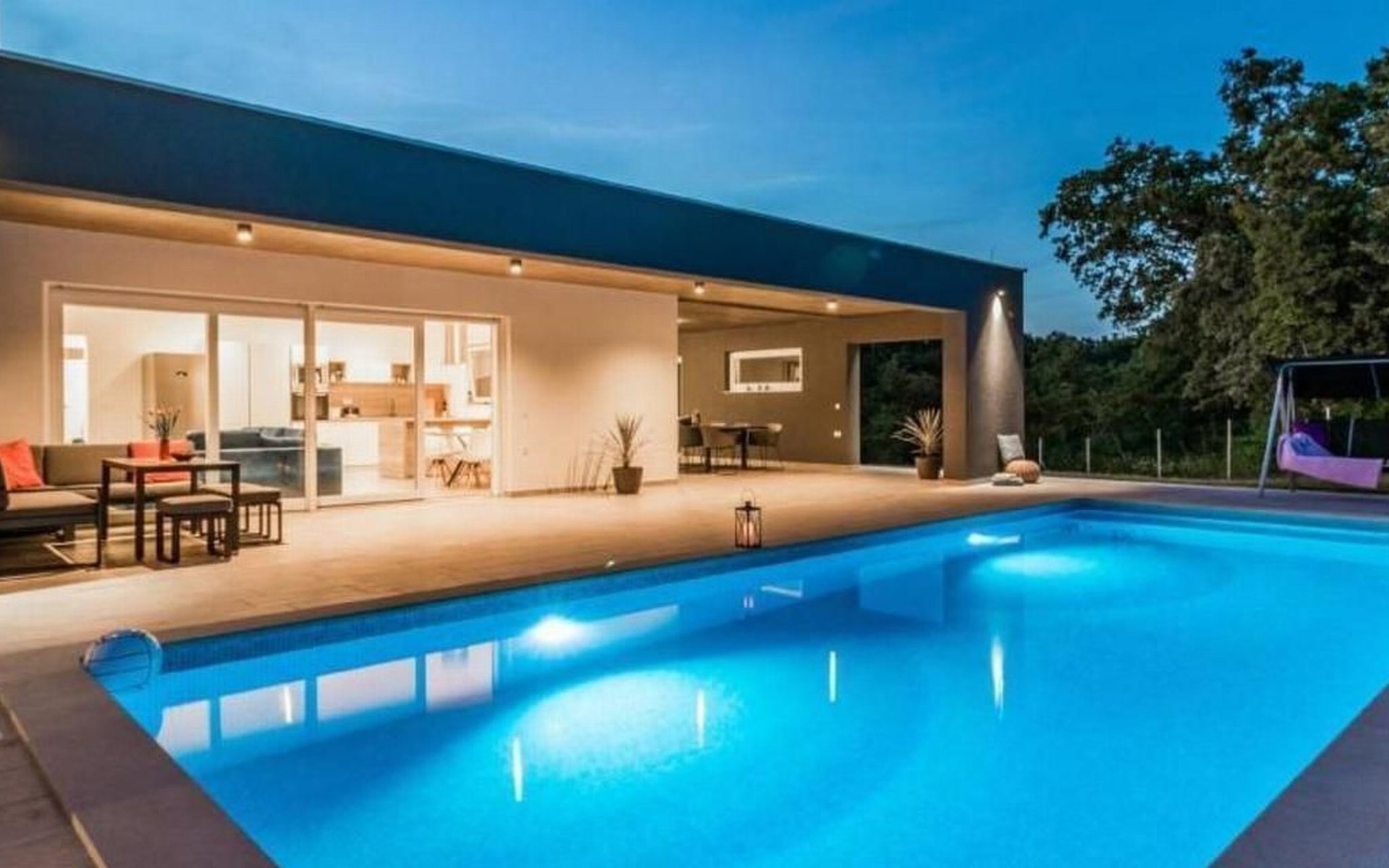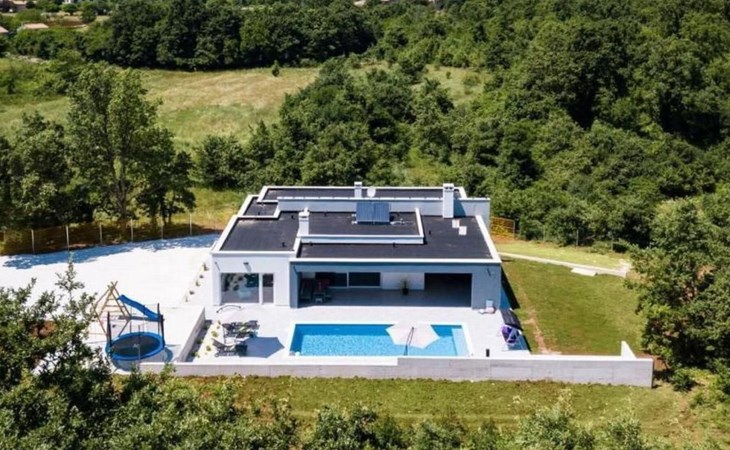 Vila SANIVARO ist ein luxuriöses und modernes Haus, das im Jahr 2019 gebaut und mit Liebe, Begeisterung und Sorgfalt für die Details eingerichtet wurde, was den Gästen ein Gefühl von Zuhause vermittelt. Die Lage dieser luxuriösen Villa ist am Ende des Dorfes, in einem ruhigen und unberührten Teil der Natur, am Anfang des schönen Eichenwaldes, umgeben von wilden Blumen, die Villa garantiert eine unwiederholbare Erfahrung von Ruhe und Privatsphäre, weit weg vom hektischen Alltag. Der natürliche Duft des Waldes und der Wiesen ist etwas, das in dieser unwiederholbaren Schönheit unvergesslich ist. Der spektakuläre nächtliche Blick auf den Sternenhimmel, weit weg vom Alltagslärm und der Lichtverschmutzung, ist eine weitere "kleine" Sache, die die romantischen Momente Ihres Aufenthalts bereichert. Das Innere der Villa bietet ein luxuriöses und geräumiges Wohnzimmer mit einer modernen, großen Küche und einem Essbereich, in den das Tageslicht durch die große Balkontür fällt. Vom Wohnbereich aus hat man einen Blick auf den Pool und die Sonnenterrasse, so dass die Eltern ihre Kinder beobachten können, während sie sich im Pool vergnügen. Die Villa verfügt über 4 komfortable und voll klimatisierte Zimmer, die sich auf der gleichen Ebene wie der andere Teil des Hauses befinden. Die Zimmer sind mit Doppelbetten ausgestattet, und bei Bedarf kann das Bett in zwei Zimmer aufgeteilt werden. Auf Anfrage gibt es auch ein Kinderbett. Wi-Fi ist im ganzen Haus verfügbar. Der gesamte Wohnbereich befindet sich auf einer Ebene und ist behindertengerecht gestaltet.