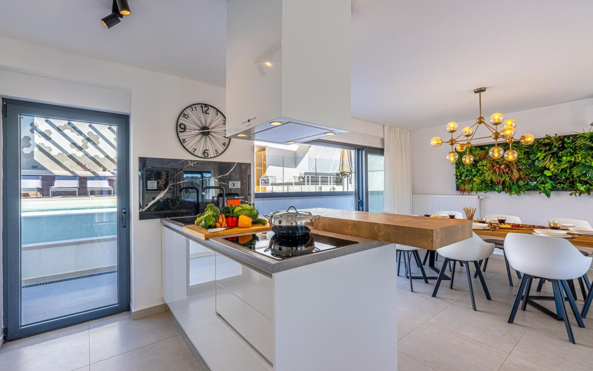 Erleben Sie das perfekte Esserlebnis unter freiem Himmel mit unserem Grill und Esstisch neben dem Pool.