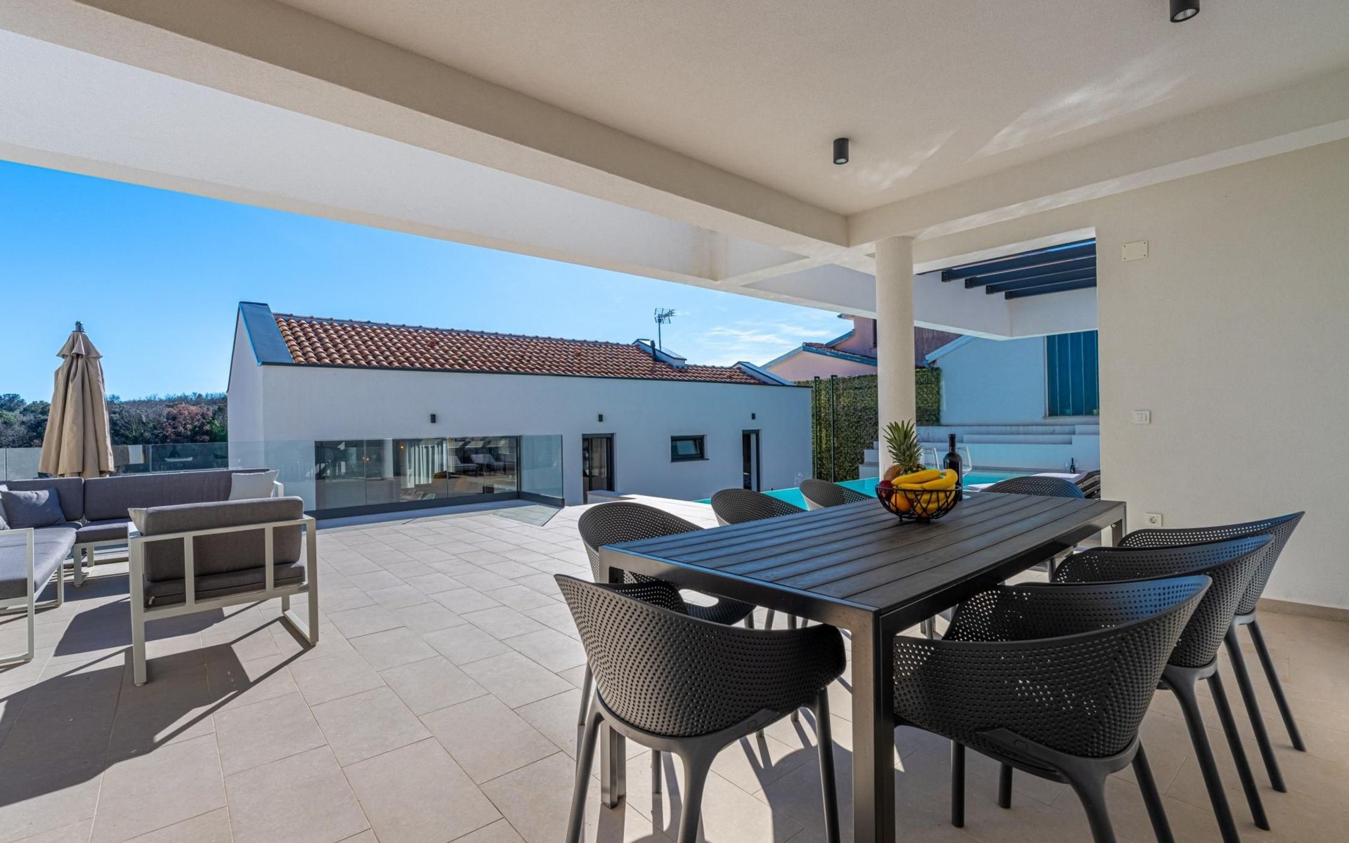Die Villa verfügt über einen komplett eingezäunten Hof, der den Gästen während ihres Urlaubs Privatsphäre bietet.