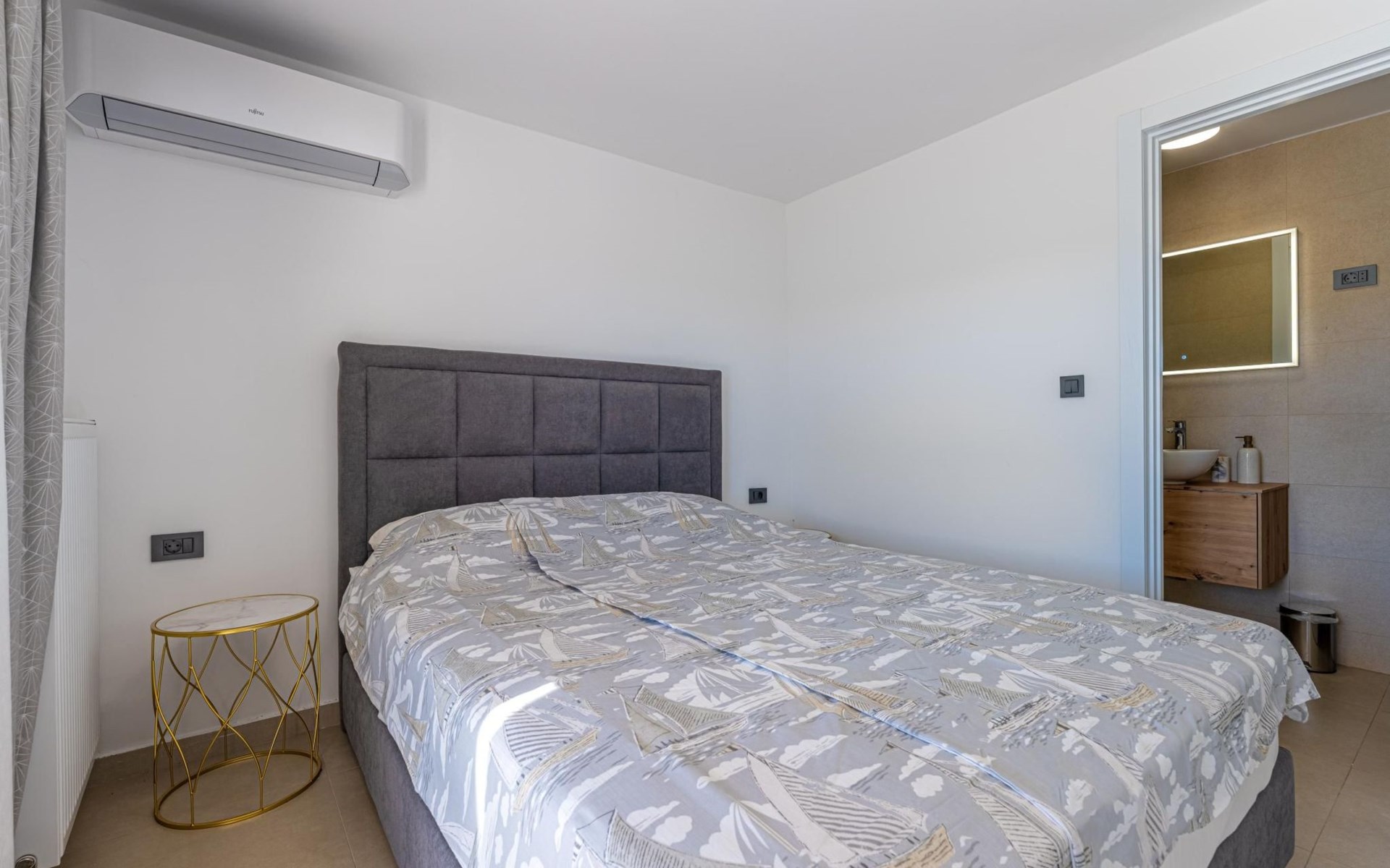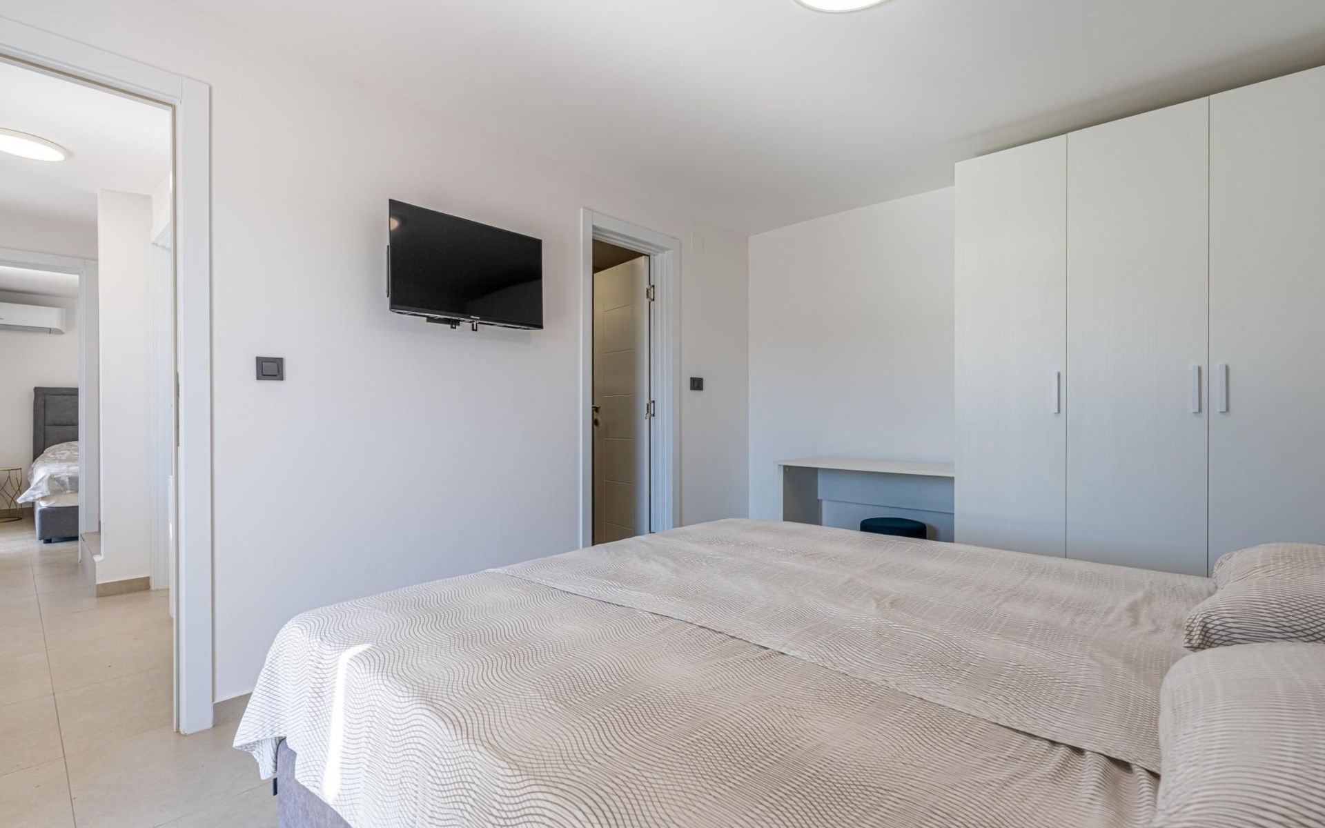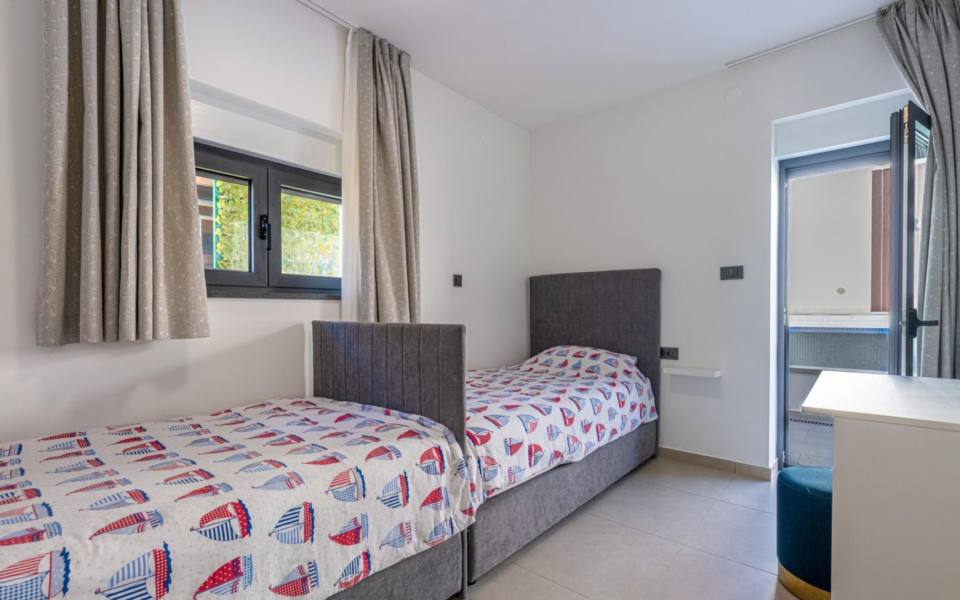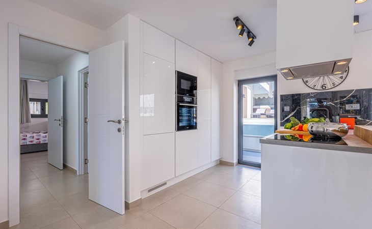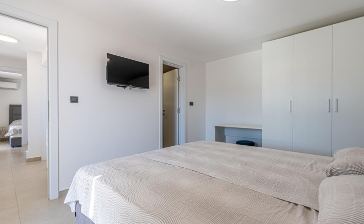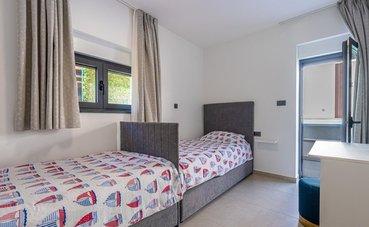 Das Innere der Villa verfügt über 2 Schlafzimmer mit Doppelbetten und eigenen Badezimmern im Erdgeschoss.