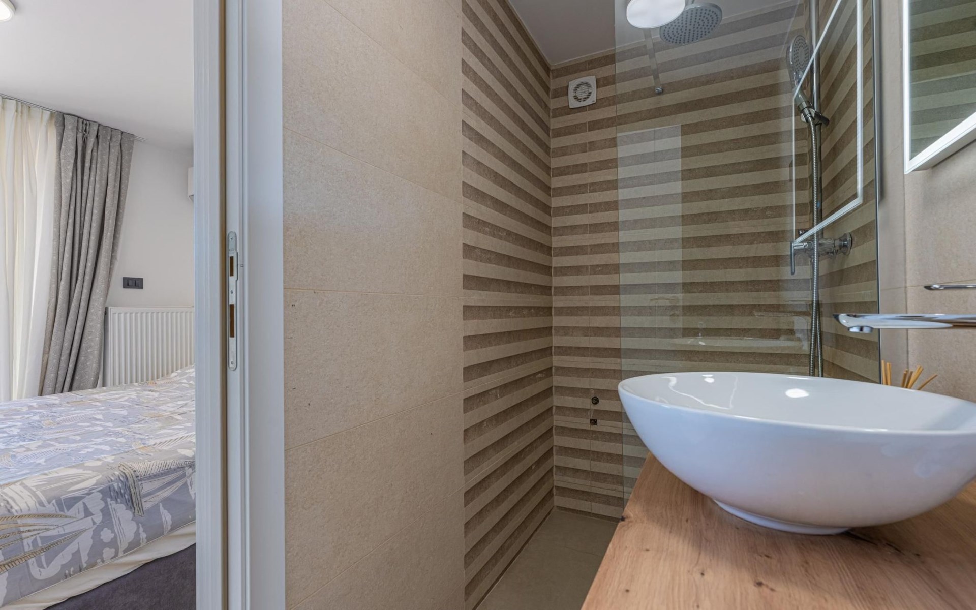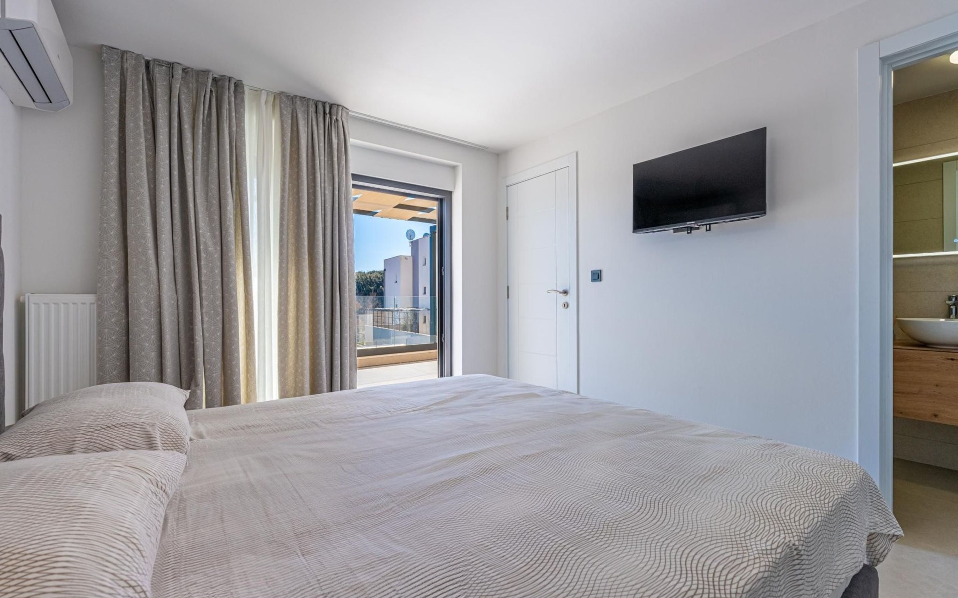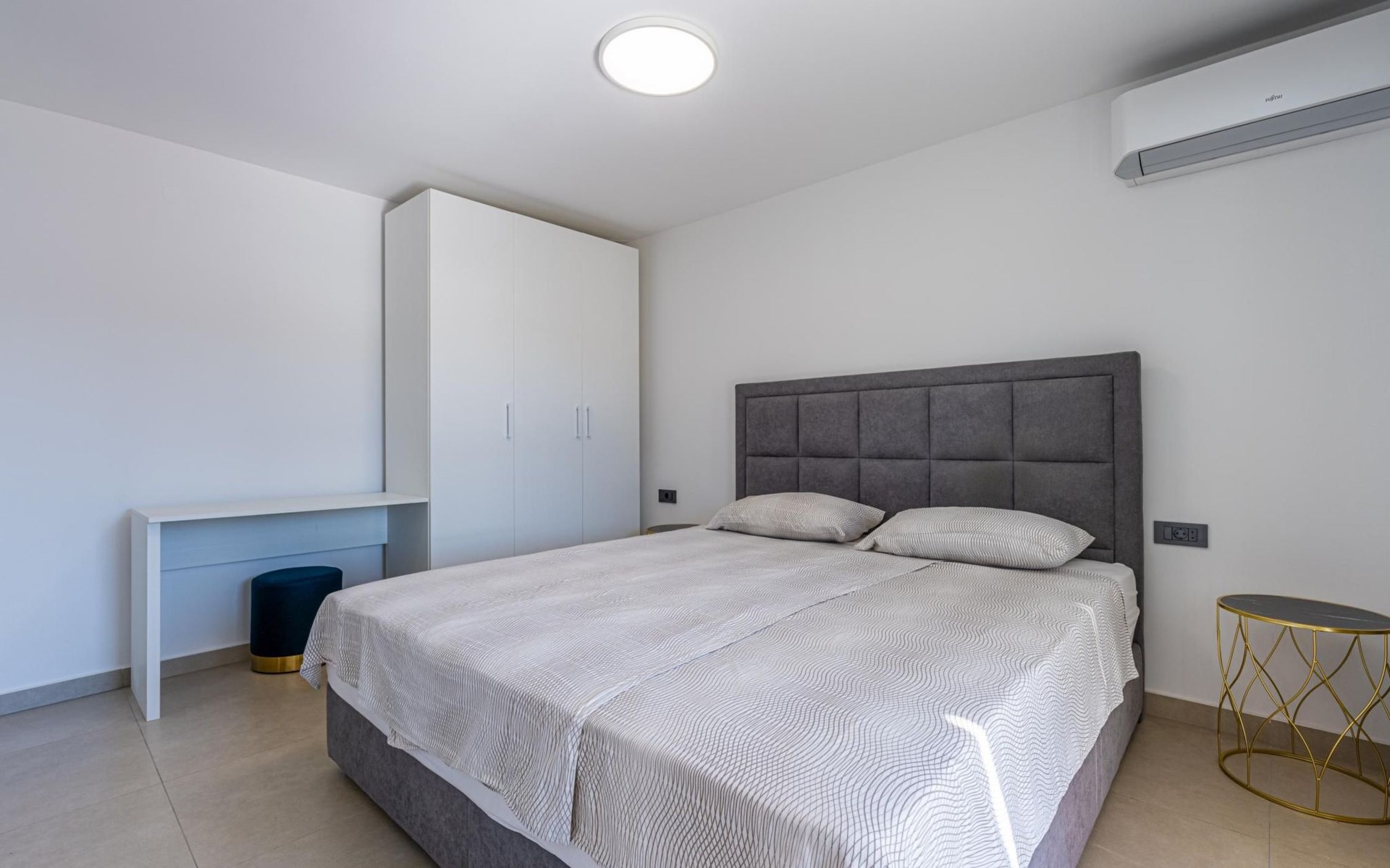 Das Innere der Villa verfügt über 2 Schlafzimmer mit Doppelbetten und eigenen Badezimmern im Erdgeschoss.