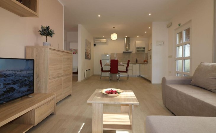 Die Lage in 2,5 km Entfernung zum Zentrum von Porec bietet den idealen Ausgleich zwischen Ruhe und Nähe zu städtischen Annehmlichkeiten. Einkaufsmöglichkeiten sind nur 150 m entfernt, während Restaurants sich in einer Entfernung von 250 m befinden. Für Badeausflüge erreichen Sie ein Strandbad nach 2,5 km. Die Umgebung lädt ein, die kulturellen und landschaftlichen Schönheiten Istriens zu entdecken.