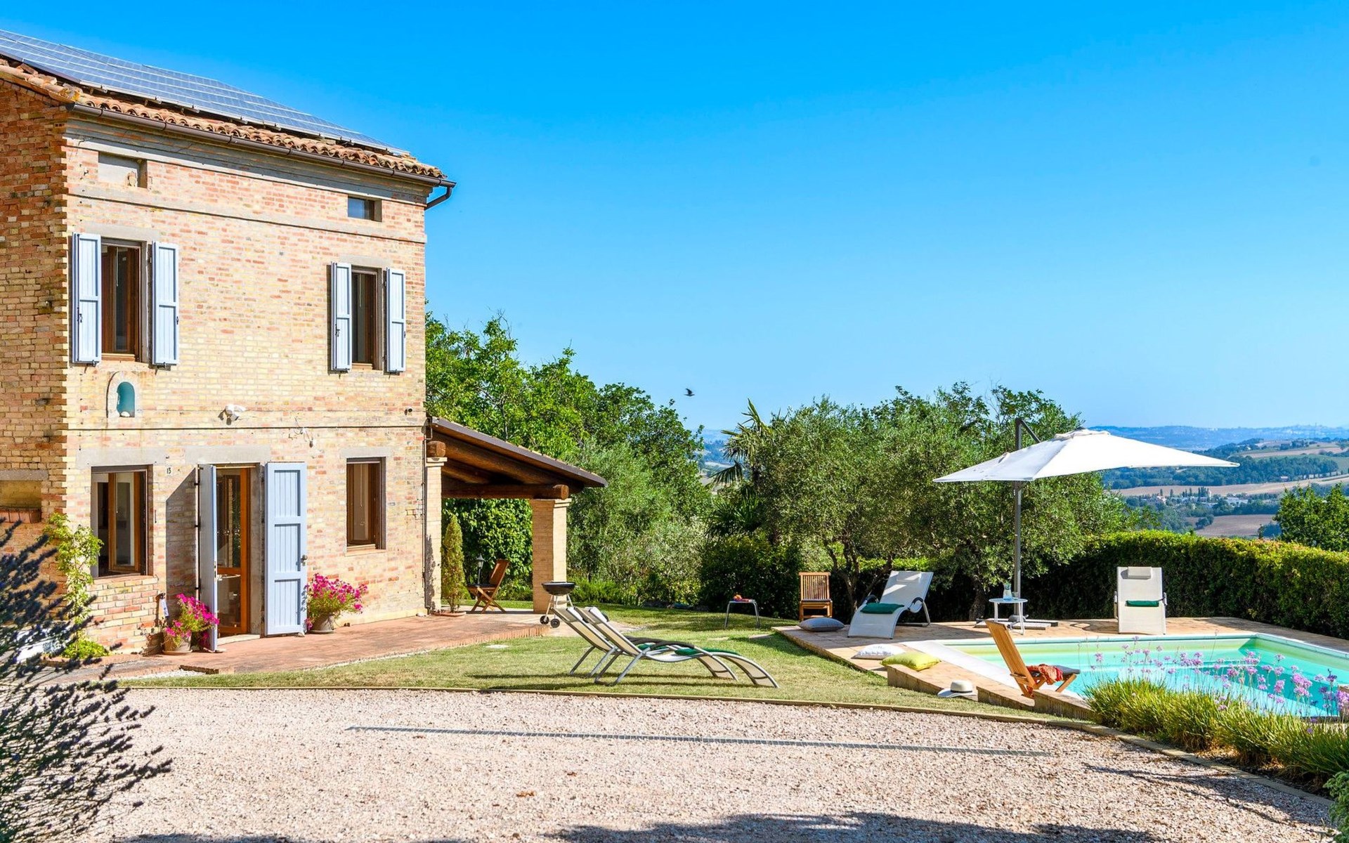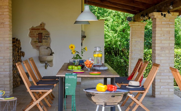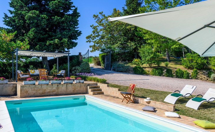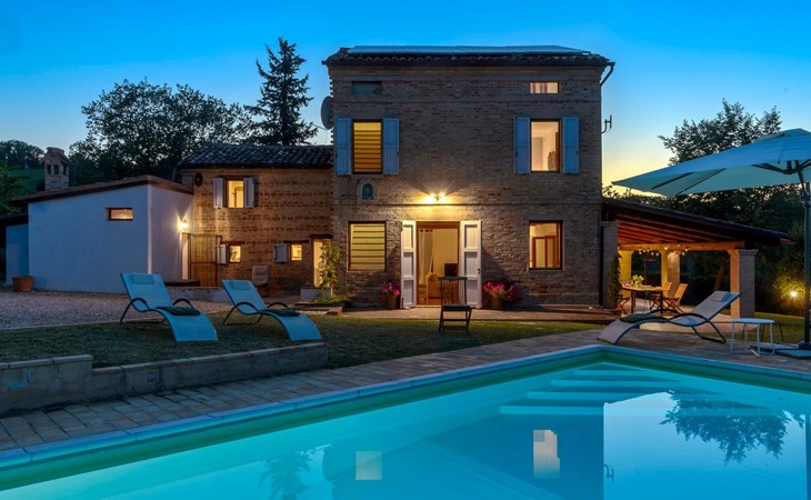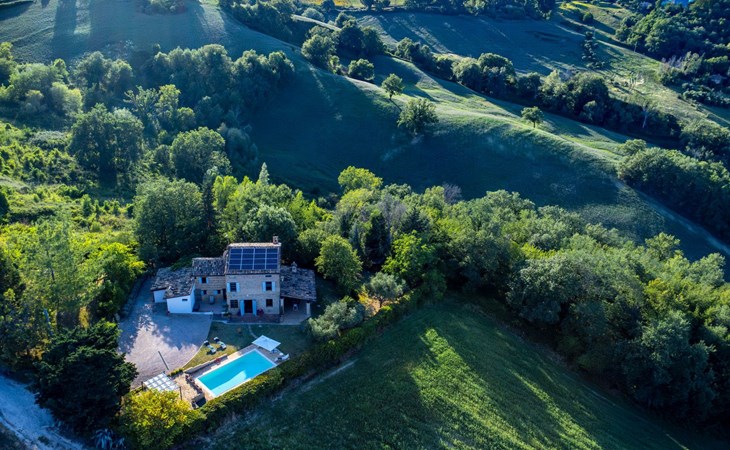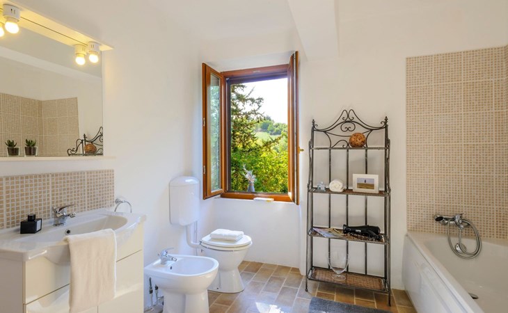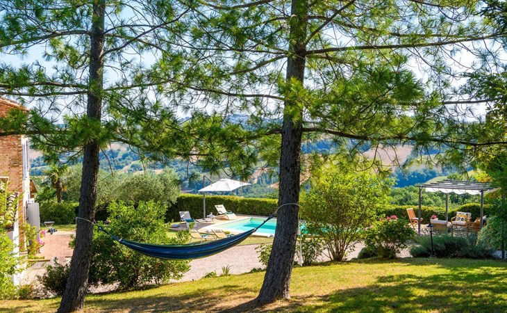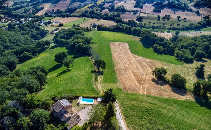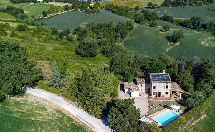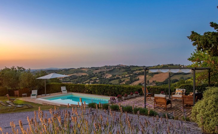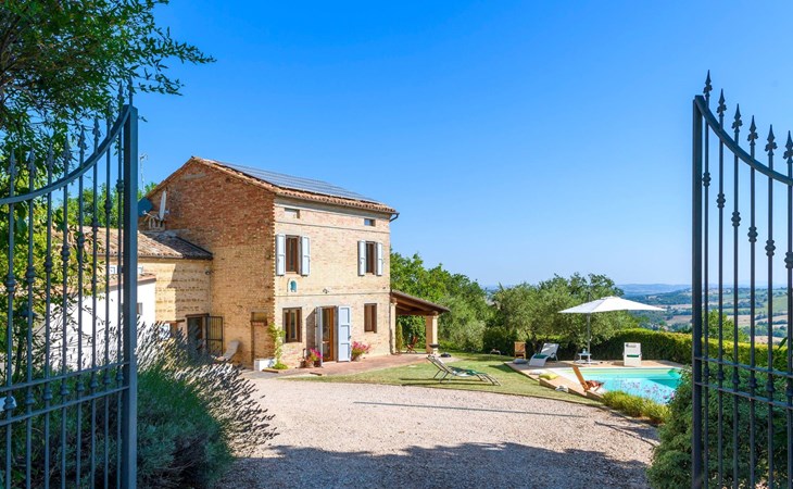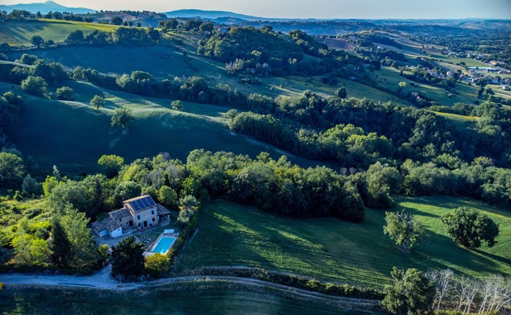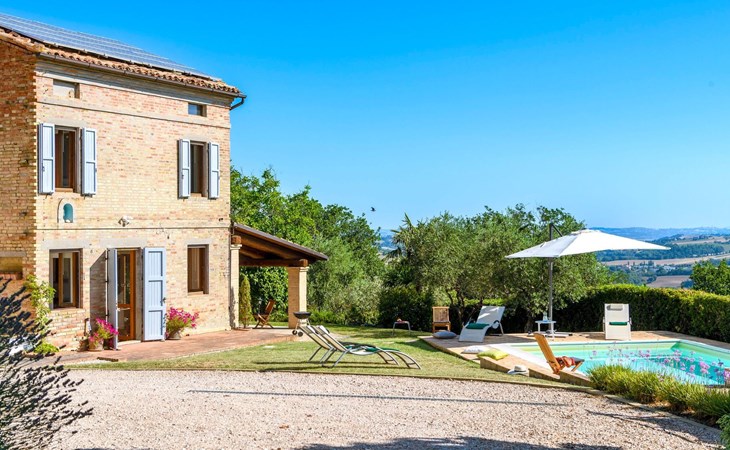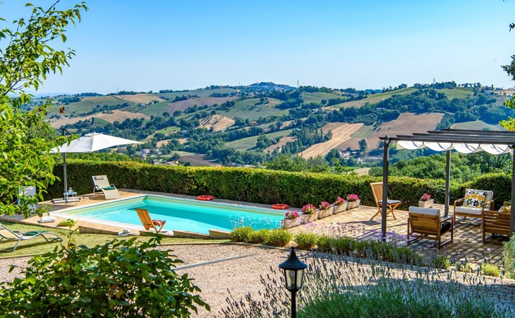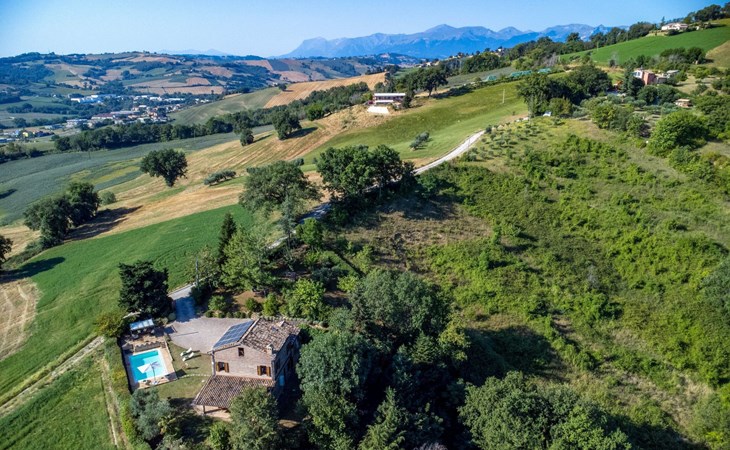 Von der Veranda und dem Schwimmbad von Casa Felicità können Sie die schöne Aussicht auf die für die Marken typischen Hügel genießen. Das kürzlich renovierte Haus liegt nur wenige Minuten von dem kleinen mittelalterlichen Zentrum von Ripe di San Ginesio entfernt, das auf einem Hügel thront. Alle Zimmer sind klimatisiert.