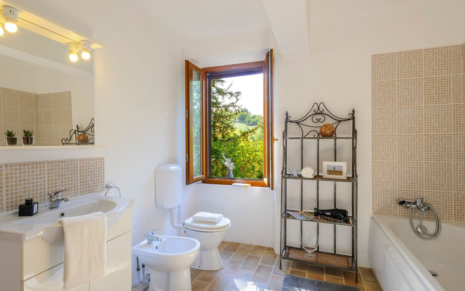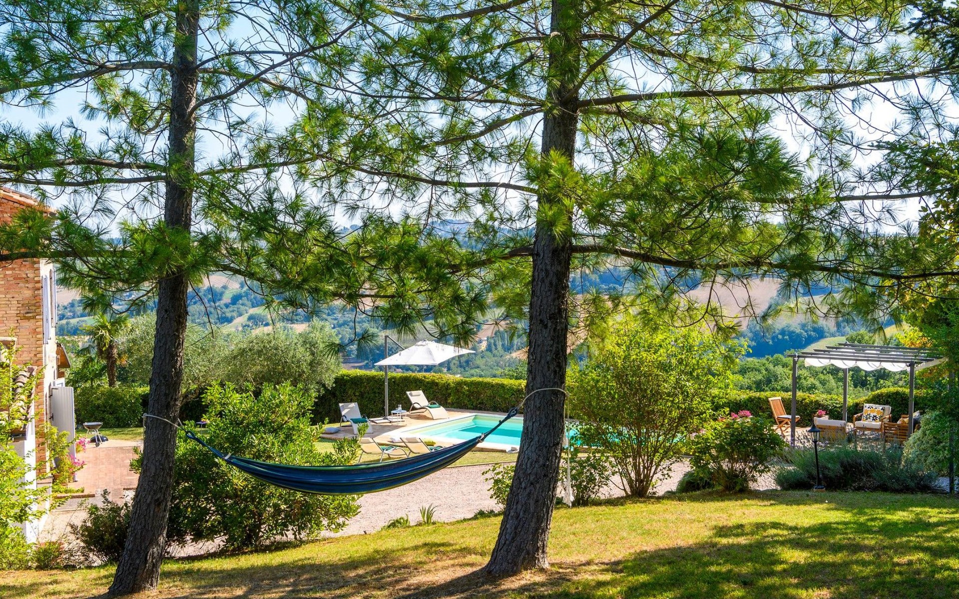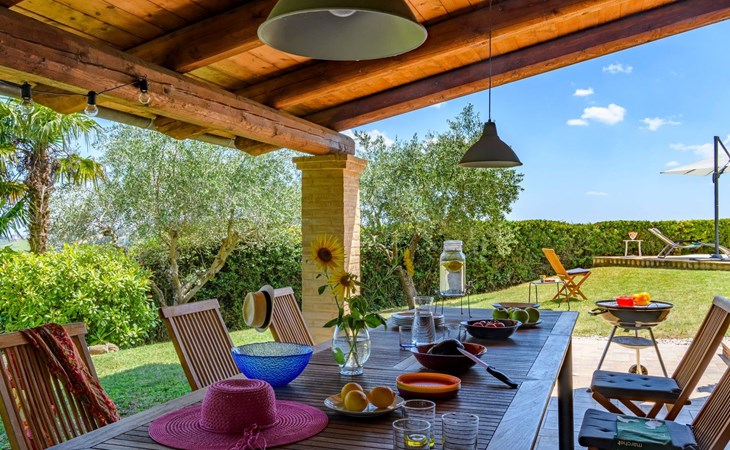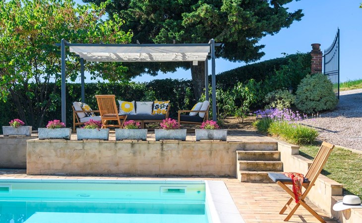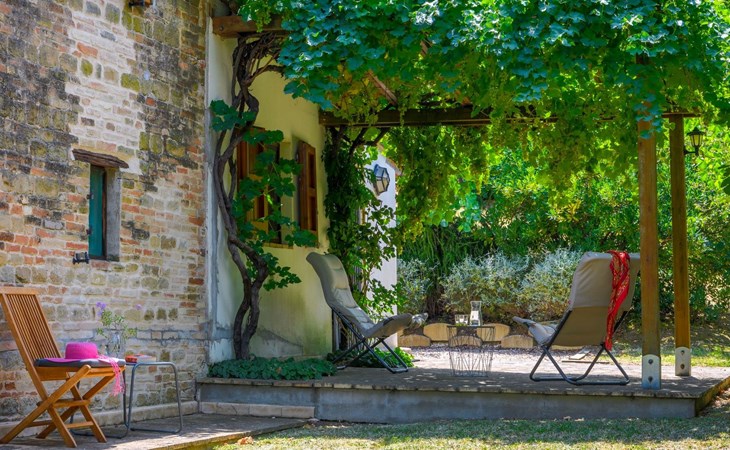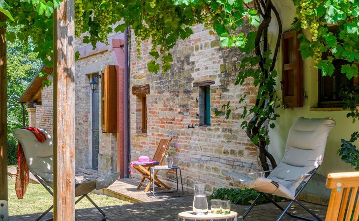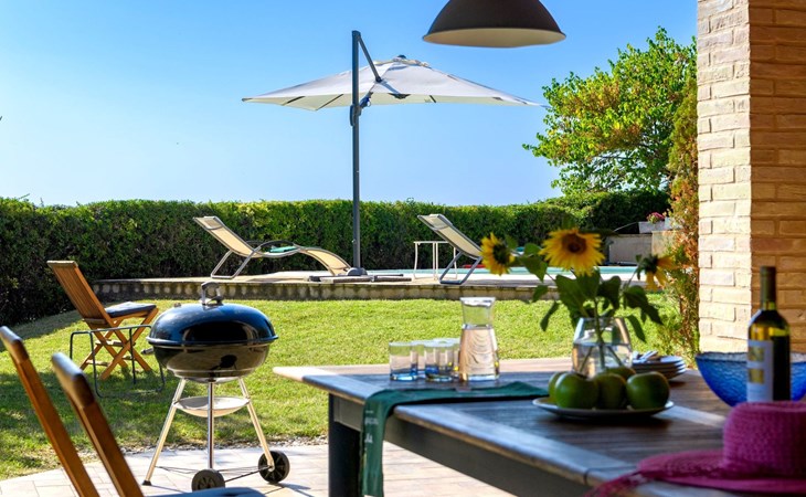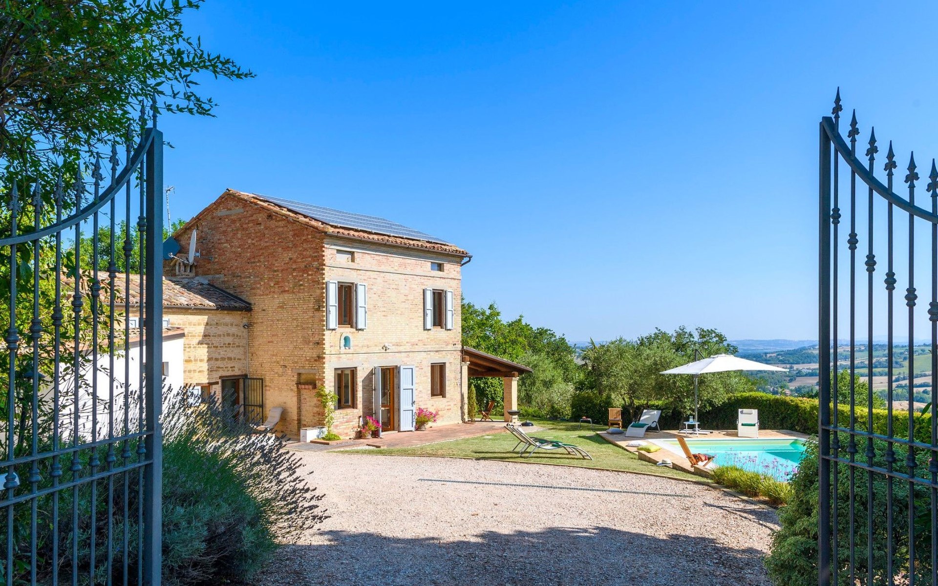 Von der Veranda und dem Schwimmbad von Casa Felicità können Sie die schöne Aussicht auf die für die Marken typischen Hügel genießen. Das kürzlich renovierte Haus liegt nur wenige Minuten von dem kleinen mittelalterlichen Zentrum von Ripe di San Ginesio entfernt, das auf einem Hügel thront. Alle Zimmer sind klimatisiert.