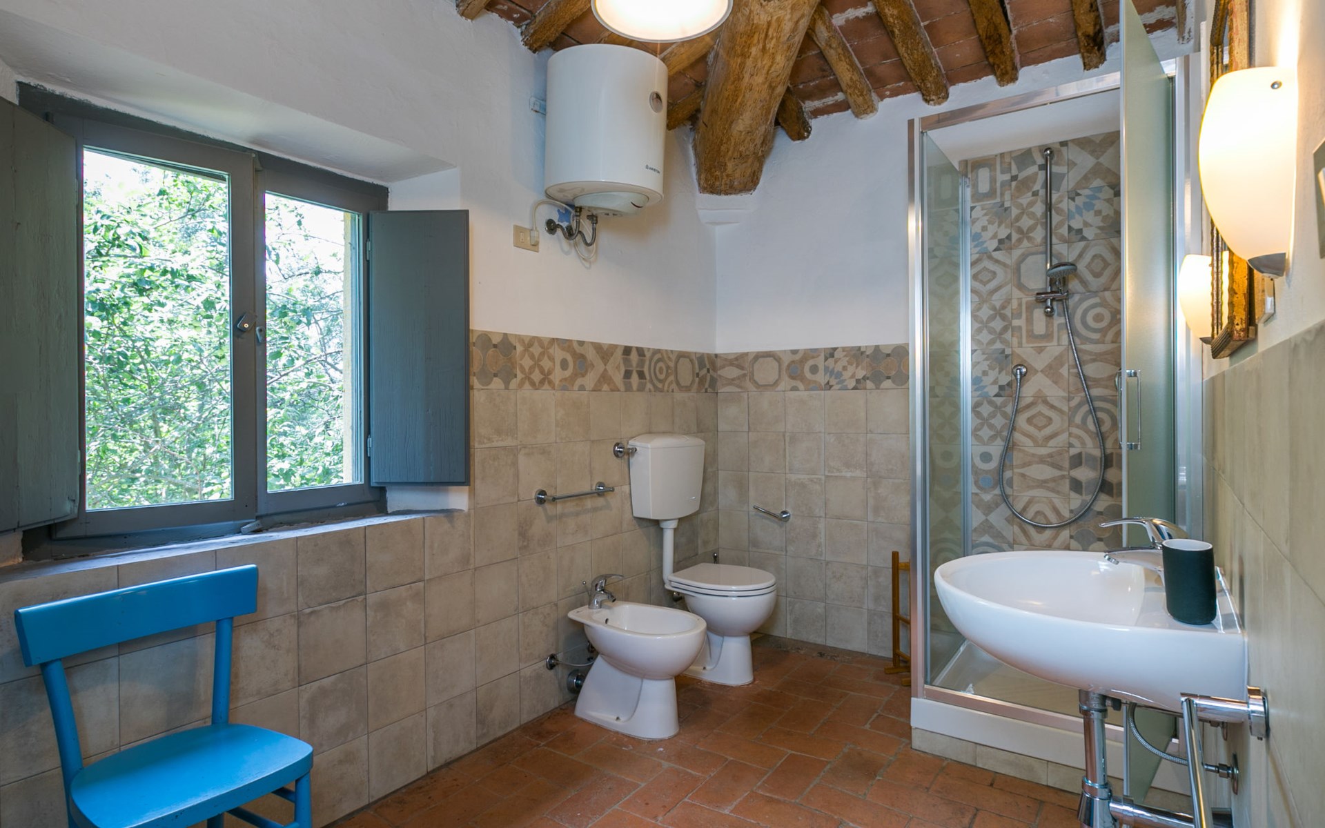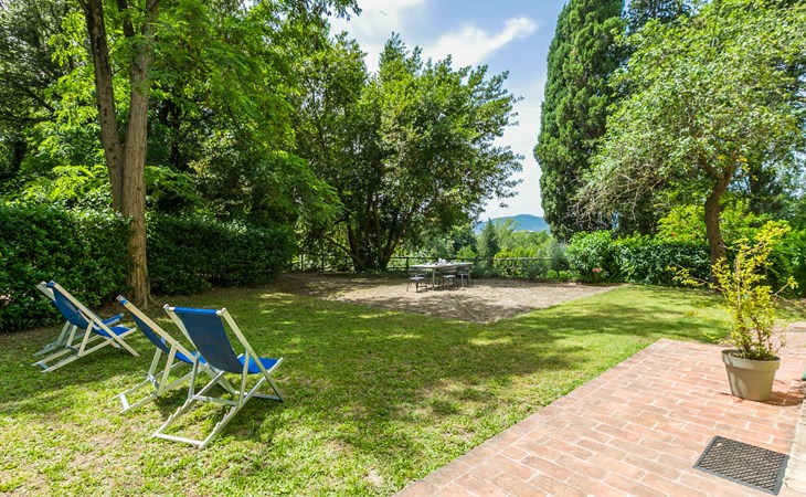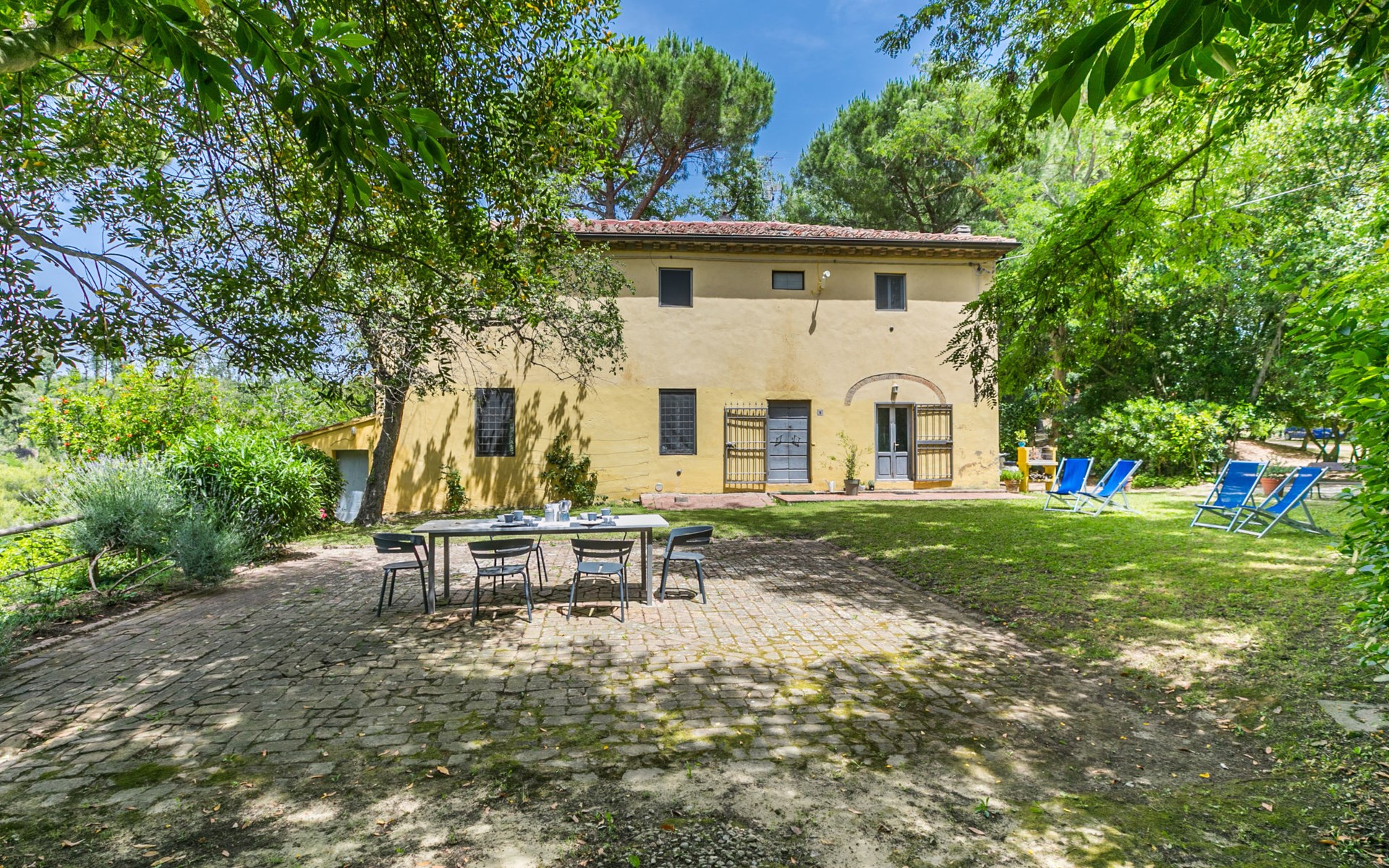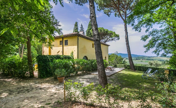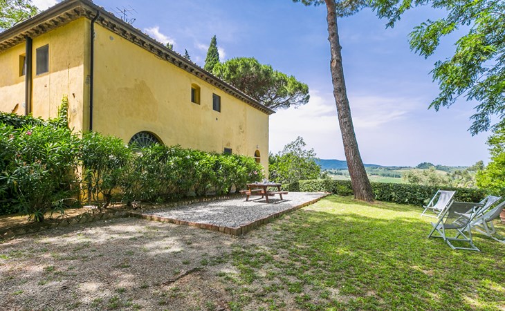 Lorenzana 12 km von Casciana Terme: Landsitz "Saletto", umgeben von Bäumen und Weinbergen. 2 Wohnungen im Ferienhaus. 2 km vom Zentrum von Lorenzana, 30 km vom Zentrum von Pisa, 80 km vom Zentrum von Firenze, ruhige, sonnige, erhöhte Lage auf einem Hügel, 20 km vom Meer, im Grünen. Zur Mitbenutzung: Grundstück 200 ha, Schwimmbad (14 x 7 m, 100 - 230 cm tief, saisonale Verfügbarkeit: 13.Mai. - 30.Sep.). Aussendusche, Tennis (1 x Hartbelag), Tischtennis, Gartenmöbel, Grill. Im Hause: Zentralheizung, Waschmaschine, Heizung vor Ort zu zahlen, Heizung nur verfügbar von 01.Nov. - 07.Apr.. Zufahrt bis zum Haus (500 m Naturweg). Parkplatz beim Haus. Lebensmittelgeschäft 2 km, Restaurant 2 km, Bushaltestelle 2.5 km, Sandstrand 22 km, Felsstrand 22 km, Thermalbad 12 km. Golfplatz (18 Loch) 26 km, Tennis 1 km. Nahe gelegene Sehenswürdigkeiten: Livorno 28 km, Castellina Marittima 23 km, San Miniato 40 km, Volterra 45 km, Lucca 65 km, Viareggio 68 km. Bitte beachten: Der Besitzer wohnt auf dem gleichen Grundstück.